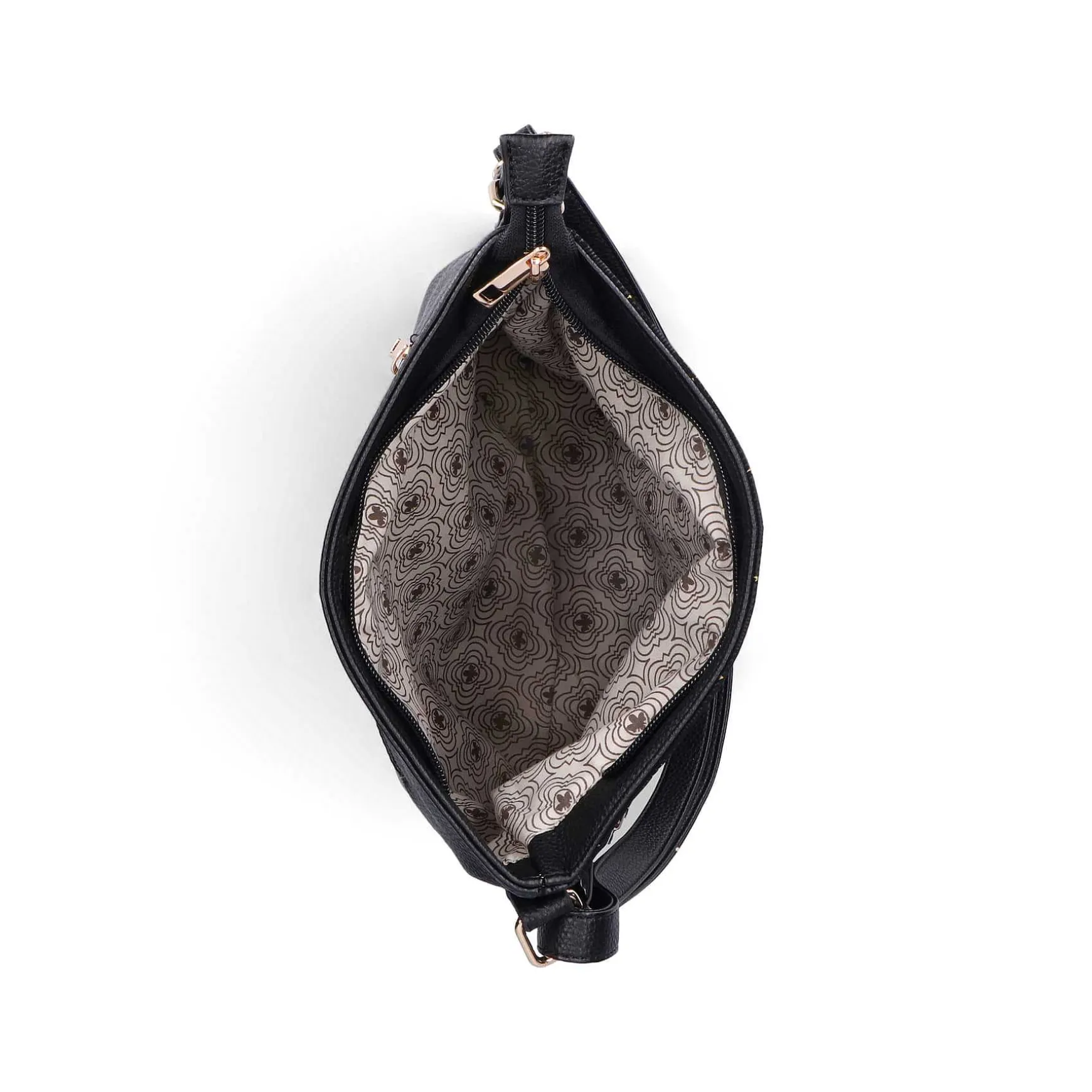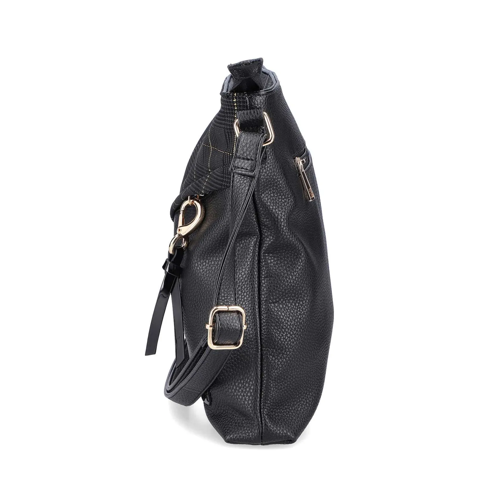 This Black Handbag From Rieker Impresses With Its Modern Elegance. The Dark Finish Is Complemented By Shiny Charms And The Slanted Zipper Adds A Complementary Style Factor. There Is Plenty Of Space In It To Store Necessary Little Things That You Want To Have At Hand At All Times.