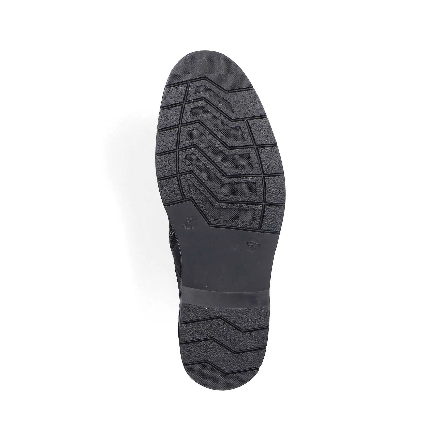 All In One Shoe! These Deep Black Chelsea Boots From Rieker Have Been Elaborately Crafted. The Zipper Together With The Elastic Insert Typical Of Chelsea Boots Makes It Easy To Put On And Take Off. With The Robust Profile Sole, Sure-Footed Walking Is A Given. The Comfort Width G 1/2 Offers Enough Space So That The Feet Feel Comfortable Even When Worn For Longer Periods. Waiting For What?