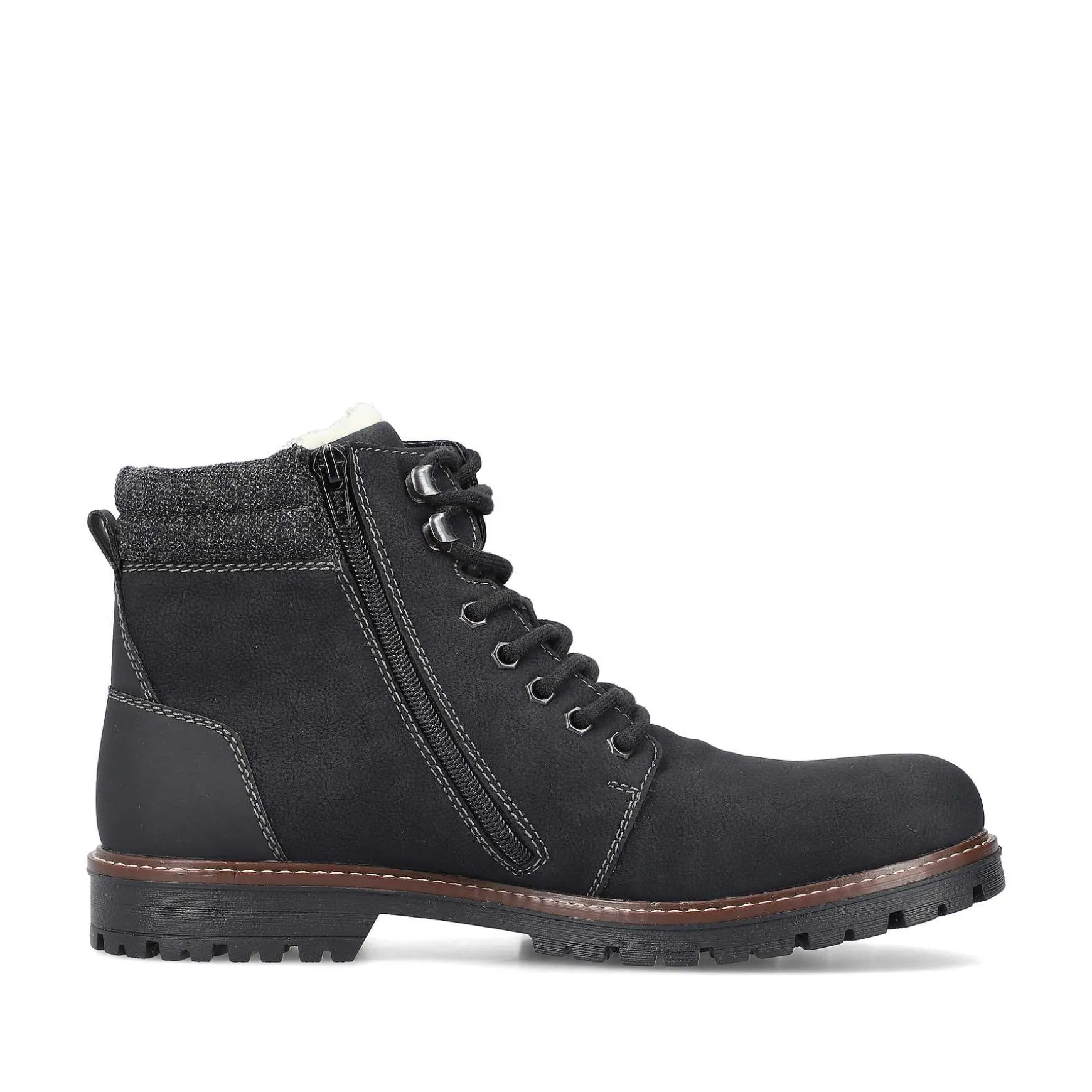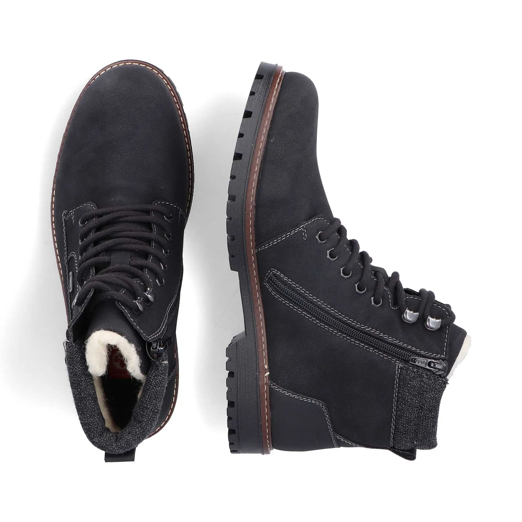 Adventure Guys Attention! With These Cool Asphalt Black Rieker Lace-Up Boots Your Feet Will Be Warm And Soft. The Clever Combination Of Lacing And Zipper Guarantees A Perfect Fit And Ideal Support. The Profile Sole Is Robust And Ensures Good Grip At All Times. On Top Of That, The Extra Soft Insole Ensures An Extra Dose Of Comfort. The Comfort Width G 1/2 Offers The Toes Enough Freedom Of Movement. When It Comes To Comfort, You’Re Also One Step Ahead With The Water-Repellent Riekertex Membrane And The Cozy And Very Warm Virgin Wool Lining. Attention, Favorite Shoe Potential!