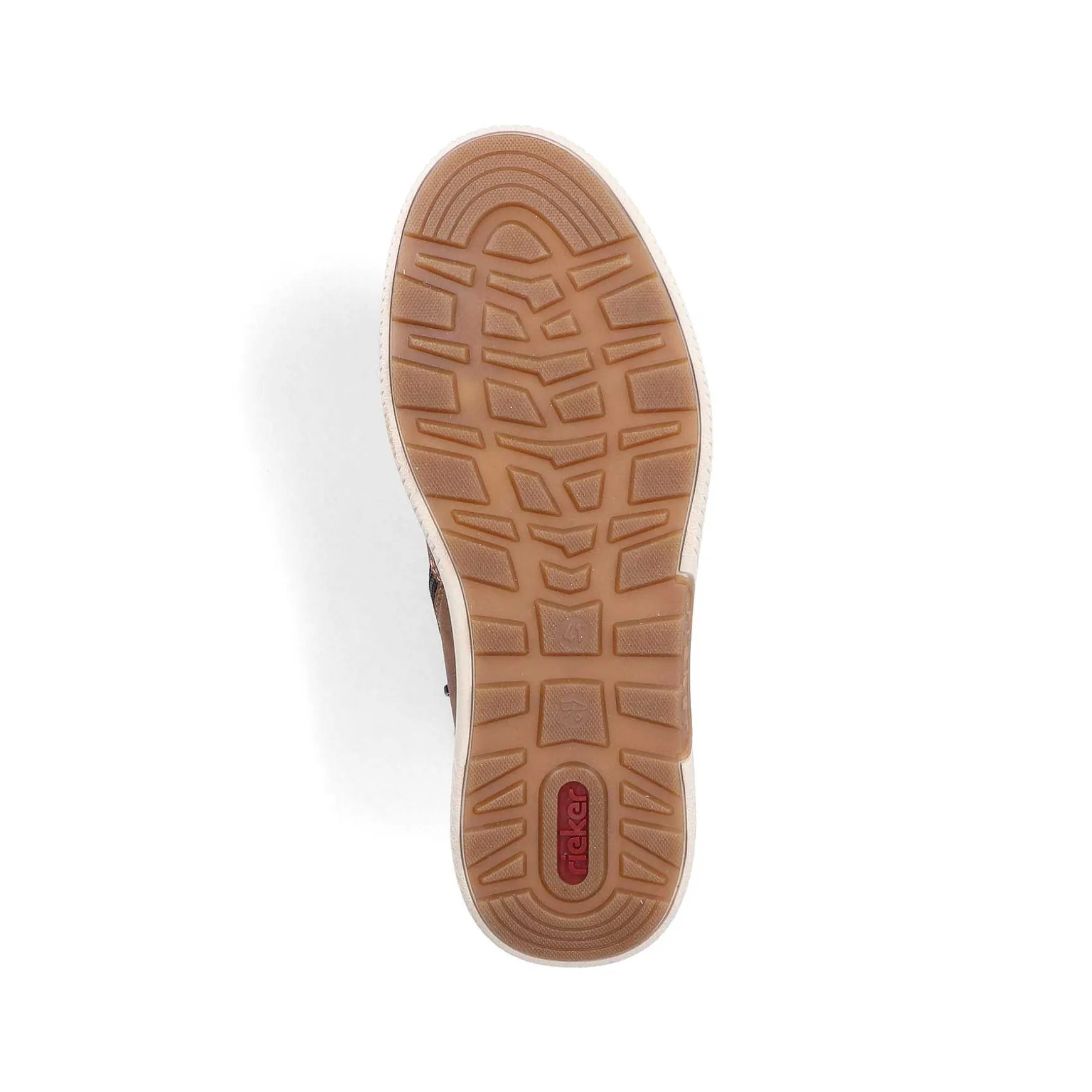 Brown Is The New Black! Rieker Proves Once Again That You Can Combine Comfort With A Fashionable Look With These Coffee Brown Lace-Up Boots. A Lacing Complements The Zipper And Ensures Functionality And Comfort. The Bronze-Colored Decorative Rivets Provide That Certain Something. The Light Profile Sole Impresses Across The Board. The Shoe Has An Extra Soft And Removable Insole, Which Is An Impressive Comfort Feature. The Model Is Cut In An Extra Wide H. The Cozy Lining And Riekertex Technology Keep Your Feet Warm And Dry. The Sub-Zero Temperatures Have A Bad Chance!