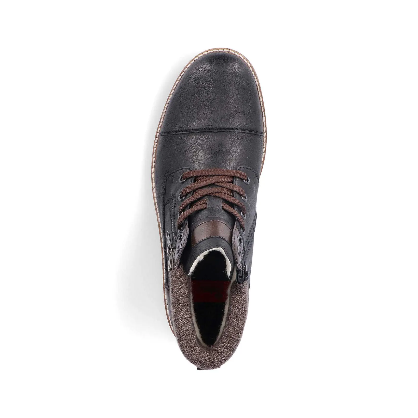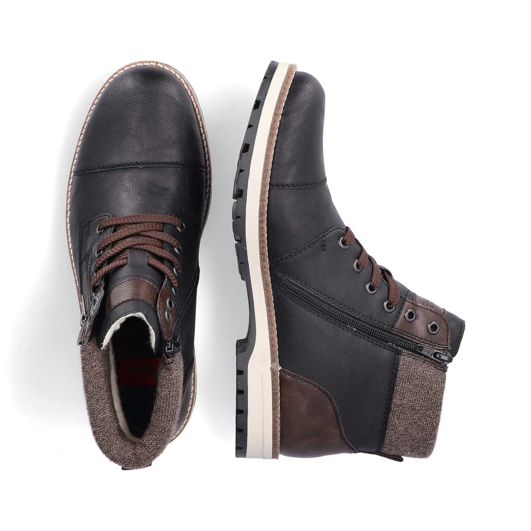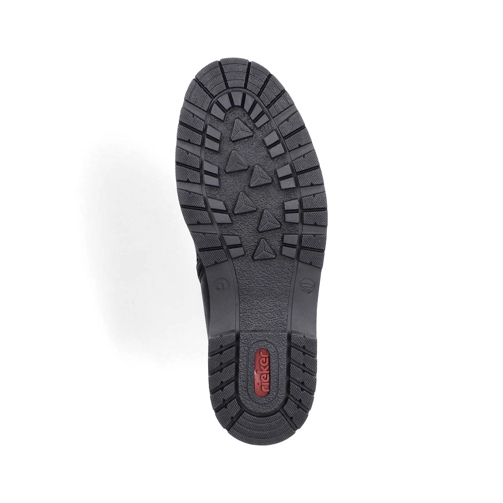 Fashionable, Masculine, Rieker Boots! These Midnight Black Lace-Up Boots From Rieker Impress With Functional Materials That Take The Wind Out Of Their Sails When It Gets Wet. In Addition To The Lacing, The Model Also Has A Zipper, Ensuring Optimal Support. With The Robust Profile Sole, Sure-Footed Walking Is A Given. Thanks To The Comfort Width G 1/2, There Is Enough Space In The Forefoot Area. The Combination Of Water-Repellent Riekertex Technology And Cozy And Very Warm Virgin Wool Lining Ensures Warm And Dry Feet – Perfect For Wet And Cold Days. These Shoes Are The Perfect Symbiosis Of Style And Comfort!