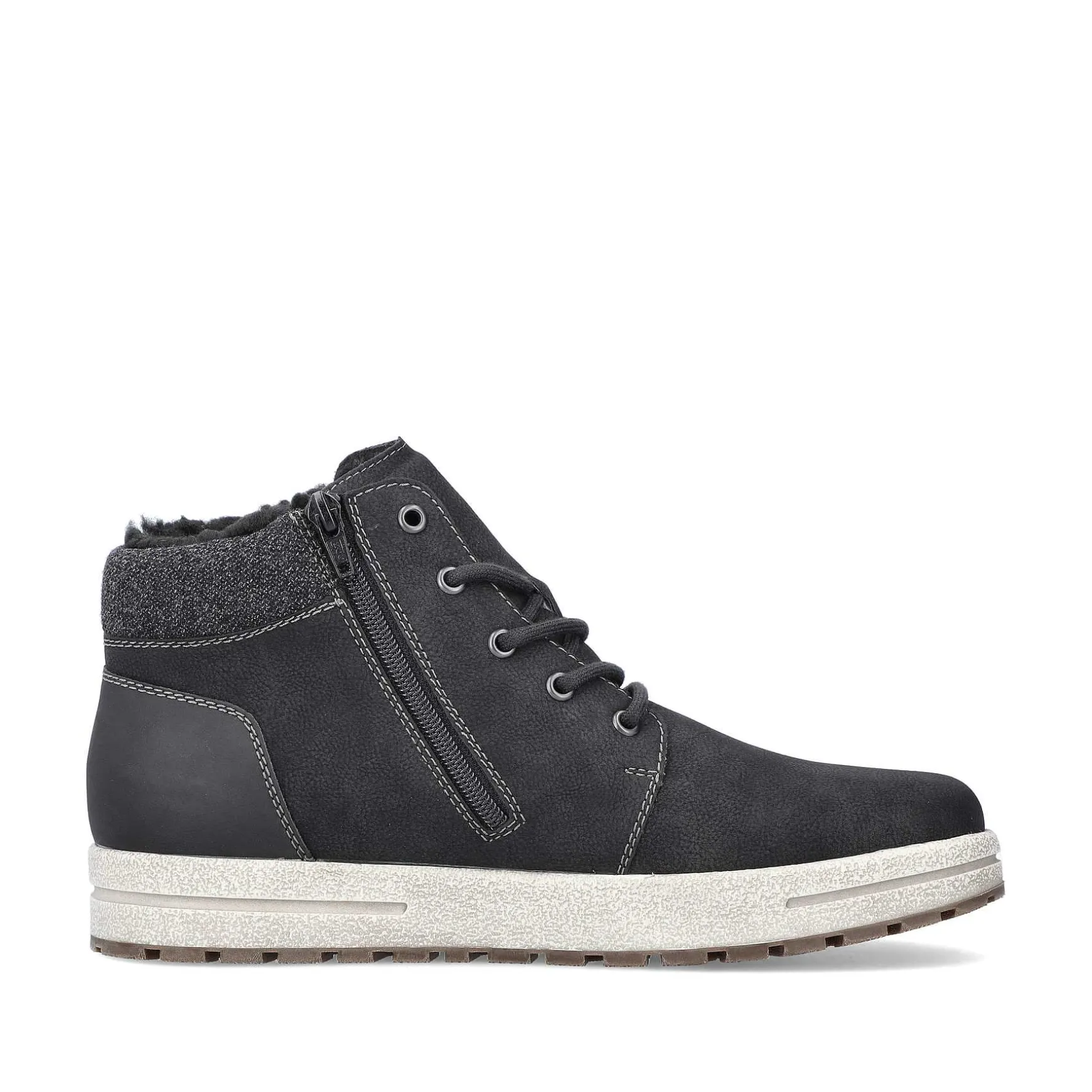 Black Beauty! Rieker Proves Once Again That You Can Combine Comfort With A Fashionable Look With These Asphalt Black Rieker Lace-Up Shoes For Men. The Lacing Is Complemented By A Zipper, Guaranteeing Optimal Hold And A Perfect Fit. The Contrasting White Seams Give The Shoe That Certain Something. The Robust Profile Sole Impresses Across The Board And The Extra Soft Insole Is Another Plus. Thanks To The Comfort Width G 1/2, There Is Enough Space In The Forefoot Area. In Cold, Wet Weather, Your Feet Stay Dry Thanks To The Water-Repellent Surface, While The Warm Lining Ensures The Best Protection From The Cold. Let’S Rock The Cold Days!