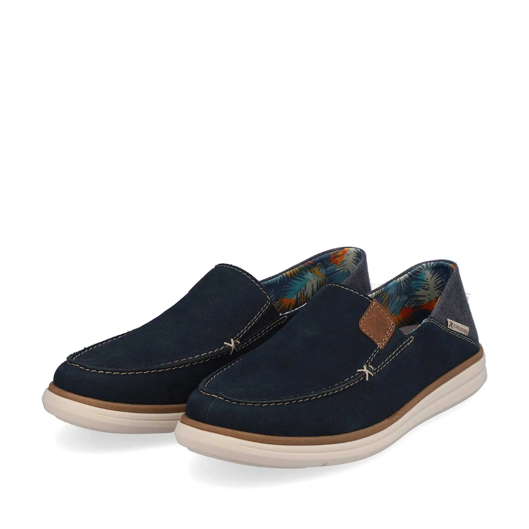 This Blue Sport & Style Rieker Slipper For Men Made Of High-Quality Suede Offers Easy Entry With The Elastic Band. The Tr Sole Is Also Durable And Offers Good Grip On All Surfaces. The Removable, Soft Insole Provides Cushioning. On Top: Comfort Width For A Perfect Fit.