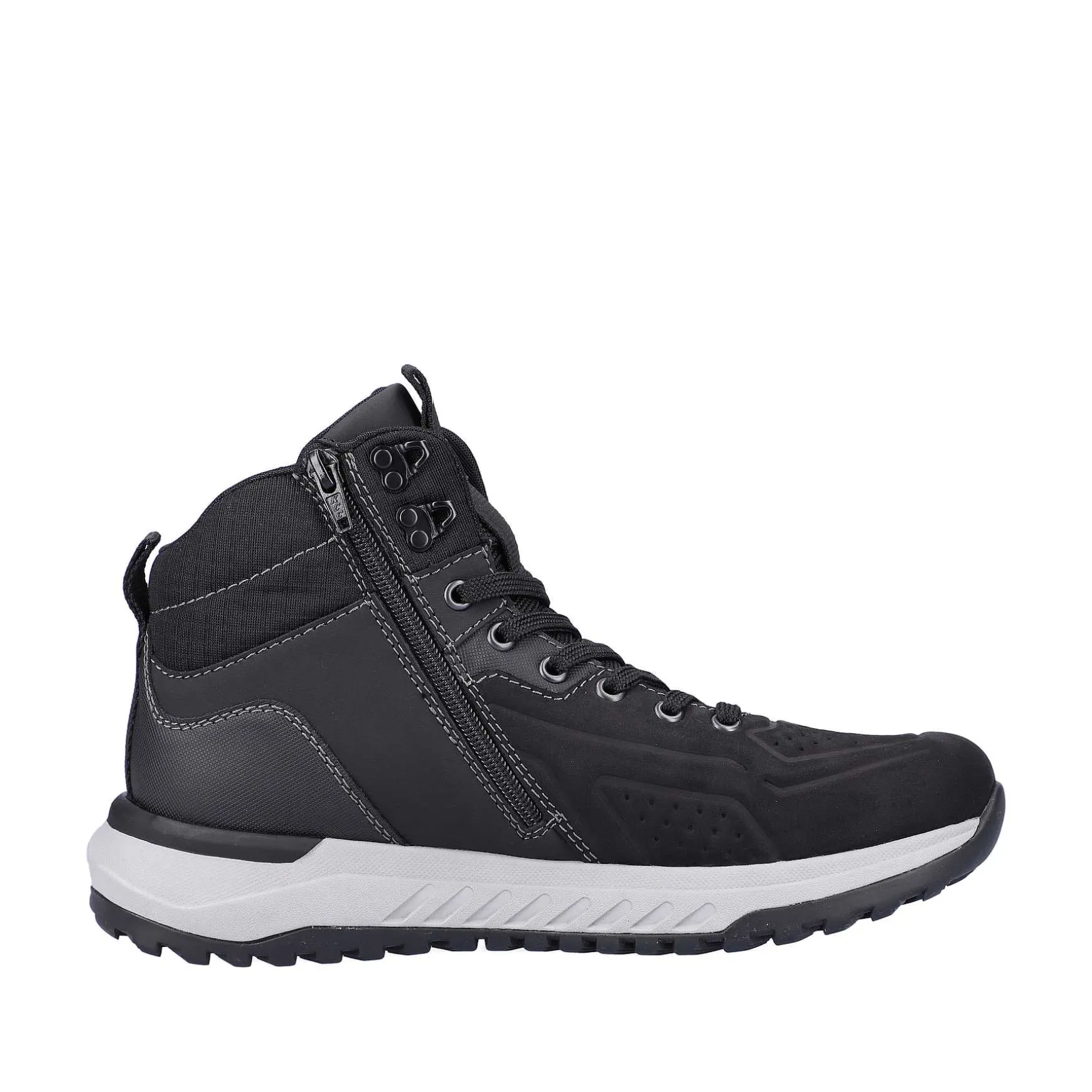 Walk Warm: These Black Sport & Style Rieker High Sneakers For Men Made Of High-Quality Artificial Leather Are Water And Dirt-Repellent As Well As Breathable Thanks To The Riekertex Membrane And The High-Tech Nano Coating. The Insole Consists Of A Cold-Blocking Three-Layer Construction For The Perfect Thermal Effect And The Super-Light Eva/Rubber Sole Cushions Every Step. The Top Combination Of Zipper And Lacing Makes Getting Started Quick And Easy.
