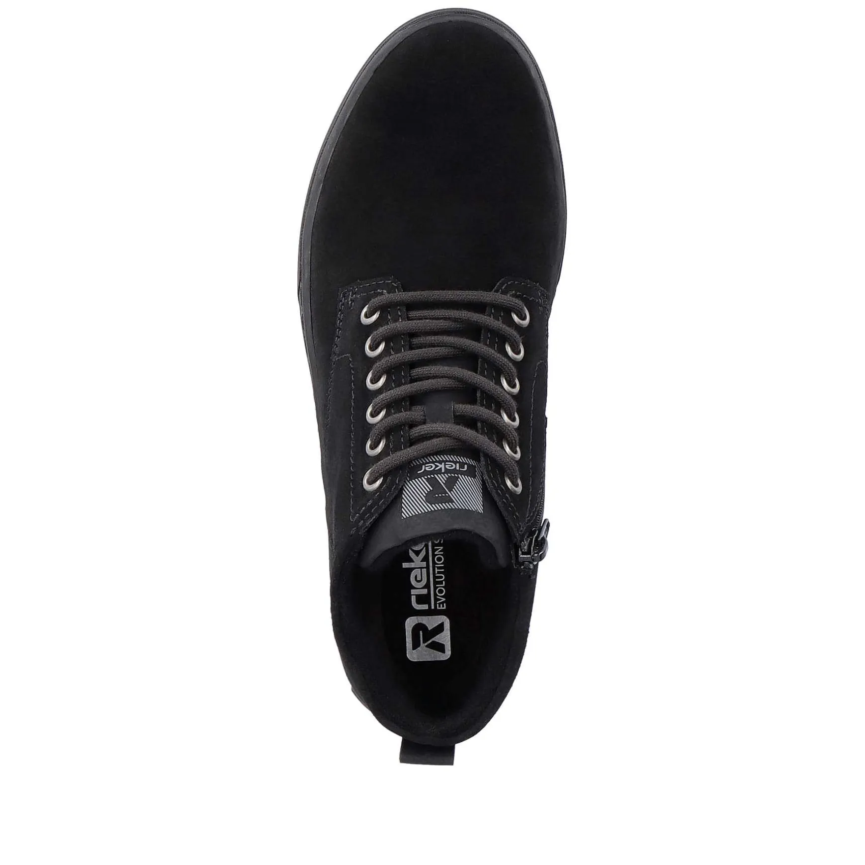 Easy And Fast: Sport & Style Rieker Sneaker High For Men Made Of High-Quality Suede In Black With Zipper. Tr Sole For A Secure Grip With Integrated Ultra-Light Eva Inlet For A Next-Level Walking Experience. The Soft Insole Provides Additional Cushioning And The Comfort Width Ensures A Perfect Fit.