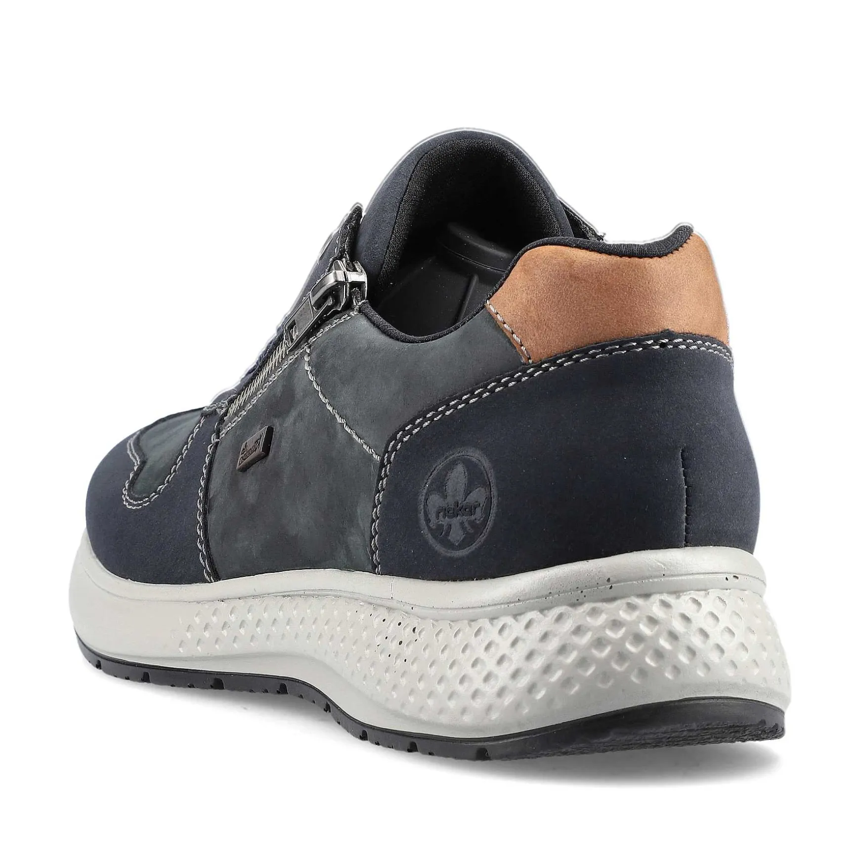 This Is The Pinnacle Of Comfort! These Casual Blue-Gray Rieker Low Sneakers For Men Made Of Suede Are Simple And Practical. The Lacing Is Complemented By A Zipper, Thus Guaranteeing A Good Hold And A Perfect Fit. The Embossed Logo On The Side Of The Heel Adds That Certain Something. The Sole Is Both Very Light And Shock-Absorbing, Offering A Double Feeling Of Comfort With Every Step. The Sneakers Also Score Points With A Soft And Particularly Breathable Leather Insole. The Model Ensures Additional Freedom Of Movement For The Foot Because It Is Cut In A Comfortable Width Of G 1/2. The Water-Repellent Riekertex Membrane Protects The Feet From Wet And Wind. Attention, Favorite Shoe Potential!