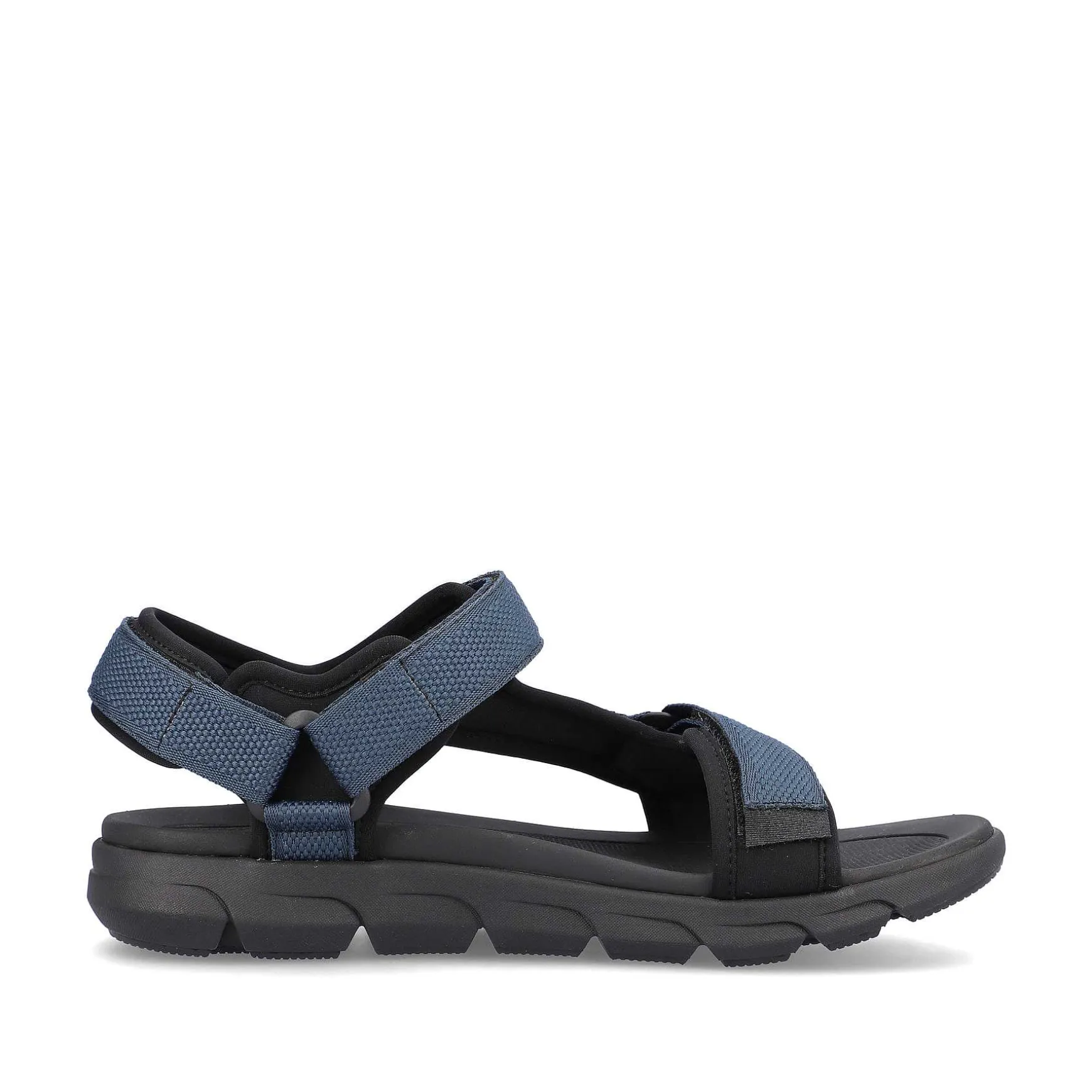 These Blue Sport & Style Trekking Sandals For Men Made From High-Quality Textile Can Be Put On Easily And Quickly Thanks To The Adjustable Velcro Fastener. The Super Light, Flexible Outsole, Together With The Extra Soft Insole, Ensures A Sporty Running Feeling. Perfect Fit Thanks To Comfort Width.