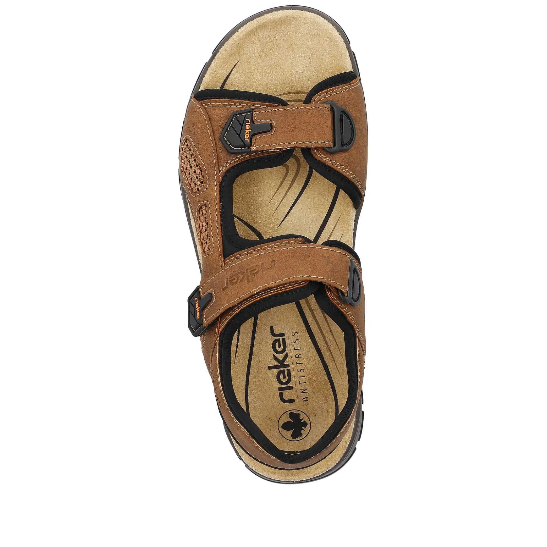 Brown Is The New Black! This Wooden Brown Rieker Trekking Sandal For Men Impresses With Its Modern Design And High Level Of Comfort. Optimal Support And A Perfect Fit Are Guaranteed By Straps, An Adjustable Velcro Fastener And A Wide Heel Strap. The Shock-Absorbing And Lightweight Sole Ensures A Comfortable Walking Experience Even When Worn For Long Periods Of Time. The Model Is Cut In A Comfortable Width G And Ensures Enough Space For The Foot. What More Do You Want?