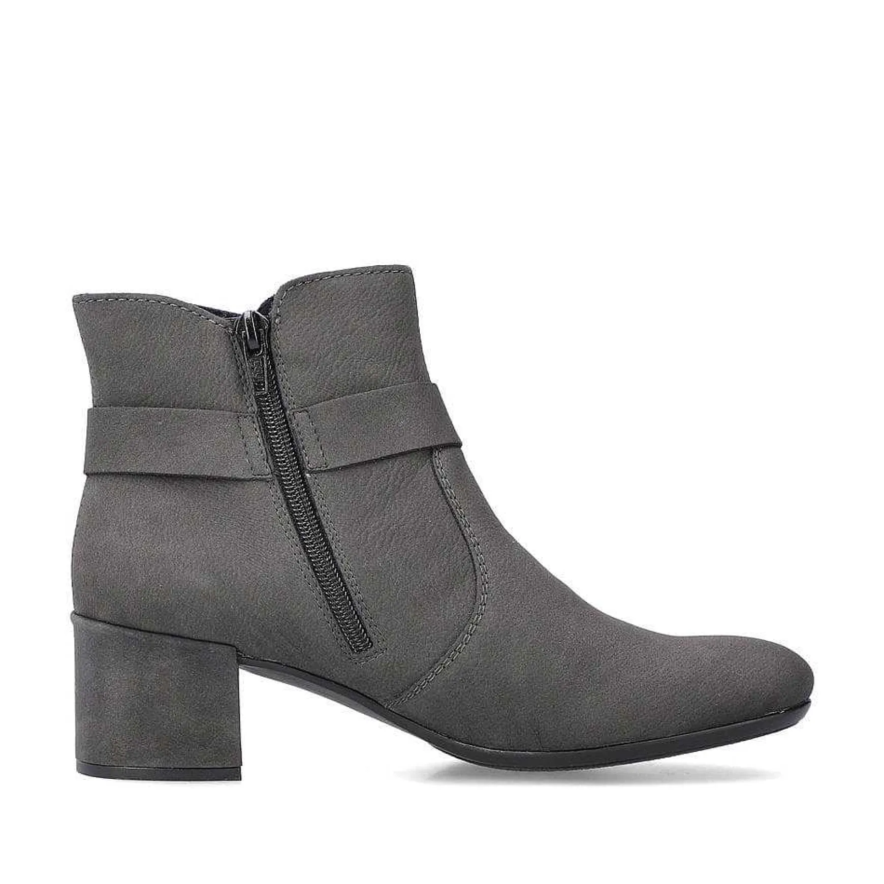 Gray Is Great. These Anthracite Ankle Boots With An Ankle-High Shaft From Rieker Are Rebelliously Cool And Totally Hip. The Side Zipper Makes It Easy To Put On And Take Off. Real Eye-Catchers Are A Chic Side Buckle And A Pointed Cap. The Light And Shock-Absorbing Profile Sole With A Small Block Heel Pampers Your Feet With Every Step. In Addition, The Slim E 1/2 Fit Provides Additional Support. 100% Favorite Shoe Potential!