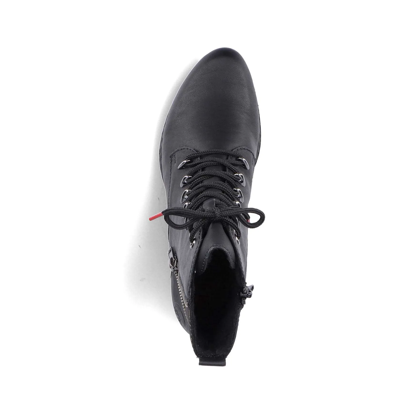 All-Time Favorite! These Deep Black Ankle Boots From Rieker Have Been Elaborately Crafted. Despite The Lacing, The Shoe Can Be Easily Closed With A Zipper. The Stylish Eyelets Highlight The Design In A Fashionable Way. The Shock-Absorbing And Lightweight Sole With Block Heel Ensures A Comfortable Walking Experience Even When Worn For Long Periods Of Time. Feel Good Included!