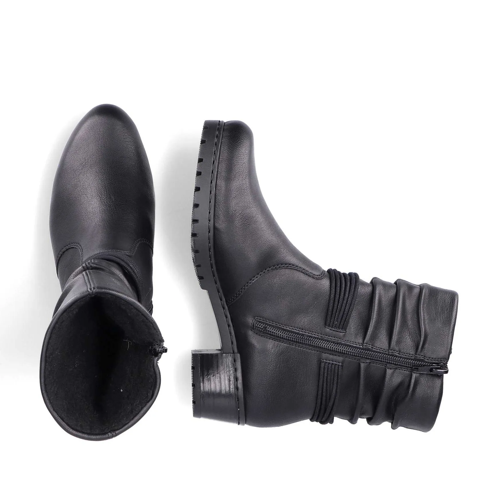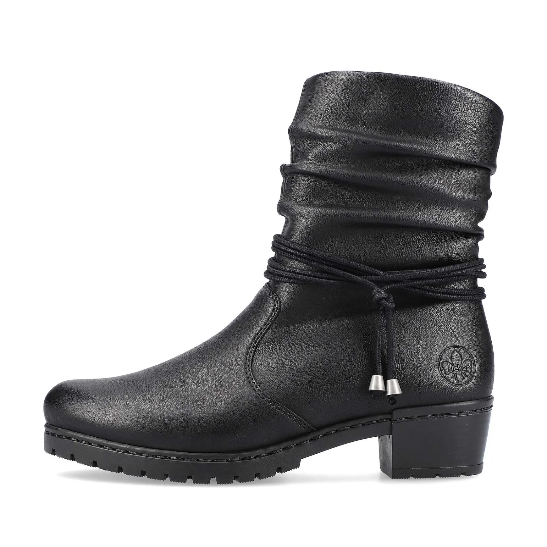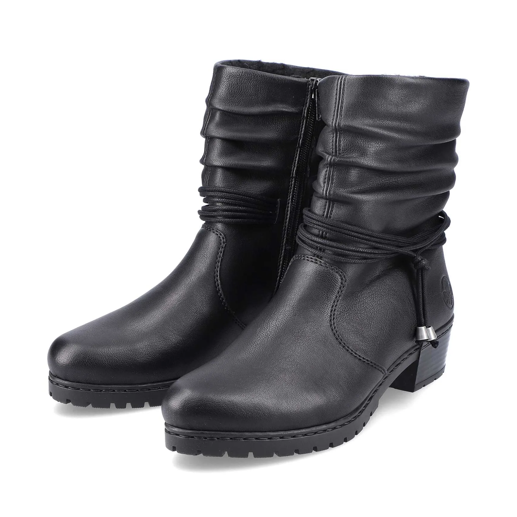 This Is The Pinnacle Of Comfort! These Deep Black Ankle Boots From Rieker Guarantee A Heavenly Wearing Experience. The Side Zipper Makes It Easy To Put On And Take Off. The Decorative Black Band On The Side Provides That Certain Something. The Light And Shock-Absorbing Sole With Block Heel Offers A Lasting Feeling Of Well-Being – Even On Long Days. Feet Are Guaranteed To Stay Warm All Day Long Thanks To The Soft Warm Lining. The Cold No Longer Has A Chance!