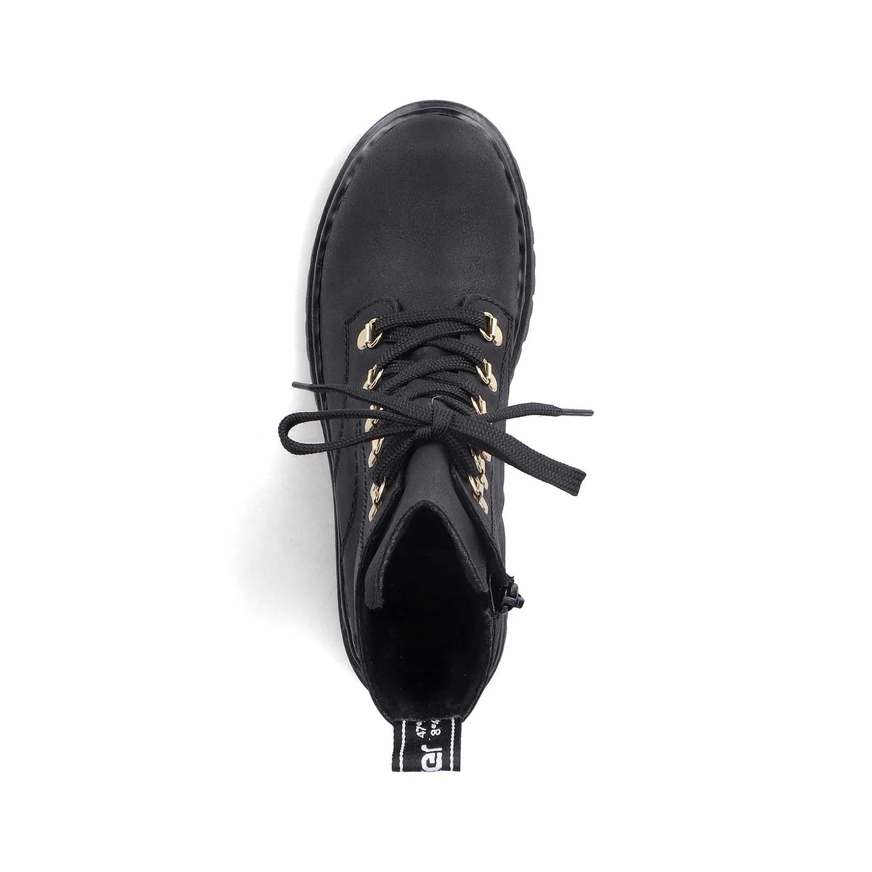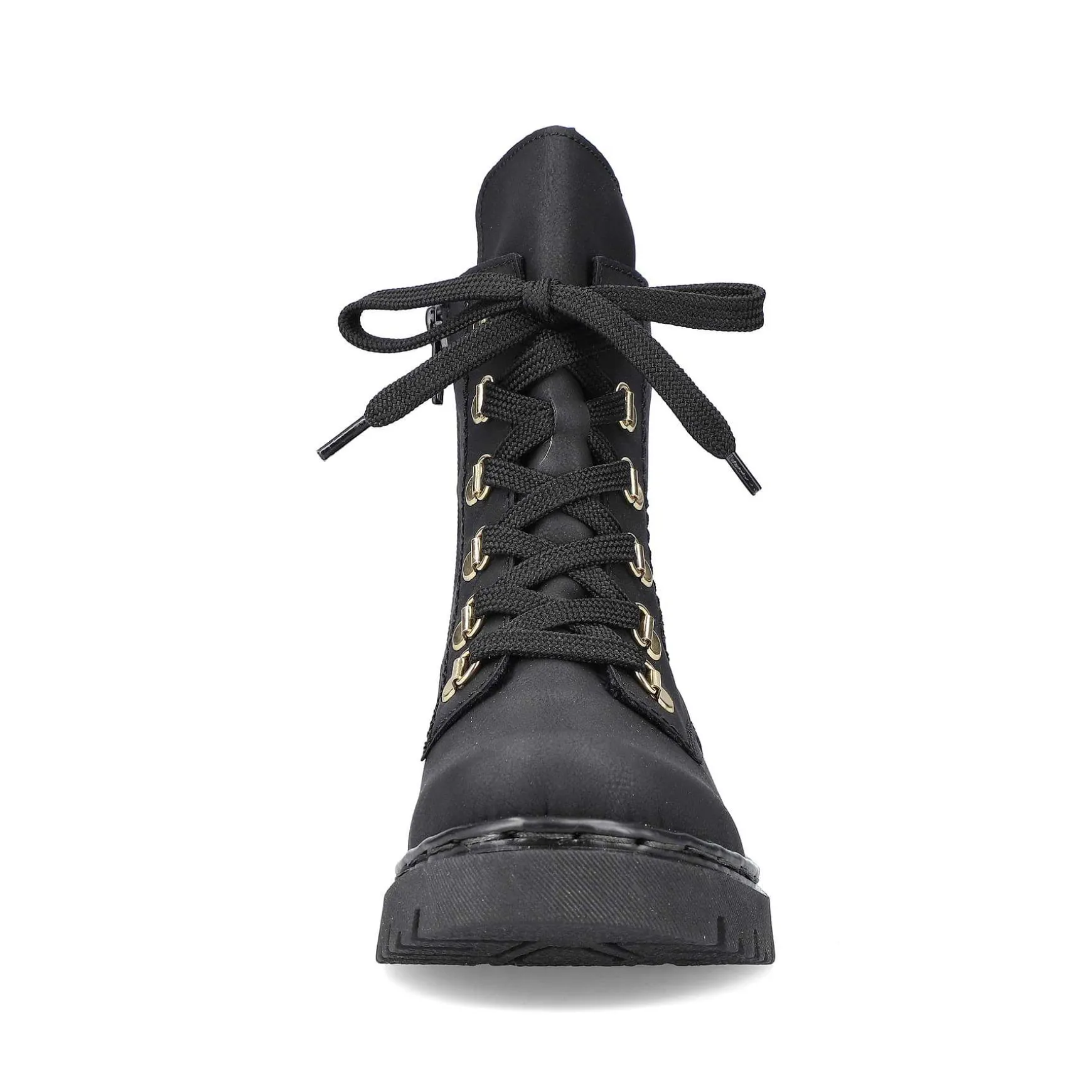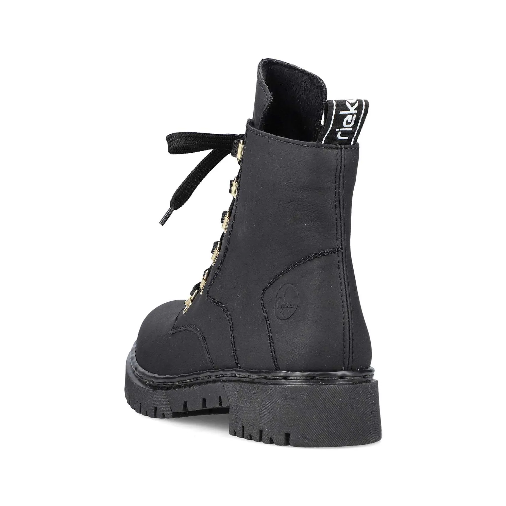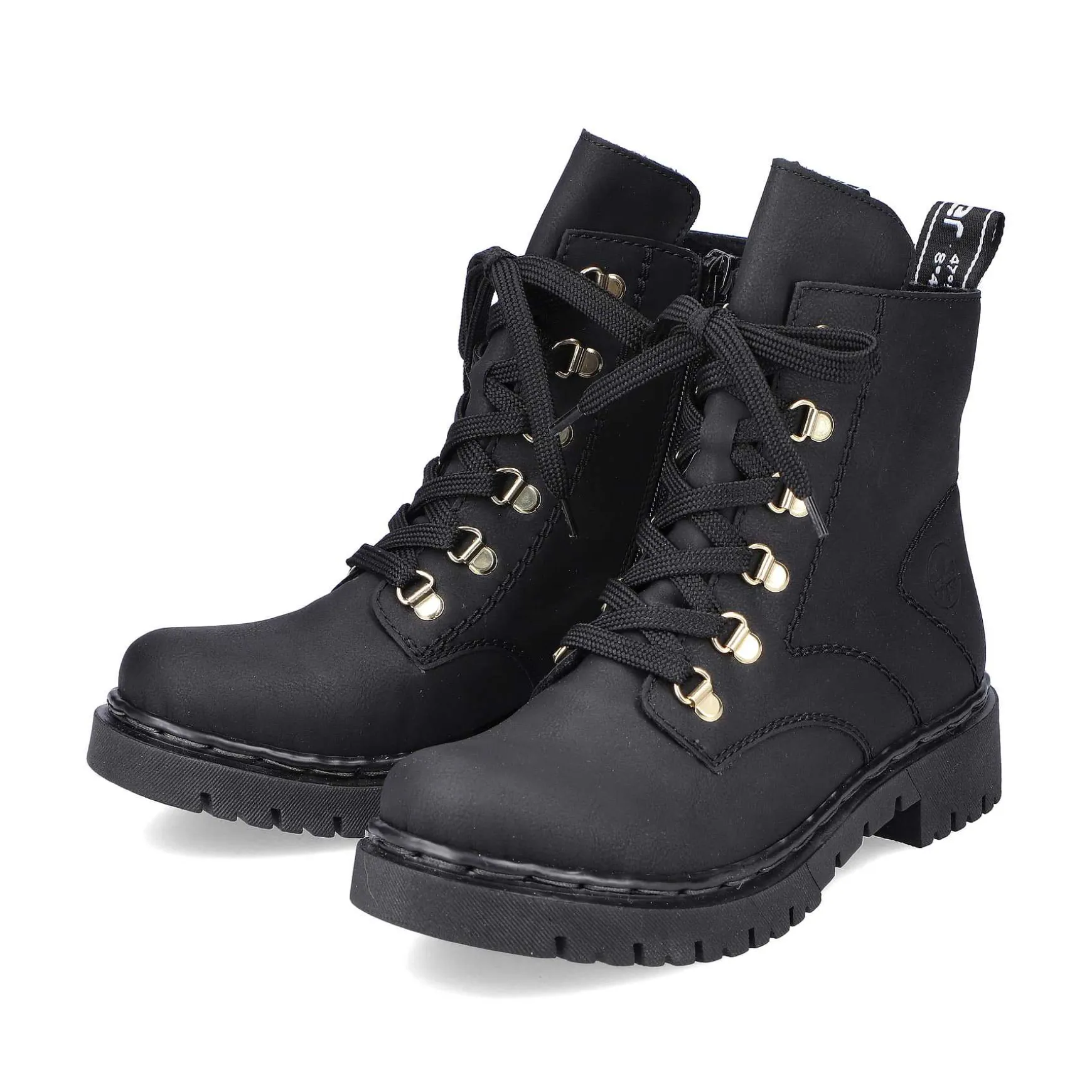 All In One Shoe! These Deep Black Biker Boots From Rieker Impress With Their Modern Design And High Level Of Comfort. The Ingenious Combination Of Lacing And Zipper Makes It Easy To Put On And Take Off. The Gold-Colored Mountaineering Eyelets Are Stylish Eye-Catchers. The Profile Sole Is Robust And Ensures Good Grip At All Times. The Cover Sole Is Also Extra Soft. What More Do You Want?