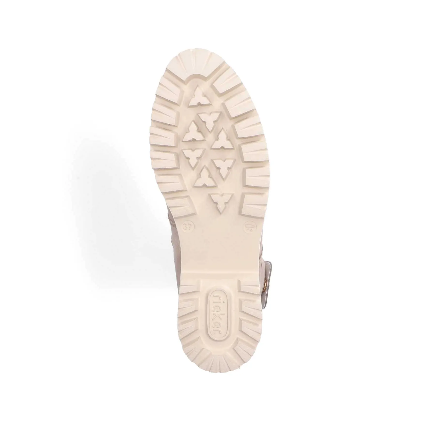 Cozyness, Comfort And More Meet Modern Design. These Light Beige Biker Boots With A Medium-High Shaft From Rieker Are Rebelliously Cool And Totally Hip. The Clever Combination Of Lacing And Zipper Makes It Easy To Put On And Take Off. A Stylish Decorative Pocket On The Side Is Pretty Details. The Flexible And Ultra-Light Profile Sole Promises Sure-Footedness And The Soft Insole Ensures Extra Comfort. Your Feet Are Guaranteed To Stay Warm All Day Thanks To The Cozy Lambswool Lining And Also Dry Thanks To Riekertex Technology!