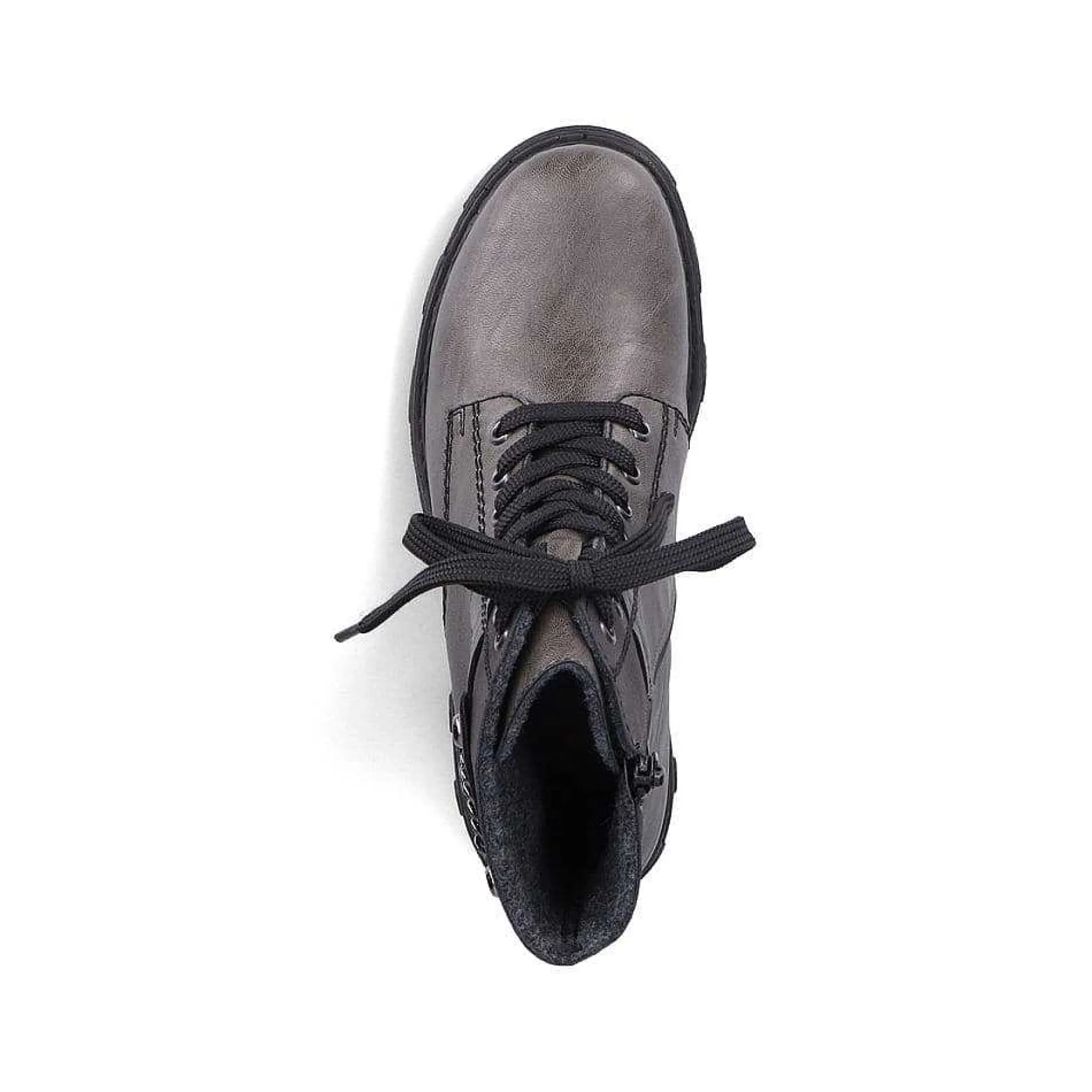 Fashion Meets Feature. These Moon Gray Biker Boots With A High Shaft From Rieker Are Rebelliously Cool And Totally Hip. The Clever Combination Of Zipper And Lacing Makes It Easy To Put On And Take Off. A Dark Gray Shaft With A Stylish Decorative Chain Sets The Design In A Fashionable Light. The Lightweight And Shock-Absorbing Chunky Sole Pampers Your Feet With Every Step. Furthermore, The Soft Insole Ensures An Extra Portion Of Comfort. Attention Favorite Shoe Potential.