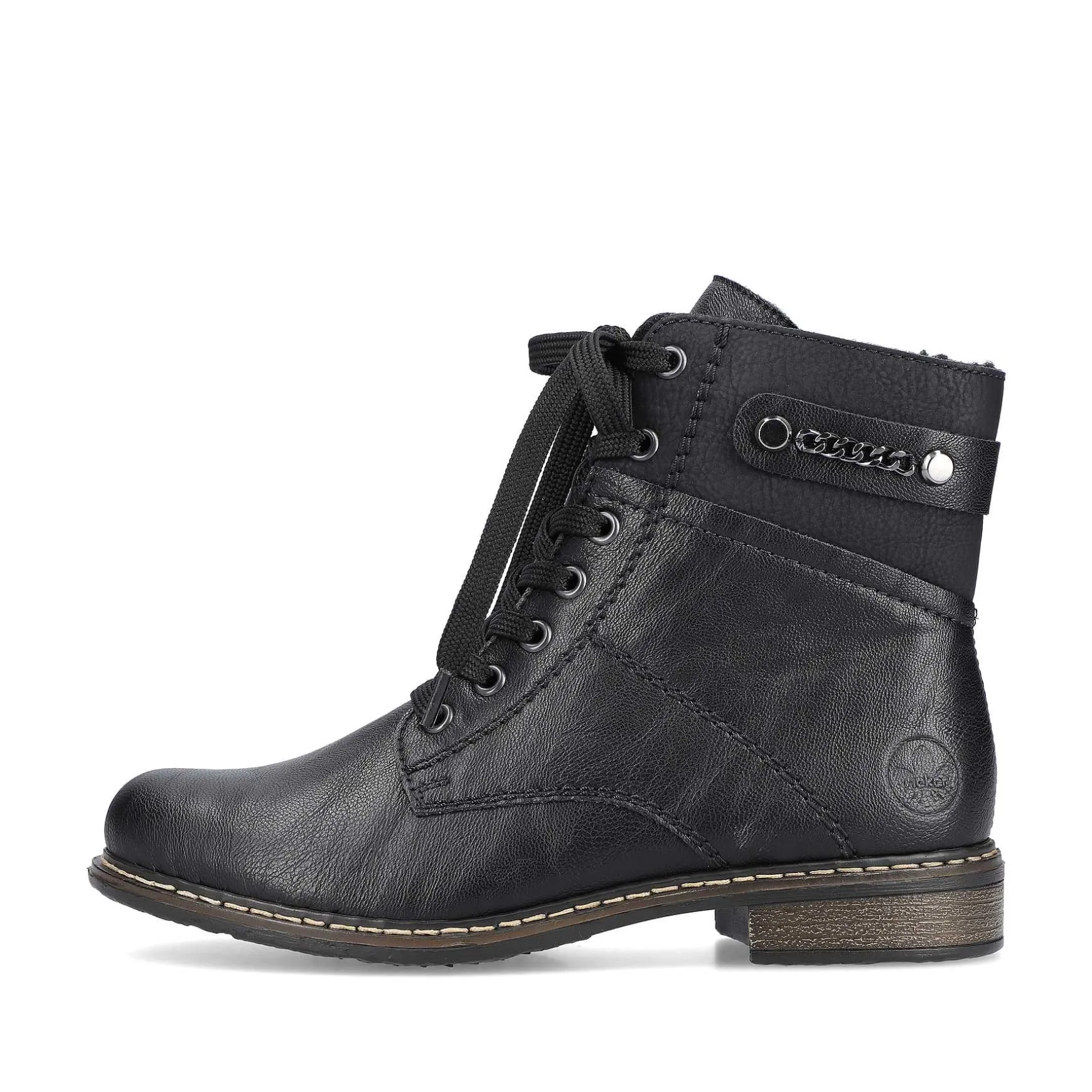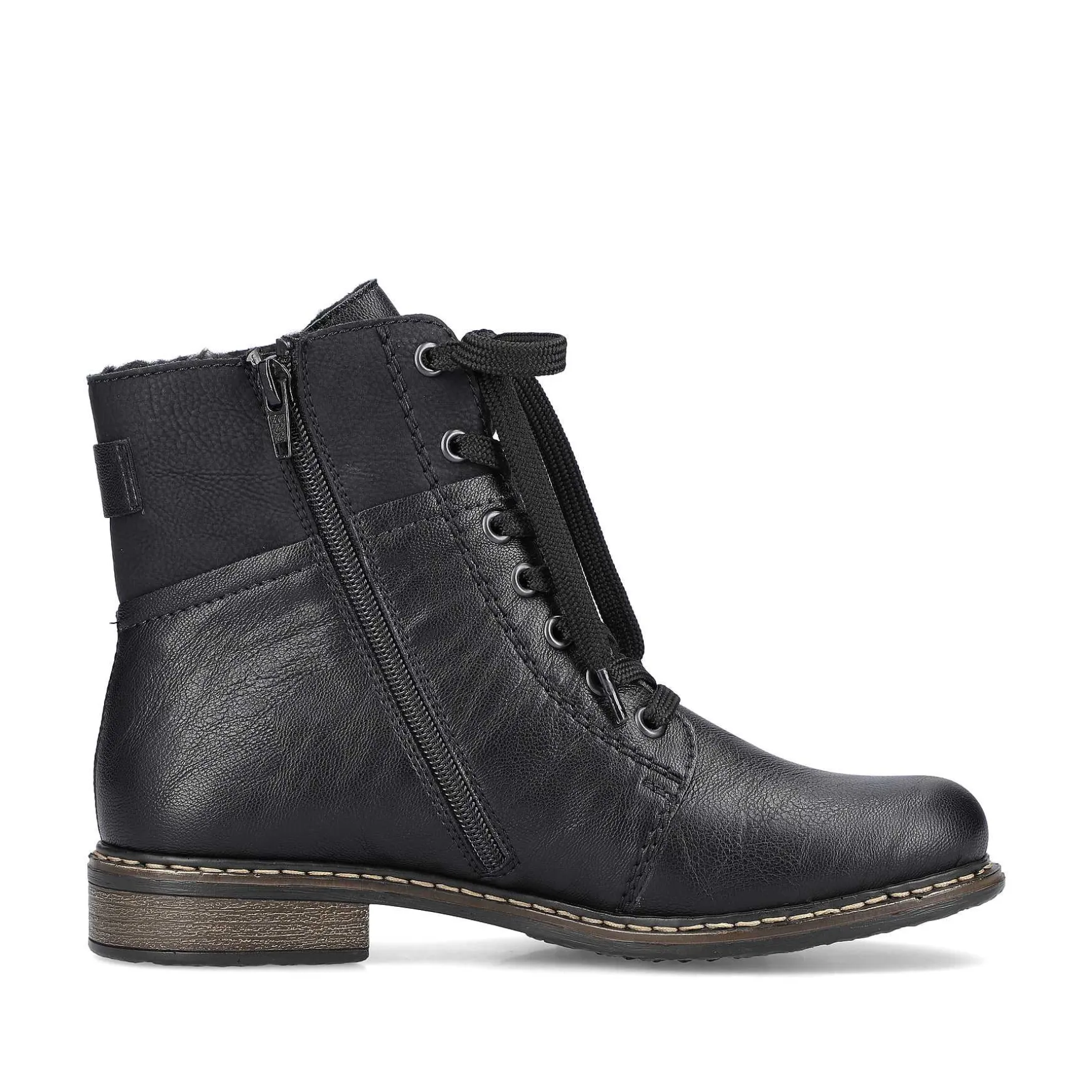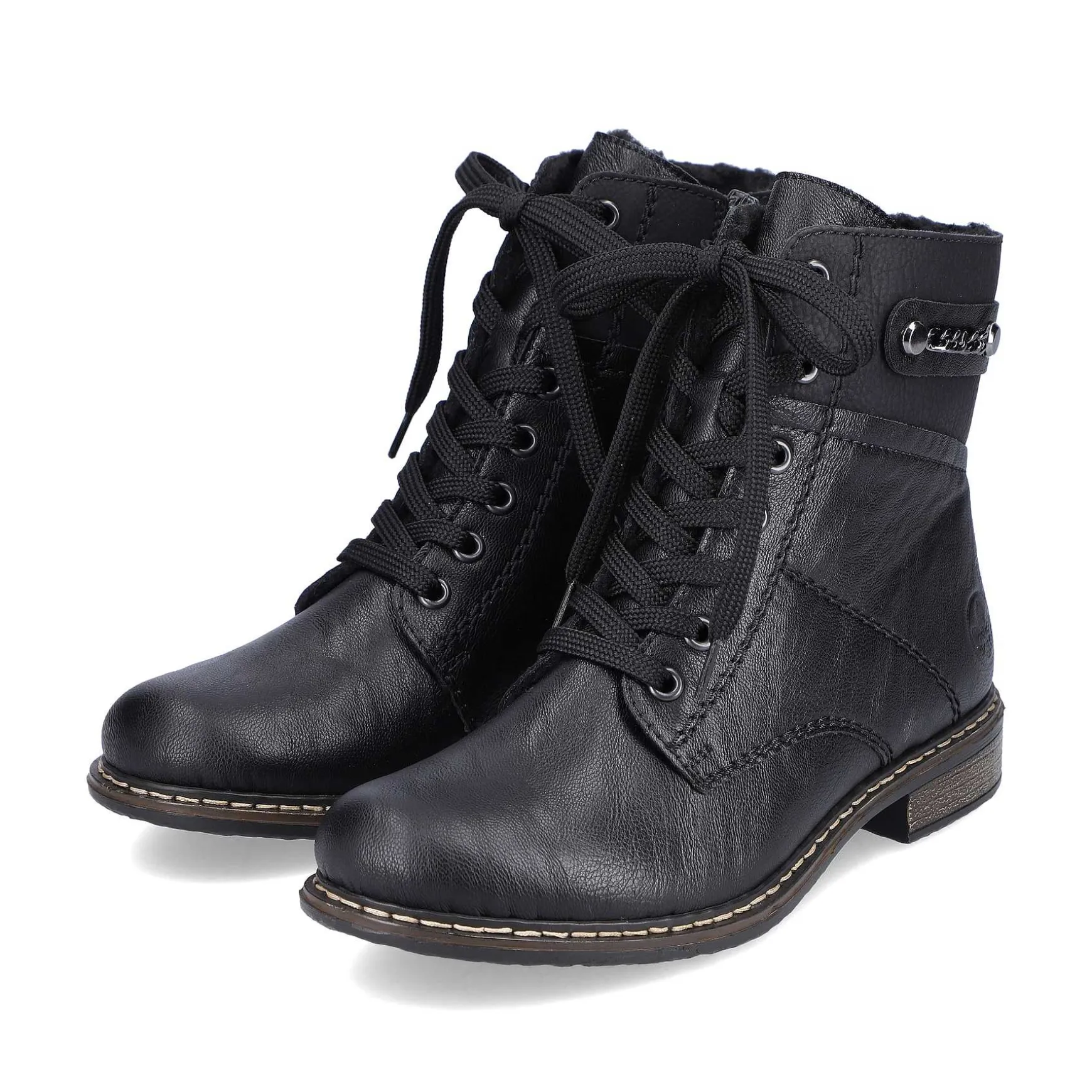 Black Is Always A Good Idea. You Won’T Want To Take Off These Deep Black Lace-Up Boots From Rieker. The Lacing Is Complemented By A Zipper, Thus Guaranteeing A Good Hold And A Perfect Fit. With The Shock-Absorbing And Lightweight Sole, Your Feet Will Be Pampered With Every Step And The Extra Soft Insole Ensures More Comfort. The Soft Warm Lining Keeps Your Feet Cozy And Warm. The Cold No Longer Has A Chance!
