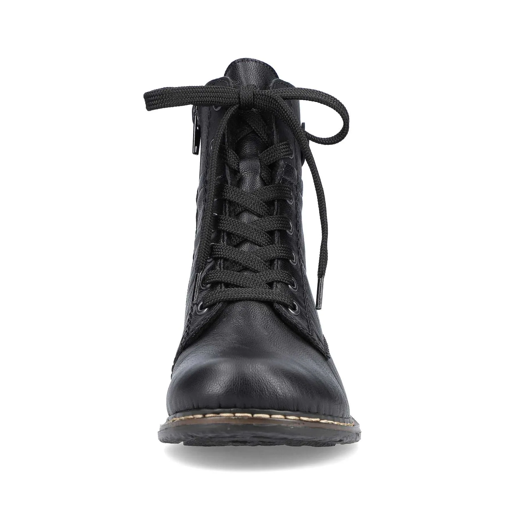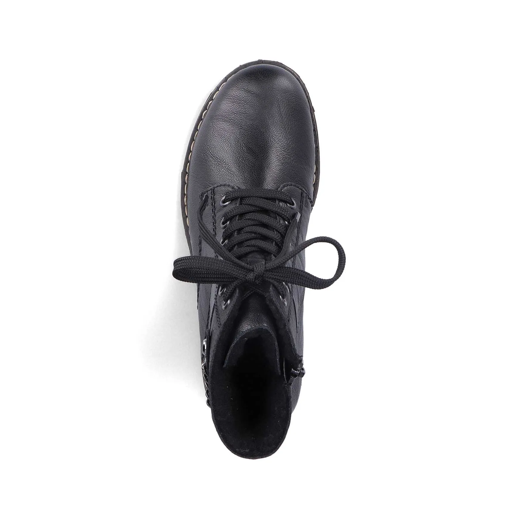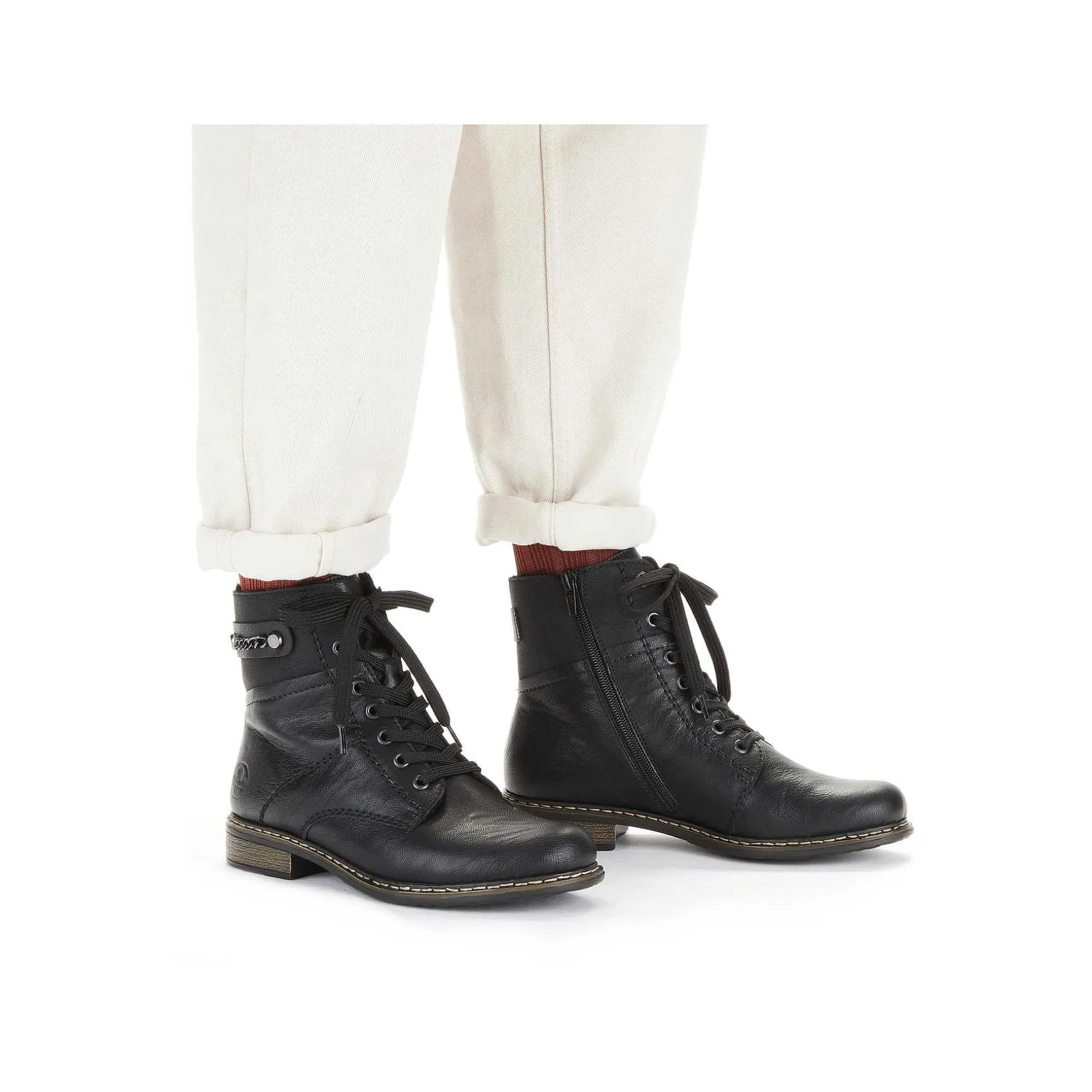 Black Is Always A Good Idea. You Won’T Want To Take Off These Deep Black Lace-Up Boots From Rieker. The Lacing Is Complemented By A Zipper, Thus Guaranteeing A Good Hold And A Perfect Fit. With The Shock-Absorbing And Lightweight Sole, Your Feet Will Be Pampered With Every Step And The Extra Soft Insole Ensures More Comfort. The Soft Warm Lining Keeps Your Feet Cozy And Warm. The Cold No Longer Has A Chance!