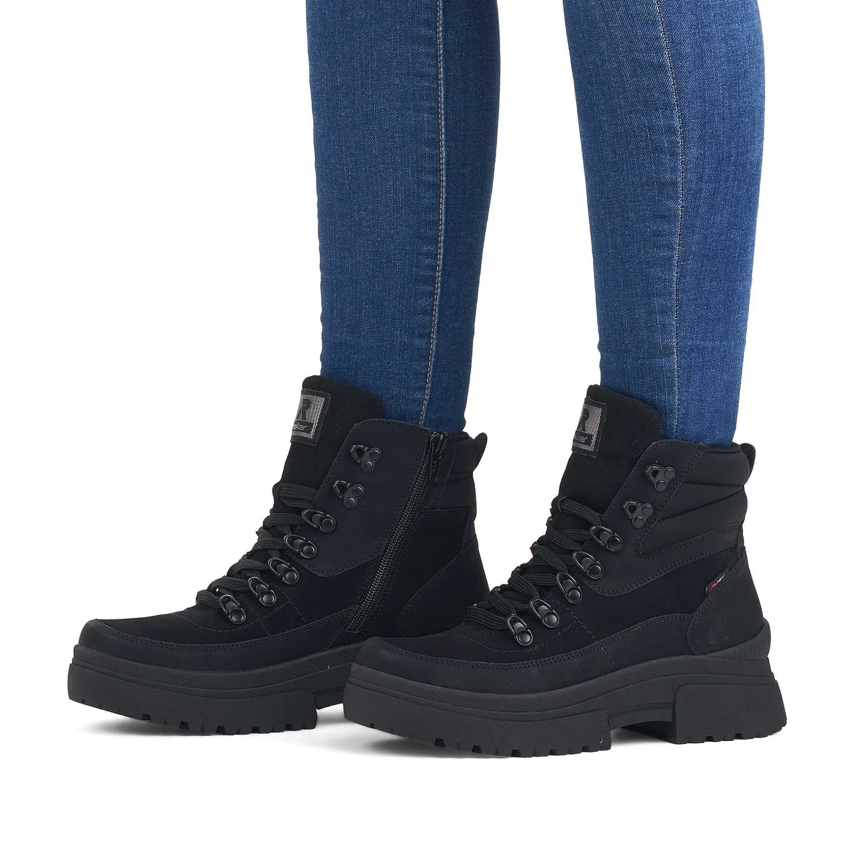 This Black Sport & Style Lace-Up Boot For Women Is Equipped With A Water-Repellent, Breathable Riekertex Membrane. Made From High-Quality Faux Leather, It Has An Uncomplicated Zipper. The Light Tr Sole Provides Support On Various Surfaces And The Soft, Removable Insole Cushions Every Step. Plus: Very Warm Lining.