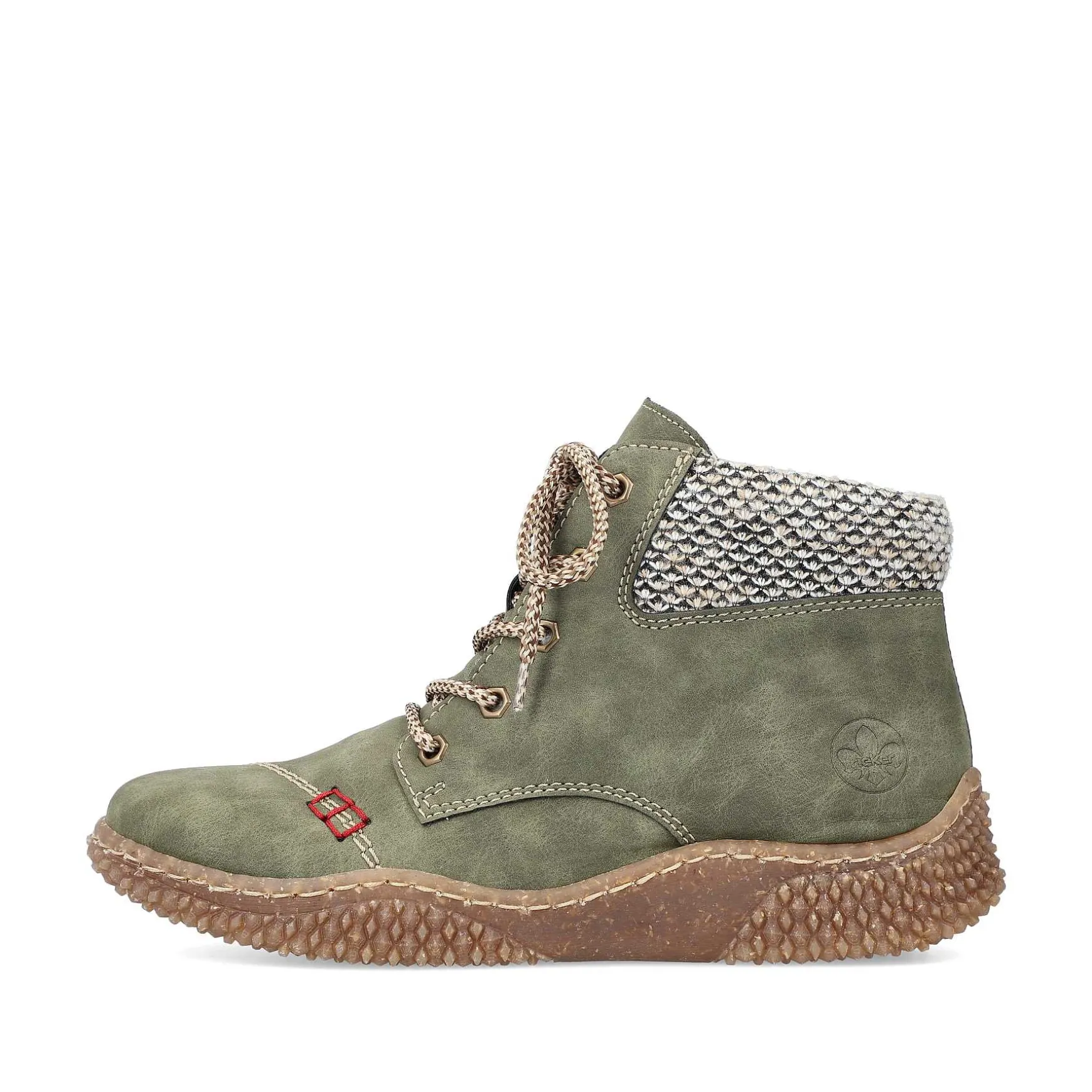 All-Time Favorite! The Cold Season Wouldn’T Be Half As Fun Without These Stylish Leaf Green Lace-Up Boots From Rieker. A Lacing Complements The Zipper And Ensures Functionality And Comfort. The Red Square Seams Are Nice Details. The Shoe Has A Robust Profile Sole That Impresses With Good Grip For A Safe Step. In Addition, The Cover Sole Is Extra Soft. Soft Warm Lining Makes These Lace-Up Boots The Ideal Companion – Whatever The Weather. Fashionable Wellness Feeling In The Style Of Rieker!