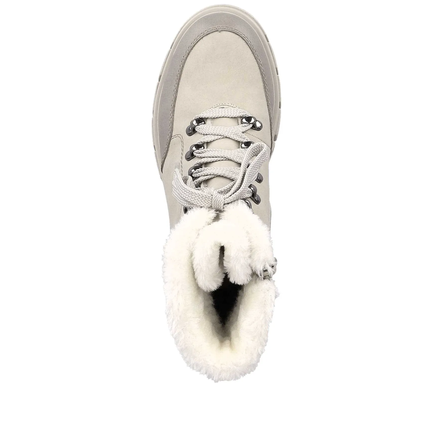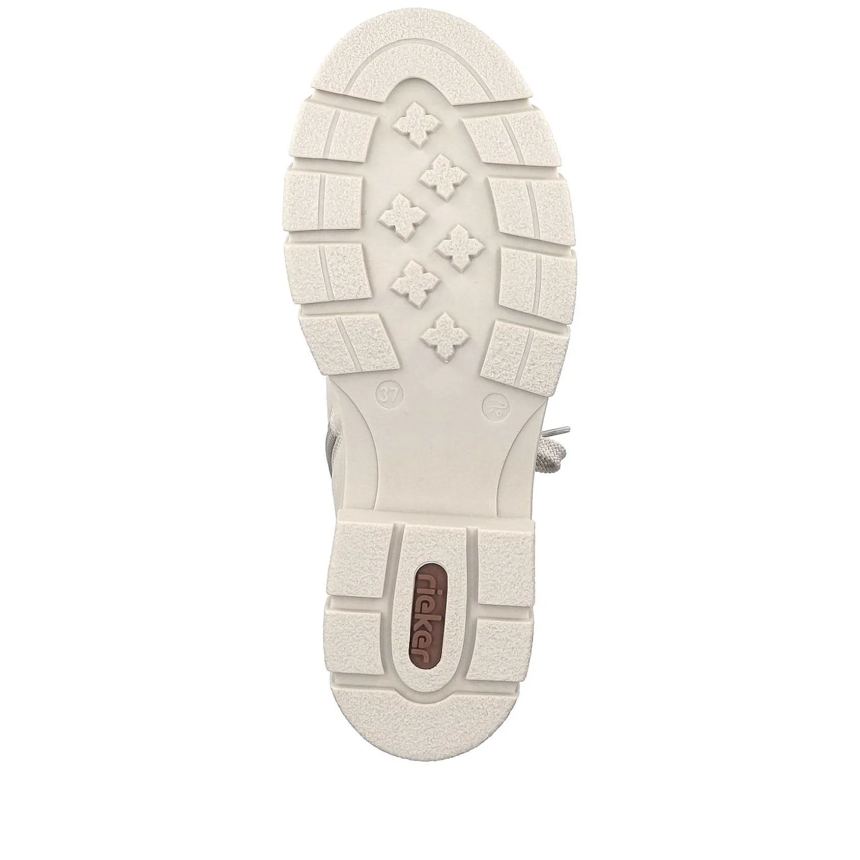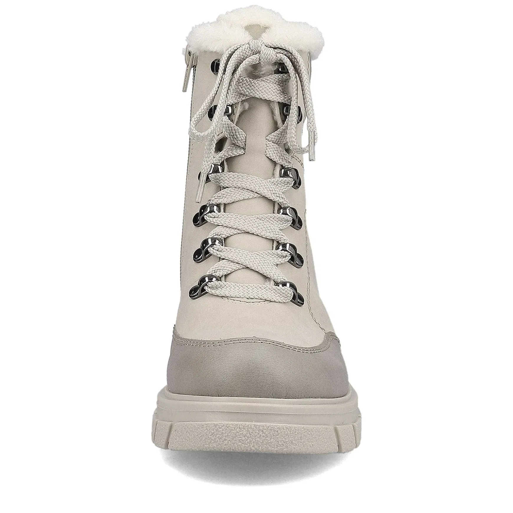Creme De La Creme! Dark Days Become Brighter With These Beige Lace-Up Boots From Rieker. The Clever Combination Of Lacing And Zipper Makes It Easy To Put On And Take Off. The Robust Profile Sole Provides Support On Different Paths. In Addition, The Cover Sole Is Extra Soft. Soft Warm Lining Keeps Feet Cozy And Warm All Day Long. Waiting For What?