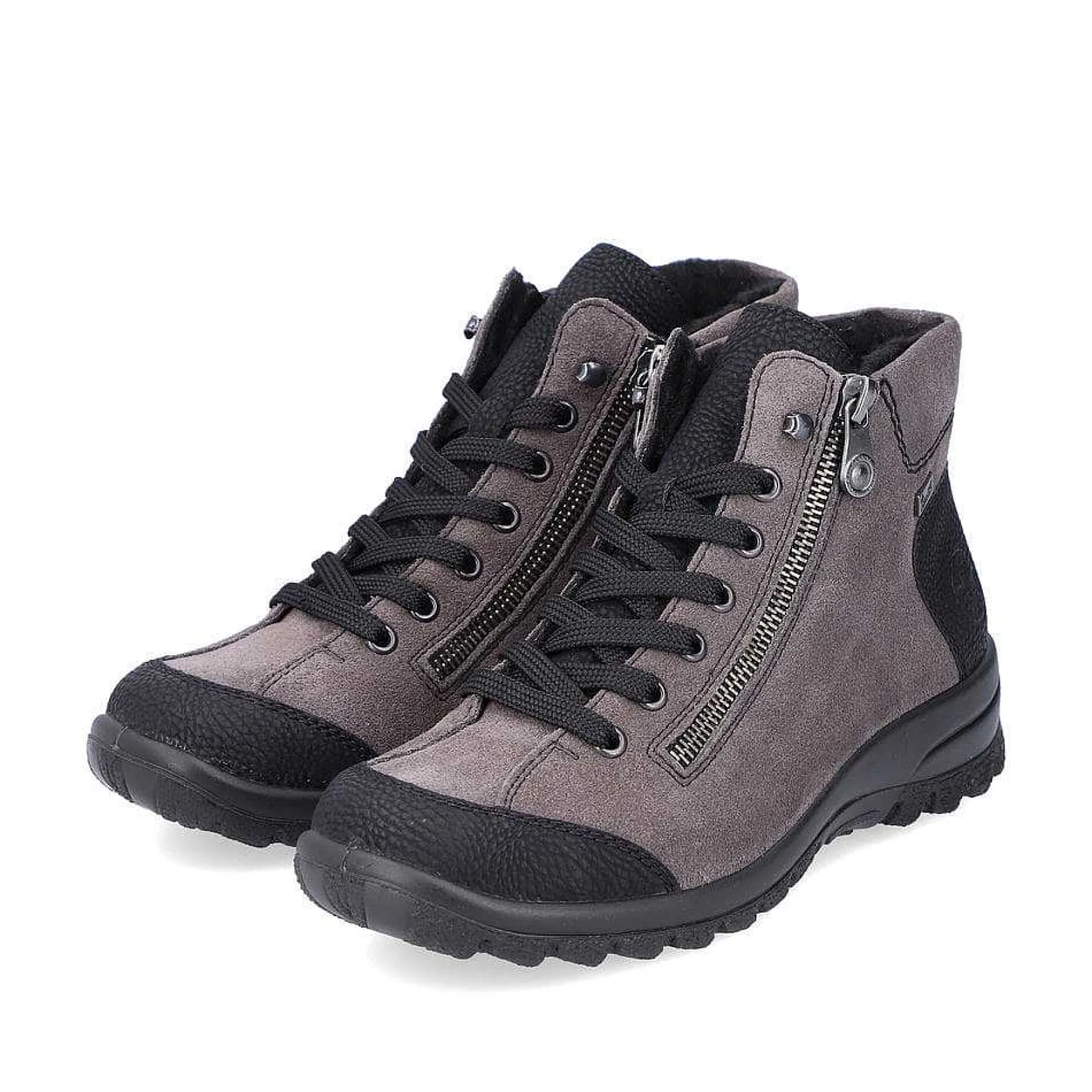 Gray Is Great. These Steel Gray Lace-Up Boots With An Ankle-High Shaft From Rieker Impress With Their Modern Design And High Level Of Comfort. The Clever Combination Of Zipper And Lacing Makes It Easy To Put On And Take Off. A Black, Round Cap Adds A Fresh Accent. The Light And Shock-Absorbing Profile Sole Is A Feel-Good Factor On Top. When It Comes To Comfort, The Shoe Also Hits The Jackpot Thanks To The Water-Repellent Riekertex Technology And The Fluffy Warm Lining.