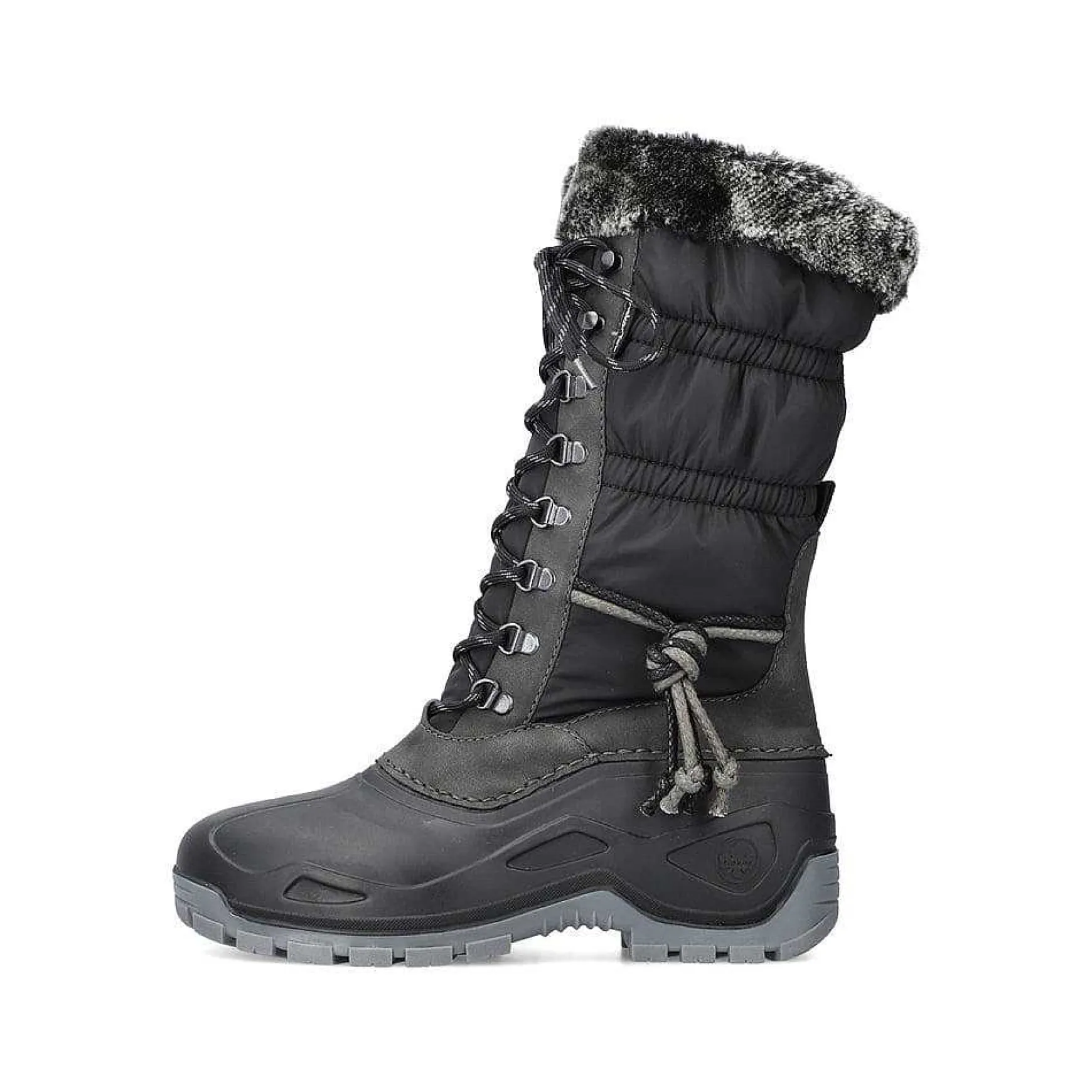 Wow Factor! We Love Cozy High-Shaft Boots With A Wintery Gray-Black High Shaft In Deep Black! In Addition, The Long Lacing Ensures A Good Fit To The Foot. The Light And Robust Profile Sole Provides Support On Different Paths. Another Plus Is The Soft Insole. In Addition, Your Feet Are Offered More Space Thanks To The Comfort Width G. When It Comes To Comfort, The Shoe Also Hits The Jackpot Thanks To The Water-Repellent Riekertex Technology And The Fluffy Warm Lining.