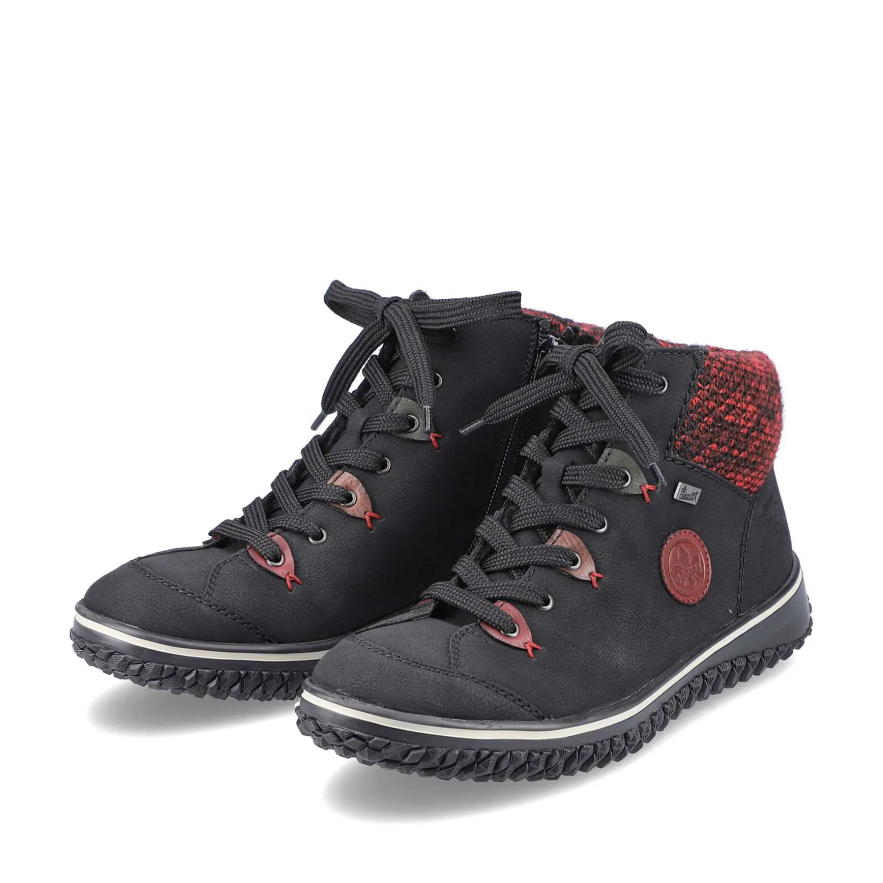 All-Time Favorite! With These Graphite Black Lace-Up Shoes, The Cold Is A Foreign Word. In Addition To The Lacing, The Model Also Has A Zipper And Ensures A Good Hold. The Stylish Multicolored Eyelets Are Real Eye-Catchers. The Robust Profile Sole Provides Good Grip At Every Turn. When It Comes To Comfort, The Shoe Also Hits The Jackpot Thanks To The Water-Repellent Riekertex Membrane And The Fluffy Warm Lining. Fashionable Well-Being In The Style Of Rieker!