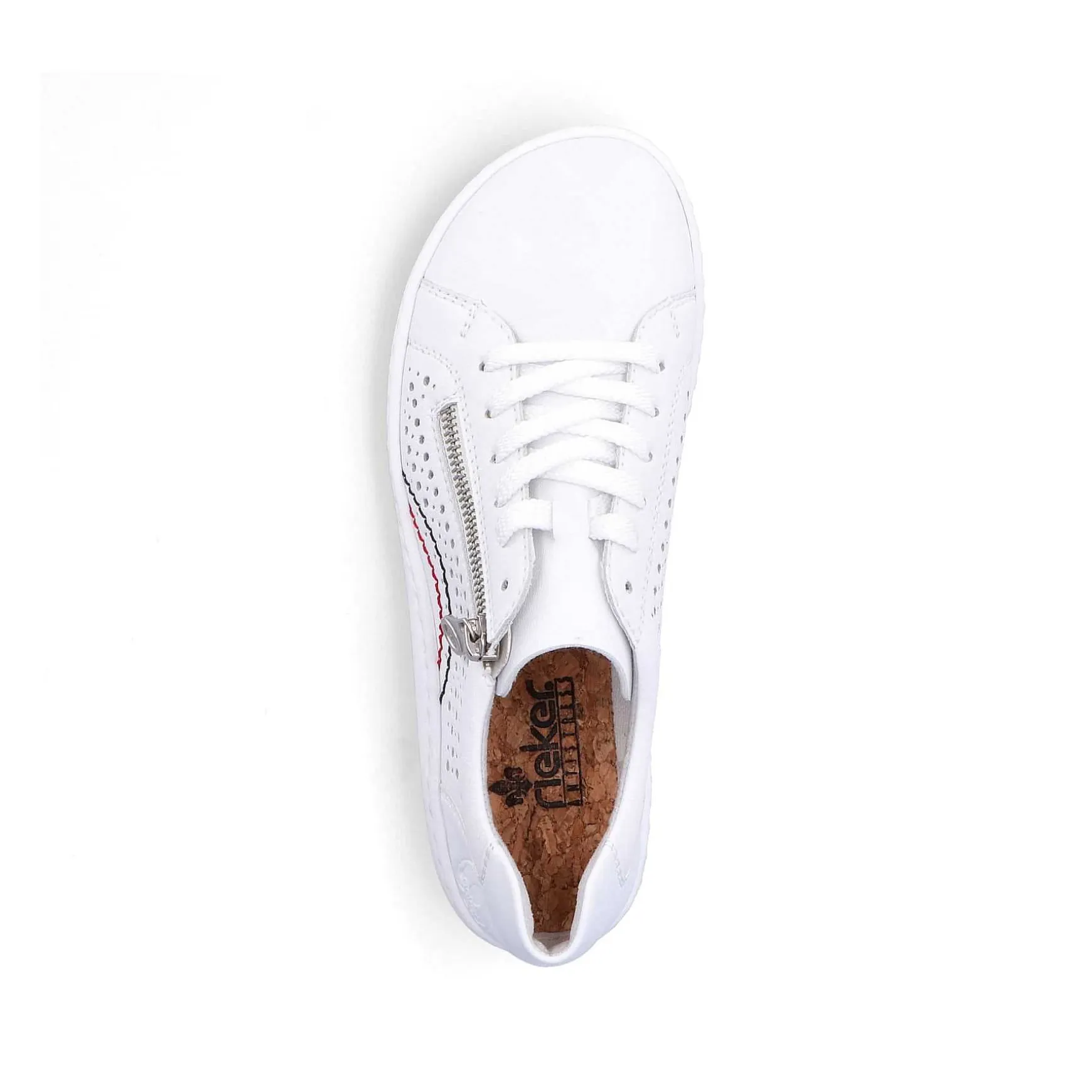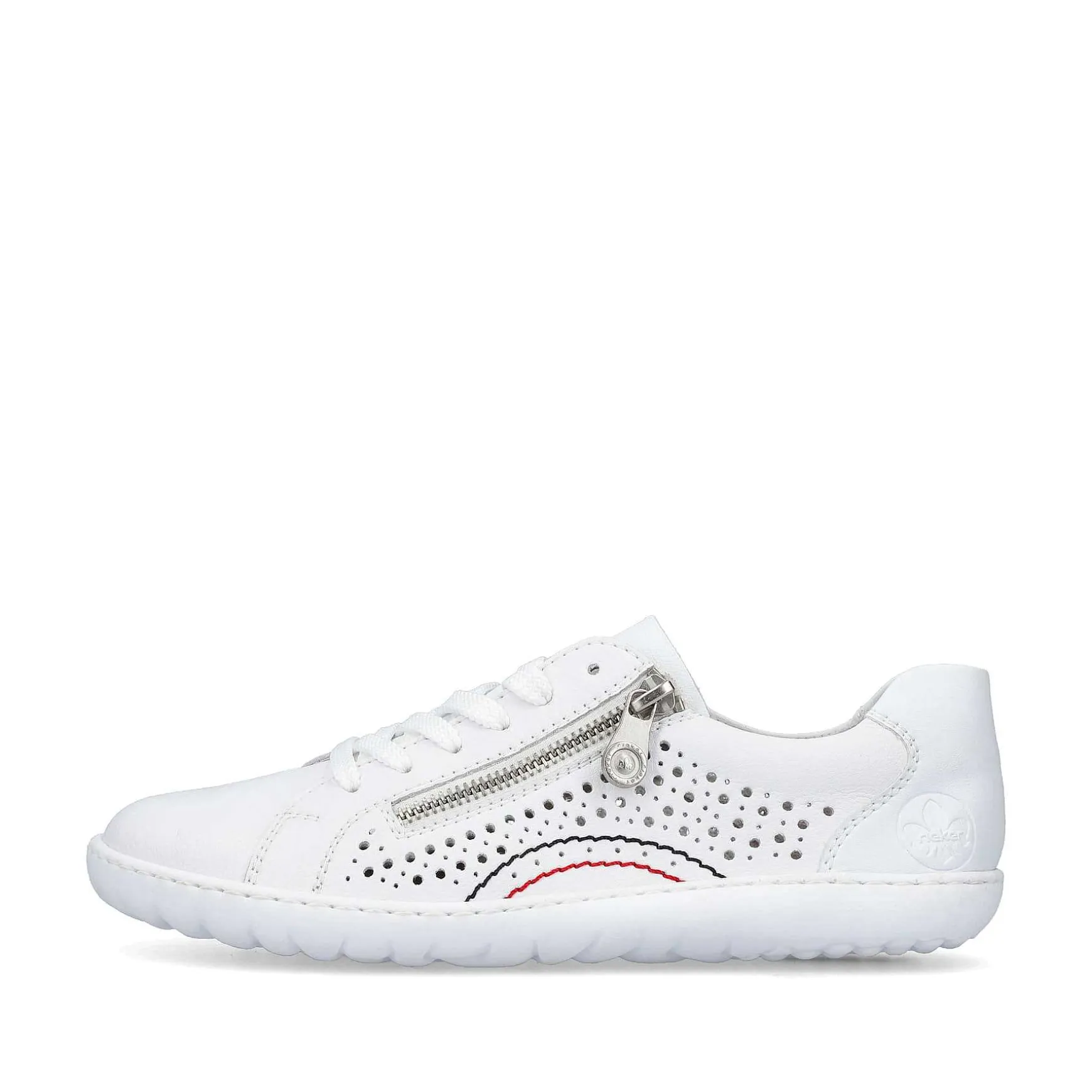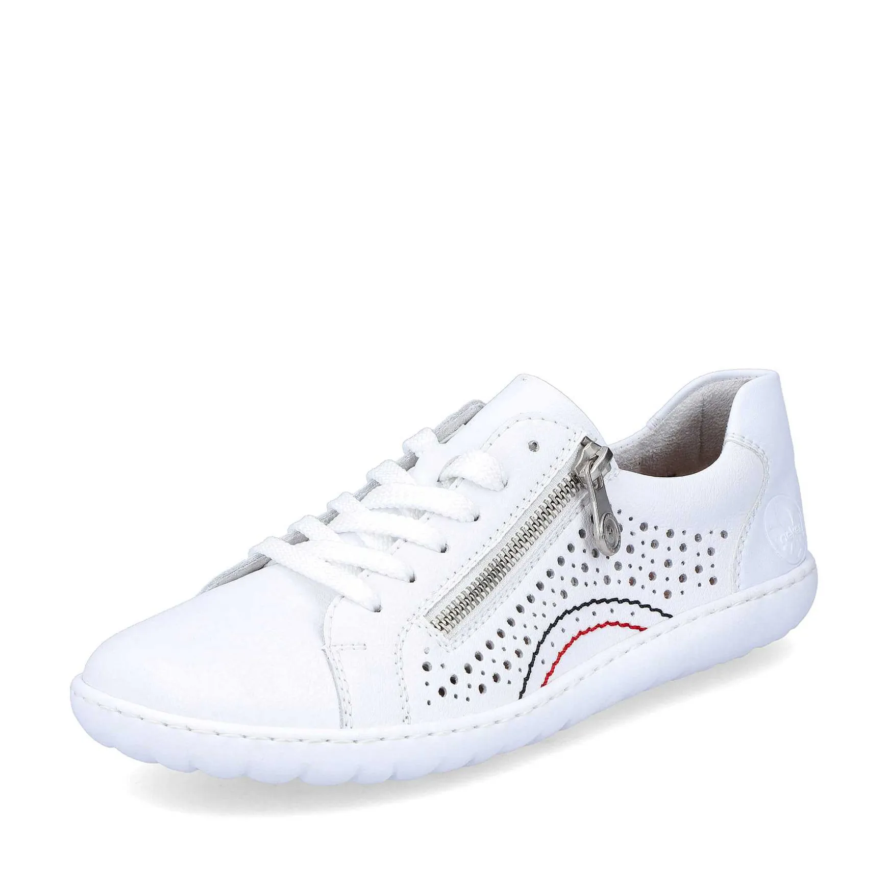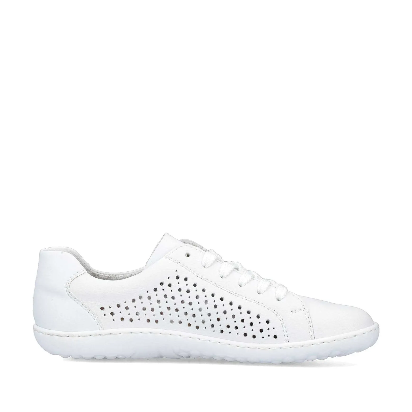 All-Rounder! These Pearl White Rieker Lace-Up Shoes For Women Made Of Smooth Leather Feel Like Barefoot! In Addition To The Zipper, The Model Also Has Lacing, Ensuring The Best Possible Hold. The Openwork Style Is A Pretty Detail. With The Shock-Absorbing And Very Light Sole, Your Feet Enjoy The Best Walking Comfort With Every Step. All In One – Great!