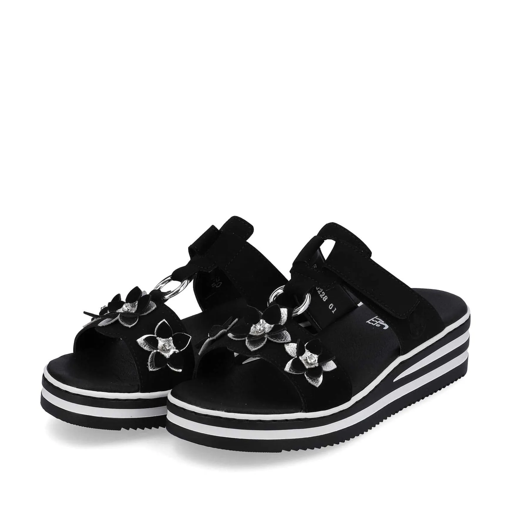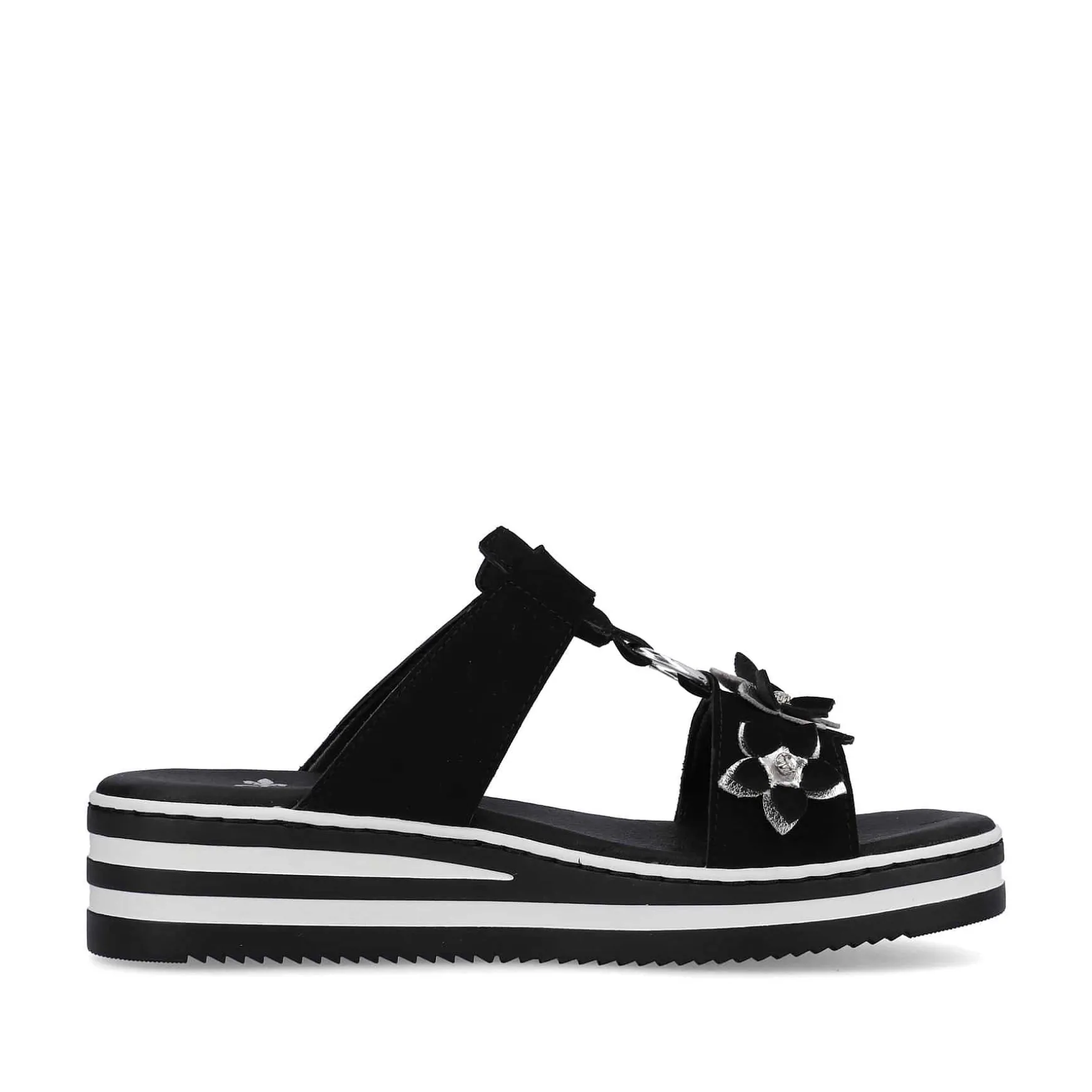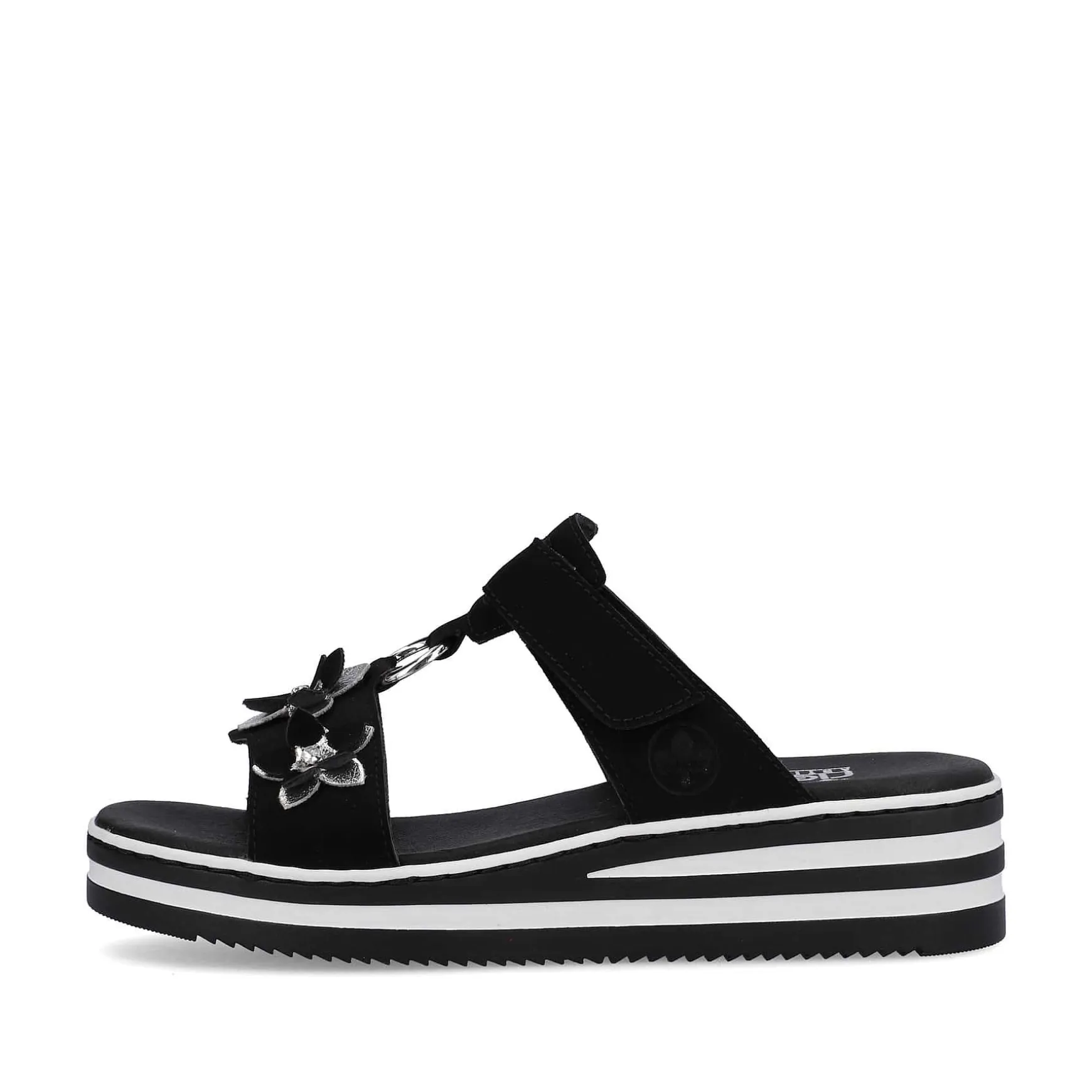 Summer, Sun, Beautiful Shoes! These Graphite Black Rieker Mules For Women Have Been Elaborately Crafted. A Velcro Fastener Allows For Quick And Comfortable Entry. The Floral Decoration Perfectly Rounds Off The Modern Design. The Open Shoe And The Light And Shock-Absorbing Sole Ensure A Lasting Feeling Of Well-Being. In Addition, The Extra Soft Insole Ensures An Extra Portion Of Comfort. In Addition, The Slim E 1/2 Fit Provides Additional Support. Searched, Found!