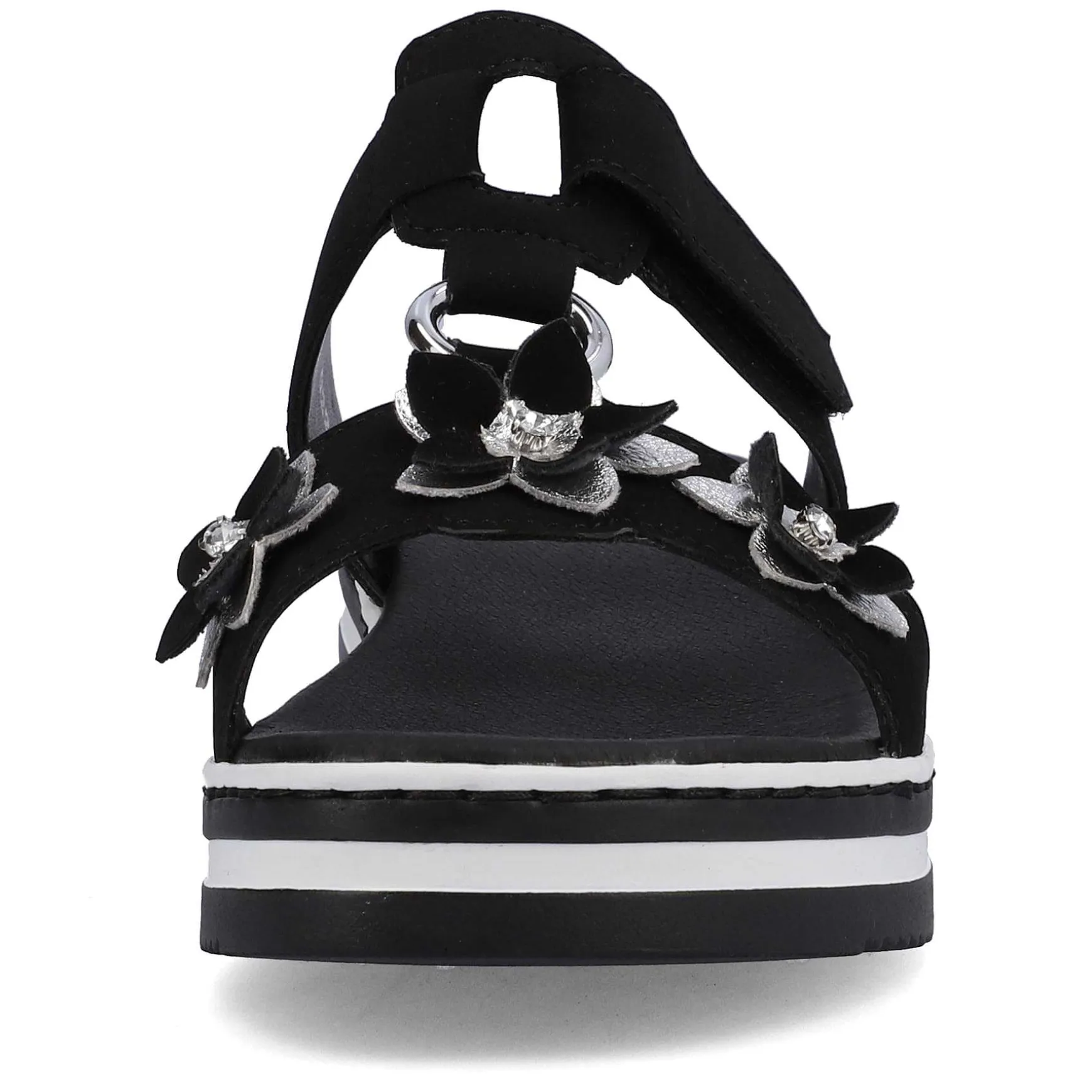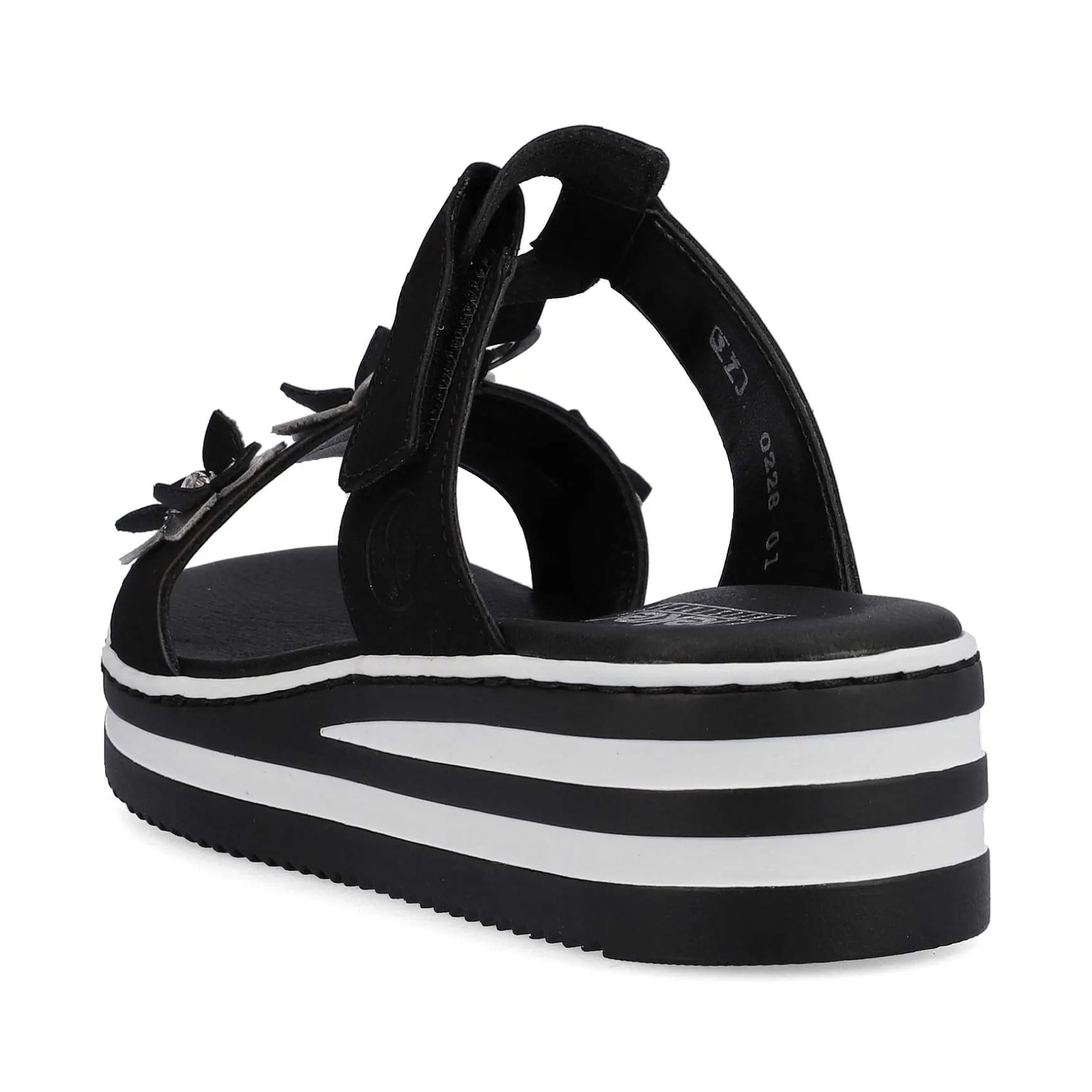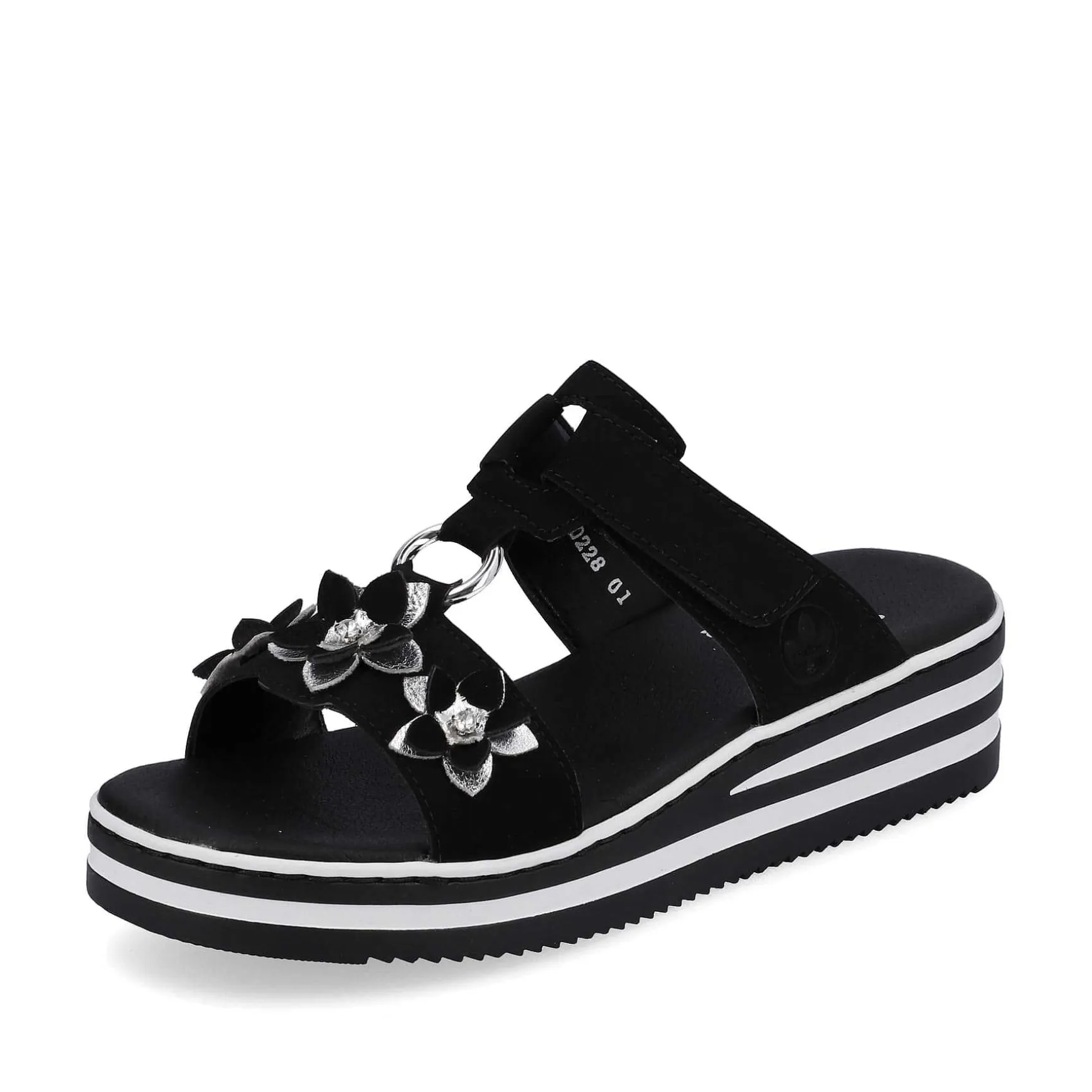 Summer, Sun, Beautiful Shoes! These Graphite Black Rieker Mules For Women Have Been Elaborately Crafted. A Velcro Fastener Allows For Quick And Comfortable Entry. The Floral Decoration Perfectly Rounds Off The Modern Design. The Open Shoe And The Light And Shock-Absorbing Sole Ensure A Lasting Feeling Of Well-Being. In Addition, The Extra Soft Insole Ensures An Extra Portion Of Comfort. In Addition, The Slim E 1/2 Fit Provides Additional Support. Searched, Found!