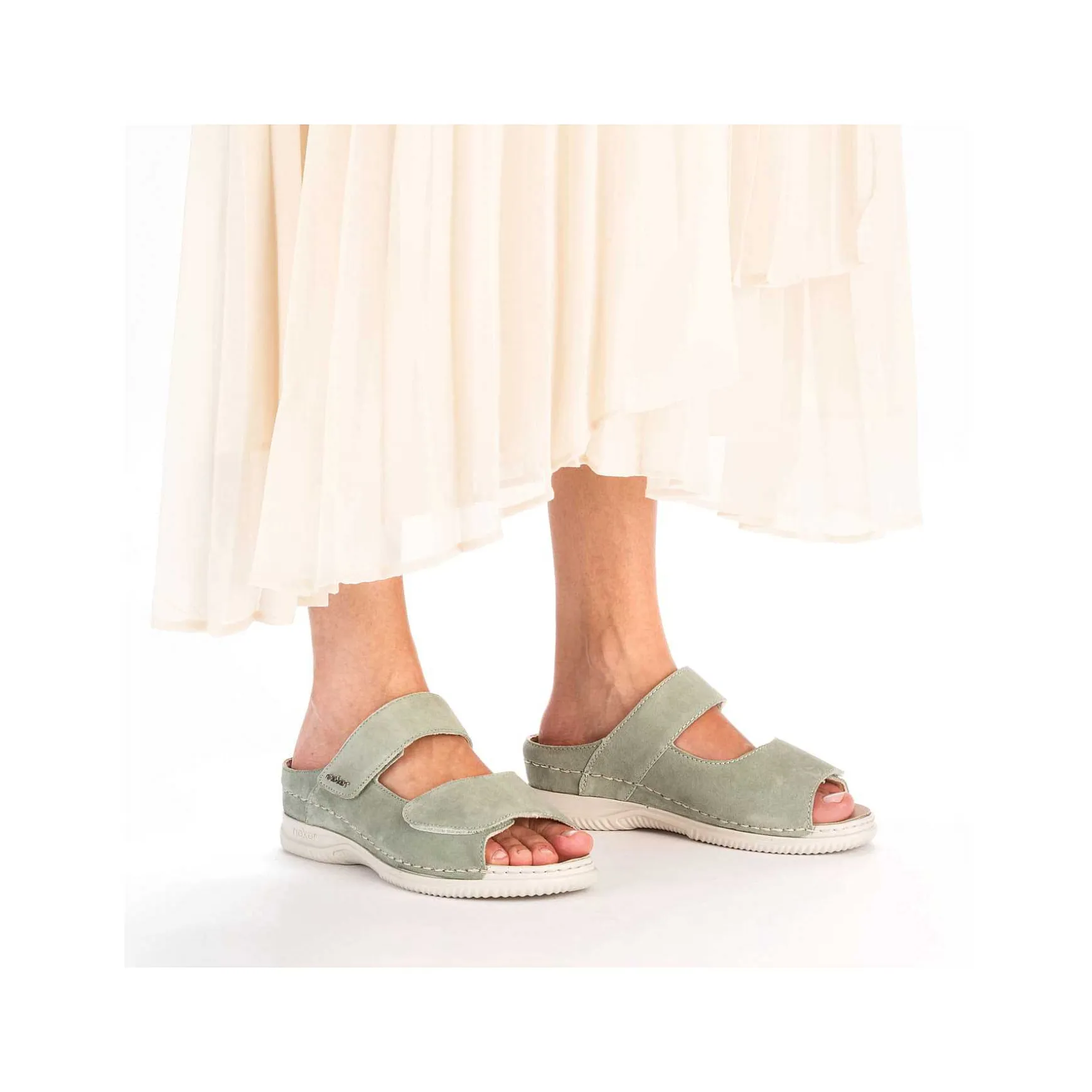 They Follow You Every Step Of The Way! These Rieker Mules For Women In Light Green Made Of Suede Leather Are Guaranteed To Get You In The Holiday Mood. The Velcro Fastener Allows For Easy Entry And Keeps The Shoe Perfectly On The Foot. The Removable Footbed Together With The Shock-Absorbing And Lightweight Sole Offers Lasting Comfort. A Feel-Good Factor On Top Is The Extra Width H, Which Offers More Space In The Shoe. More Is Not Possible!
