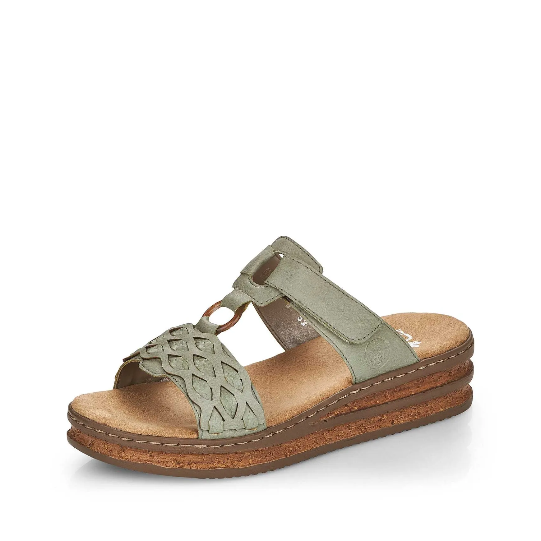 Pure Summer Feeling! These Mint Green Rieker Mules For Women Impress With A Classic Design And High Comfort. The Velcro Fastener Allows For Quick Entry And Keeps The Shoe Ideally On The Foot. The Open Shoe As Well As The Shock-Absorbing And Lightweight Sole With Wedge Heel Ensure A Lasting Feeling Of Well-Being. In Addition, The Extra Soft Insole Ensures An Extra Portion Of Comfort. Thanks To The Narrow E 1/2 Fit, The Shoe Sits Comfortably Tight Without Causing Any Pressure. All In One – Great!