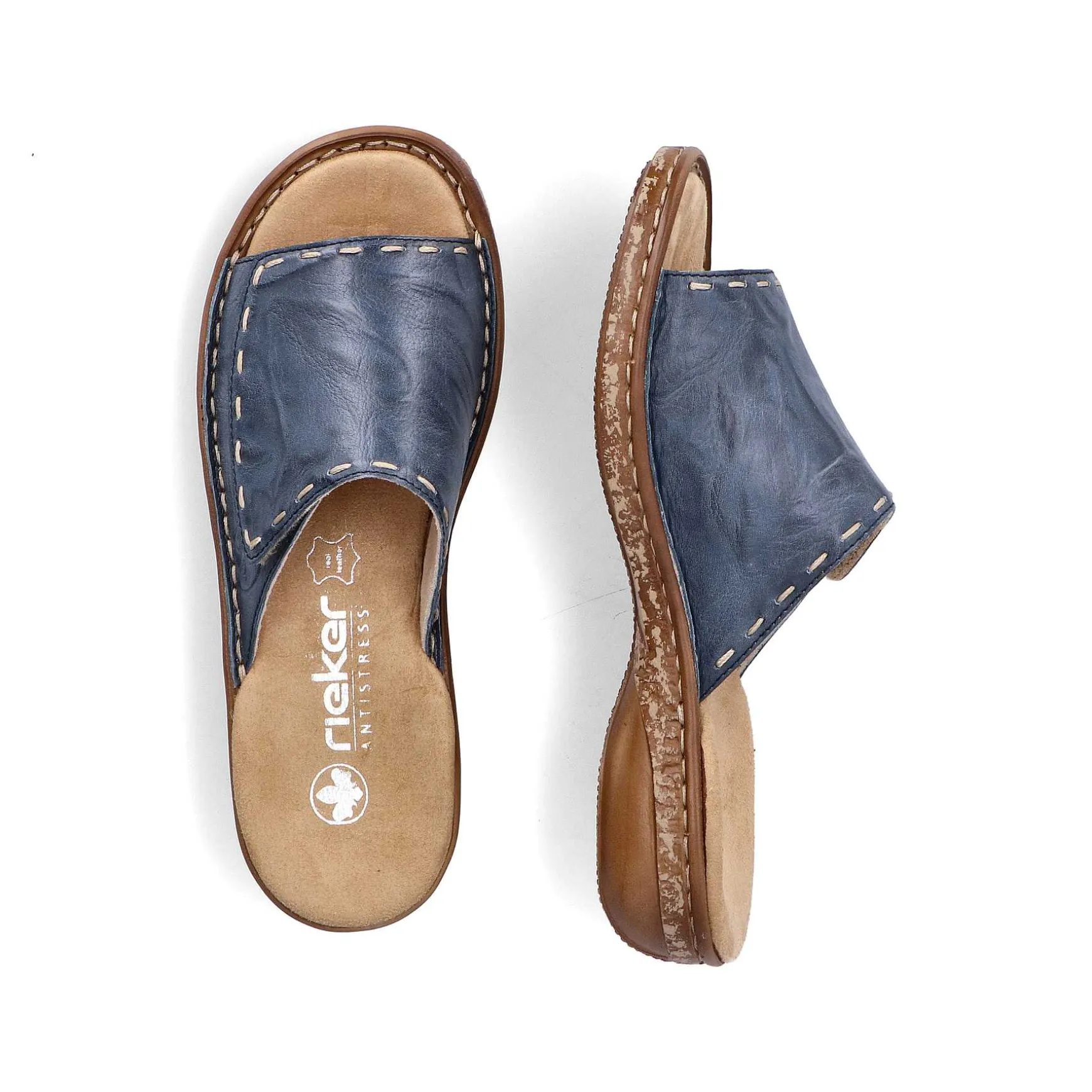Summer Love! These Slate Blue Rieker Mules For Women Made From Smooth Leather Are Perfect For Every Day. The Velcro Fastener Allows For Quick Entry And Keeps The Shoe Optimally On The Foot. The Decorative Seams Perfectly Round Off The Modern Design. The Shock-Absorbing And Lightweight Sole Of The Mules Offers The Best Walking Comfort. Thanks To The Narrow E 1/2 Fit, The Shoe Fits Like A Glove. Slip In And Feel Good!