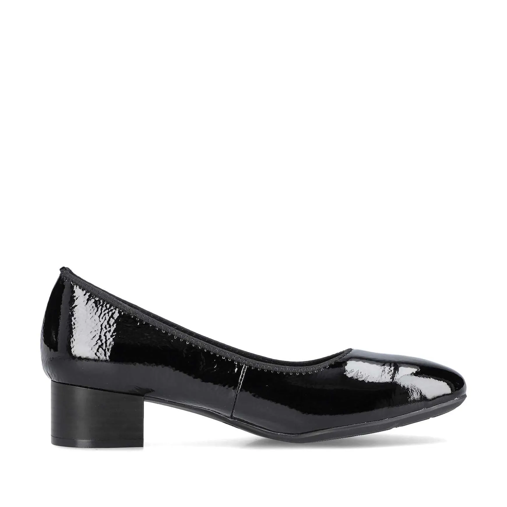 Attention Fashion Lovers: The Rieker Must-Haves Are Here! These Shiny Black Pumps Made Of Patent Leather From Rieker Combine A Cool Design With The Best Comfort And High Functionality. The Model Has No Closure And Can Be Put On In No Time. The Robust Profile Sole With Block Heel Provides Good Grip At Every Turn. The Shoe Has A Soft And Particularly Breathable Leather Insole, Which Is An Impressive Comfort Feature. The Shoe Is Equipped With A Flexible Leather Lining. Pure Carrying Luxury!