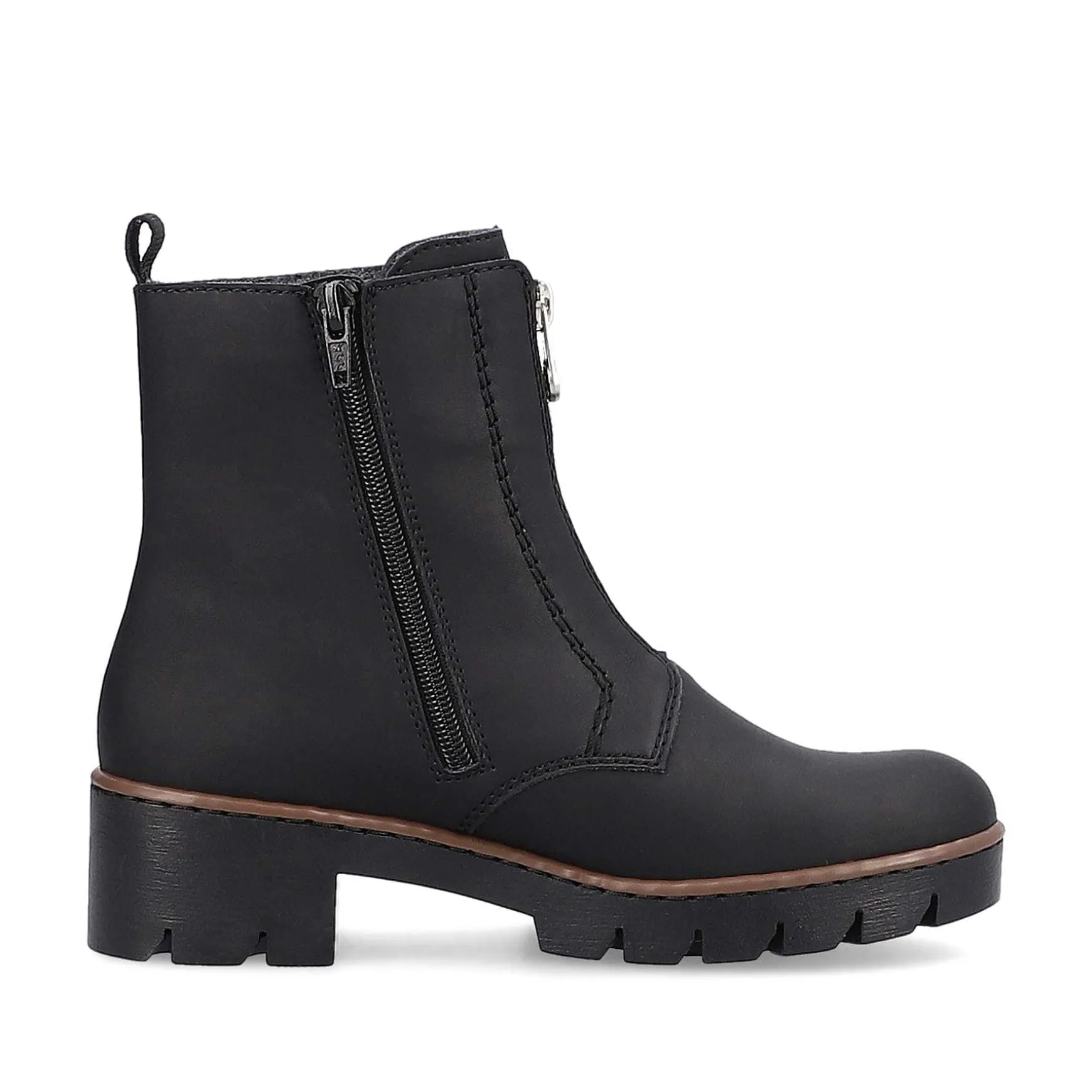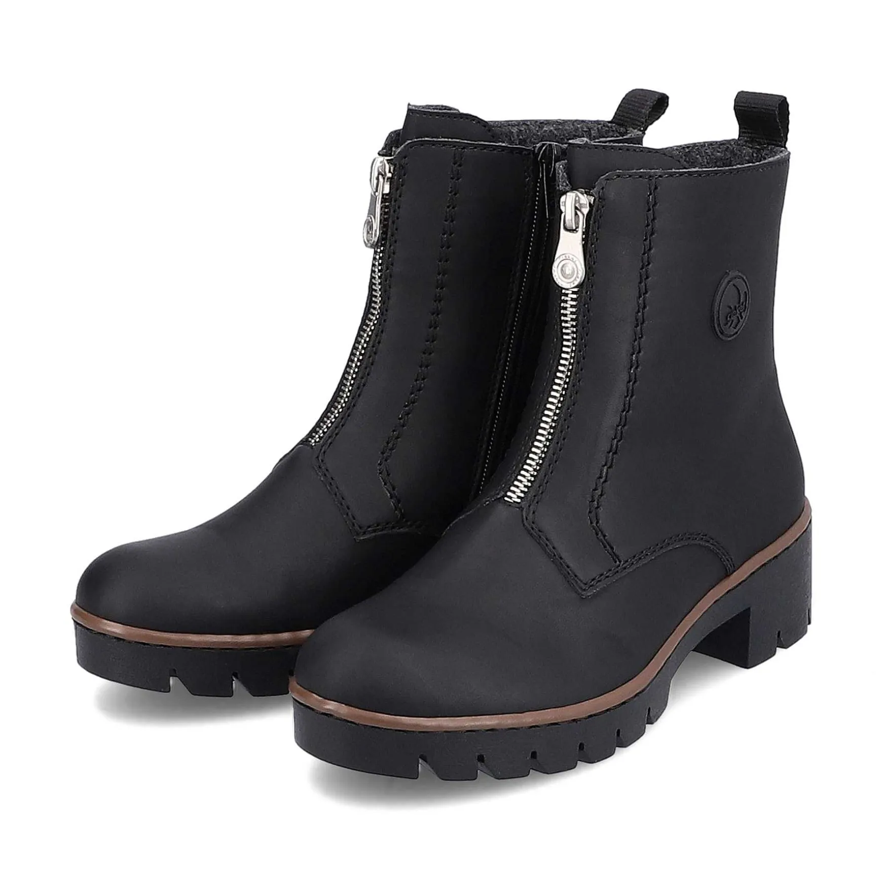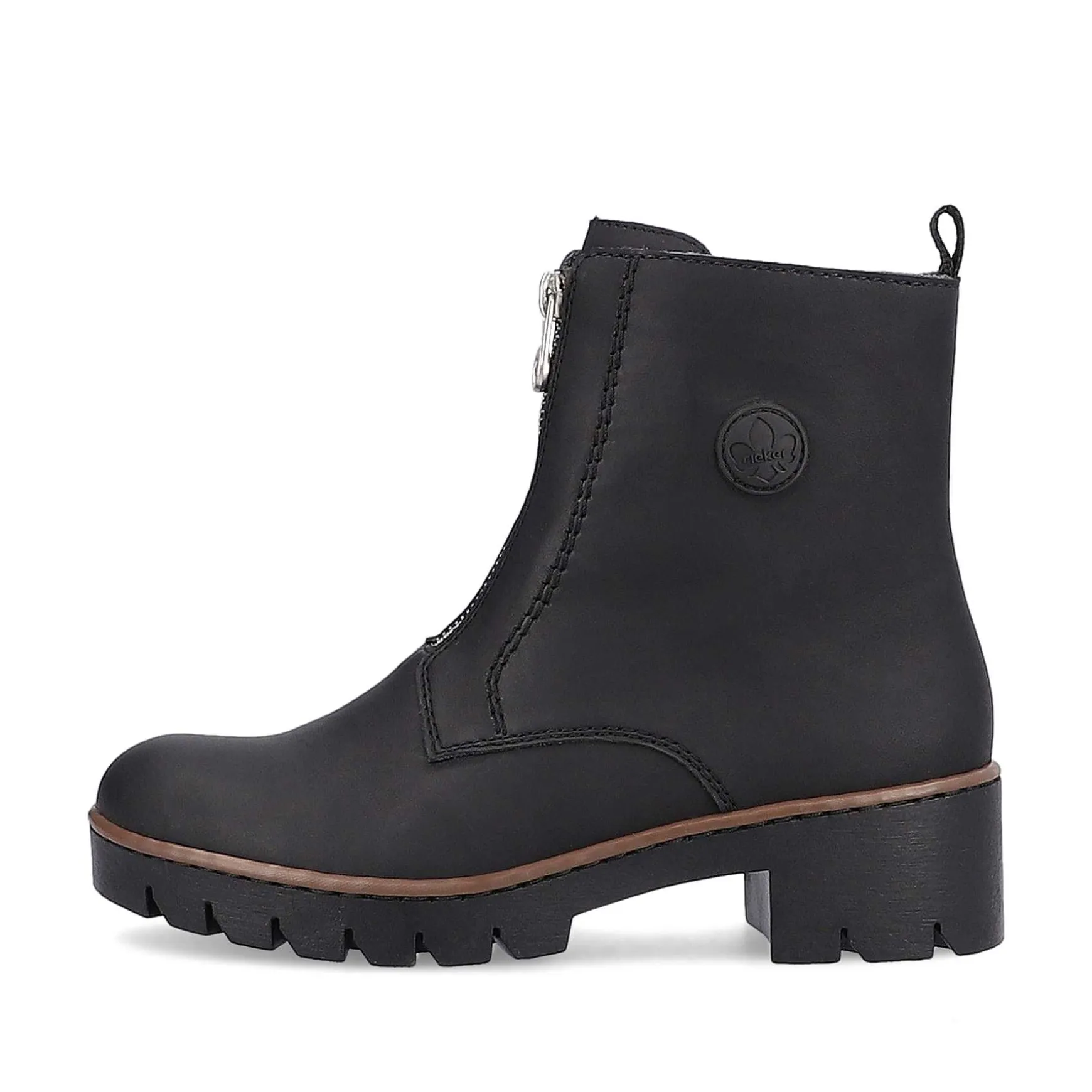 All-Time Favorite! These Deep Black Short Boots From Rieker Impress With Their Modern Design And High Level Of Comfort. The Shoe Can Be Put On Very Quickly Thanks To The Zipper. The Robust Profile Sole With Block Heel Provides Support On Different Paths. In Addition, The Extra Soft Insole Ensures An Extra Portion Of Comfort. What More Do You Want?