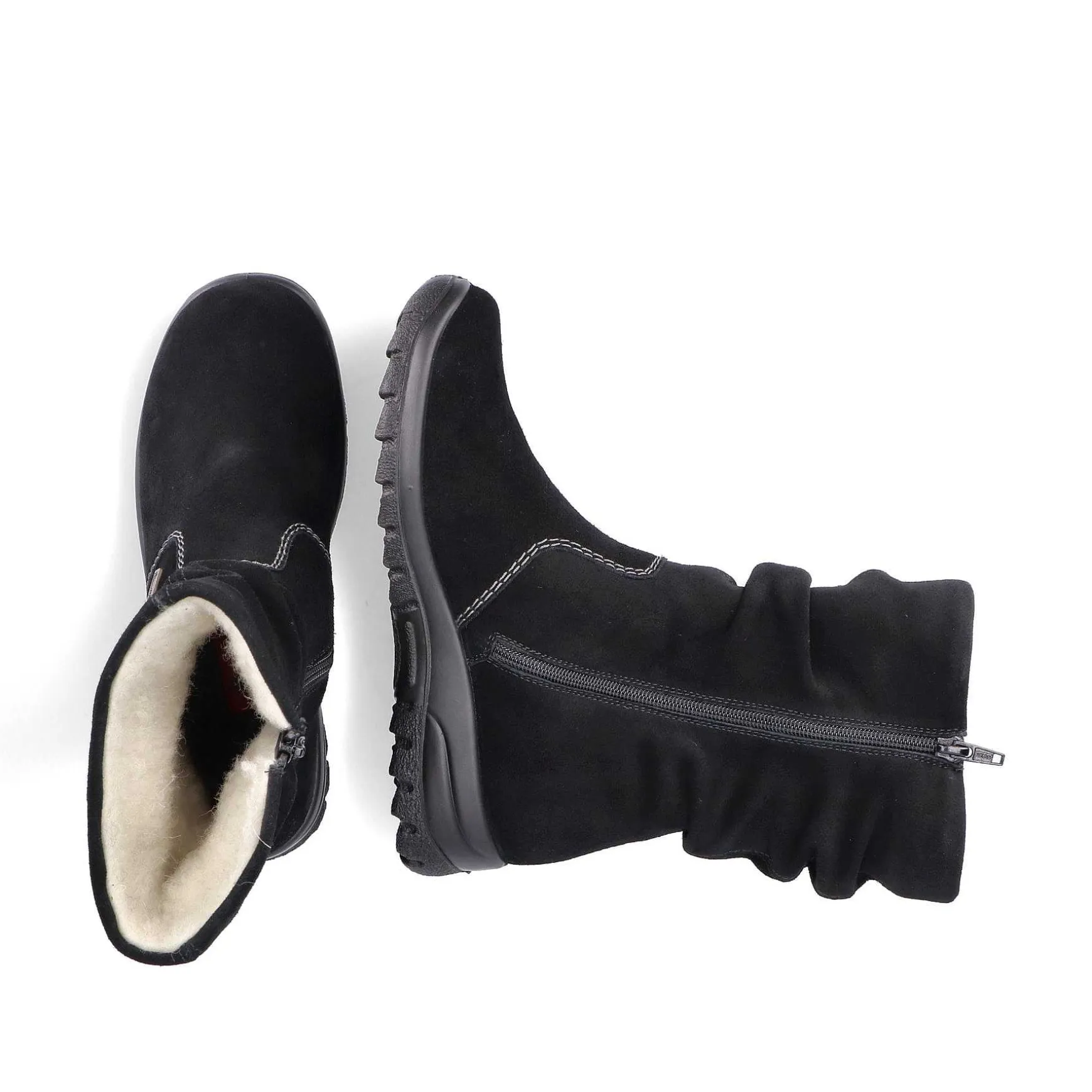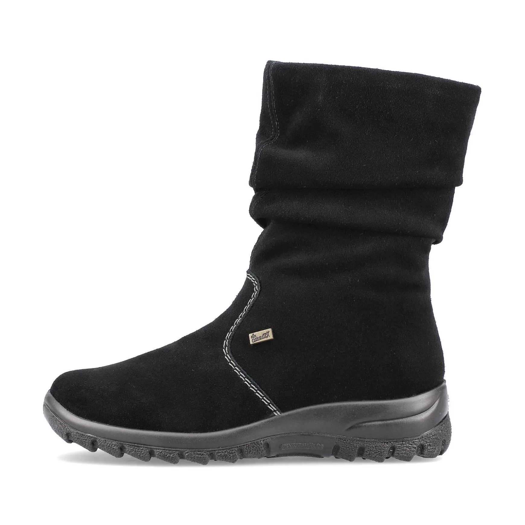 Stylish Throughout The Season! These Deep Black Short Boots Made Of Suede Leather From Rieker Impress With Their Modern Design And High Level Of Comfort. The Side Zipper Makes It Easy To Put On And Take Off. The Light And Shock-Absorbing Sole Offers The Best Walking Comfort. The Combination Of Water-Repellent Riekertex Technology And Cozy And Very Warm Virgin Wool Lining Ensures Warm And Dry Feet In Any Weather. Here The Cold Goes Empty.