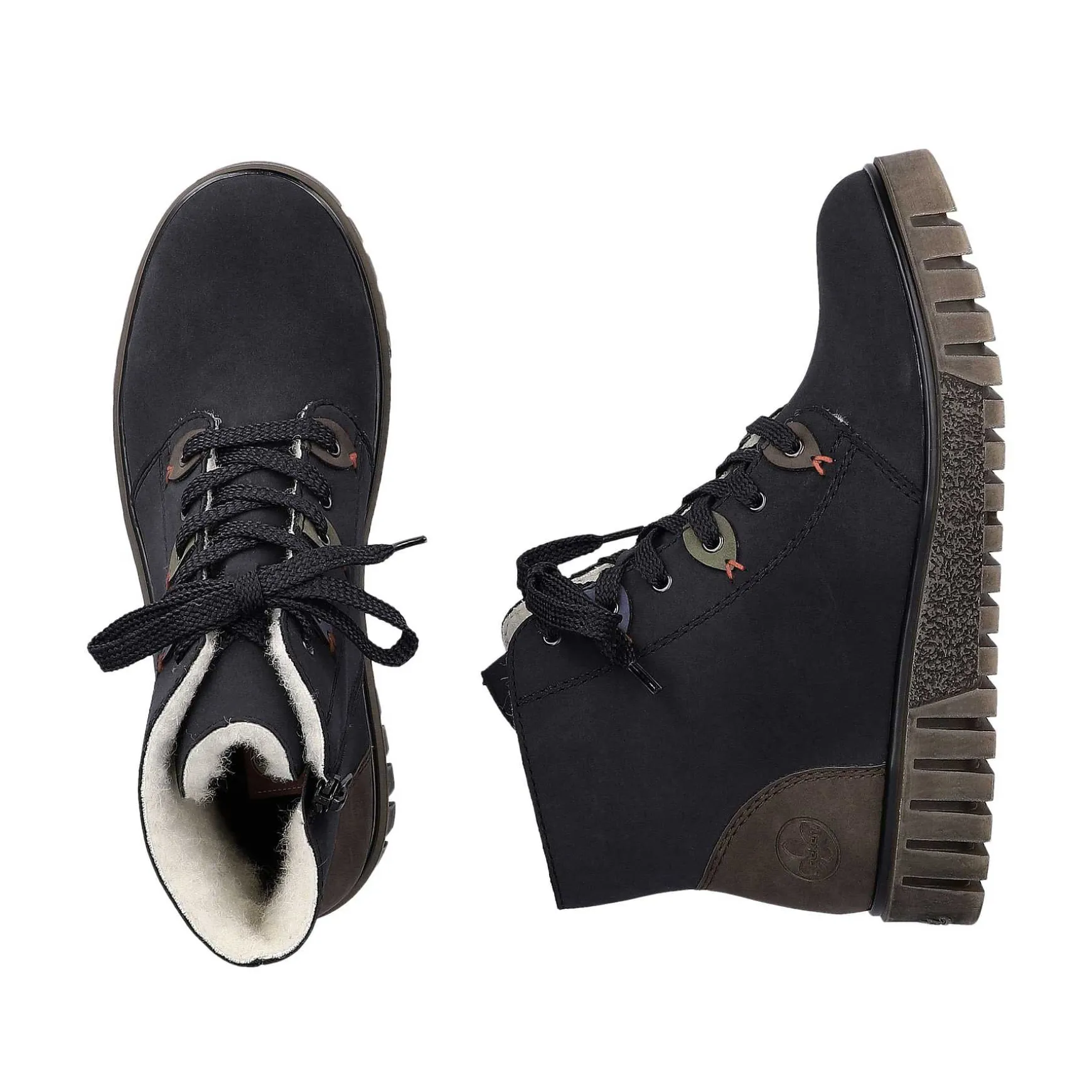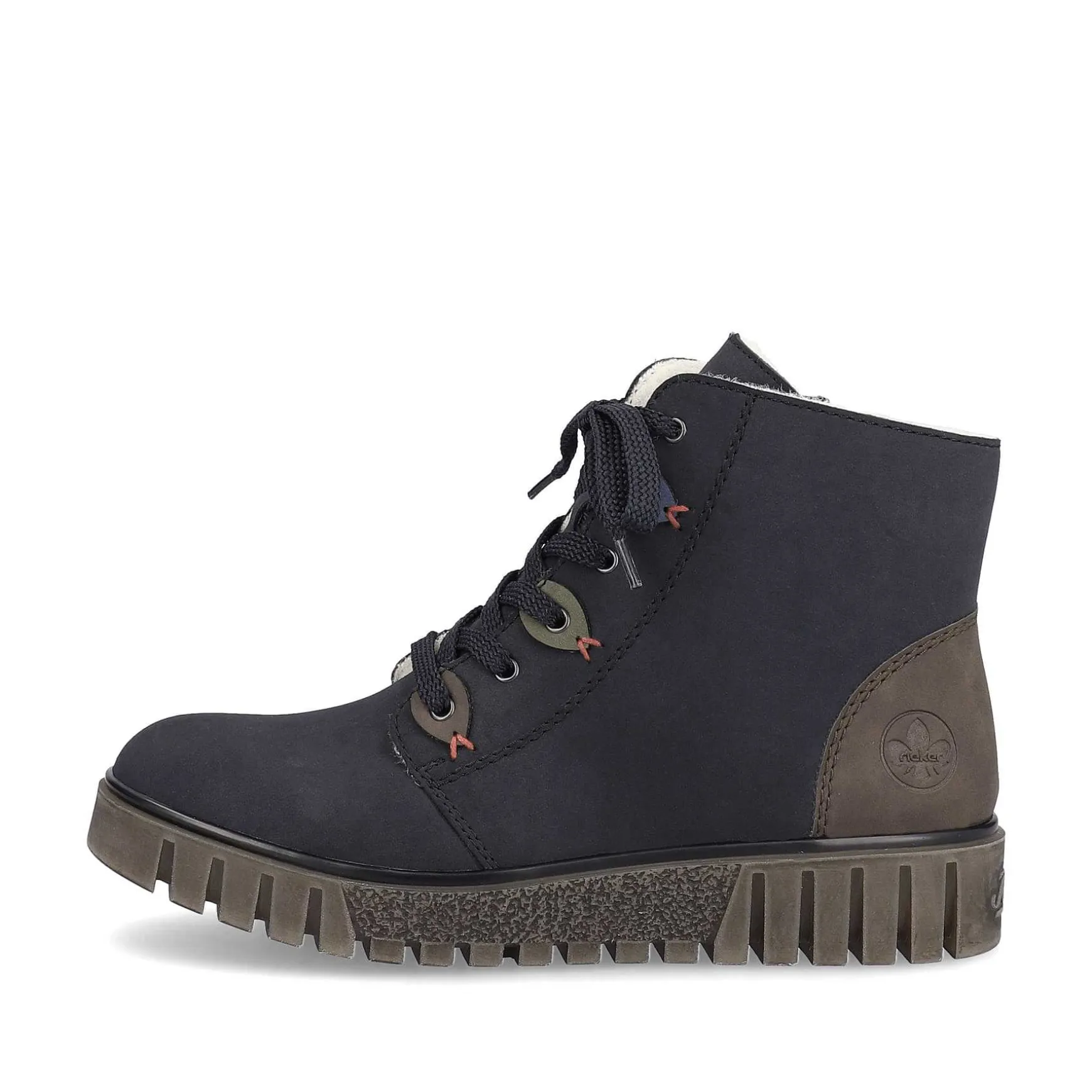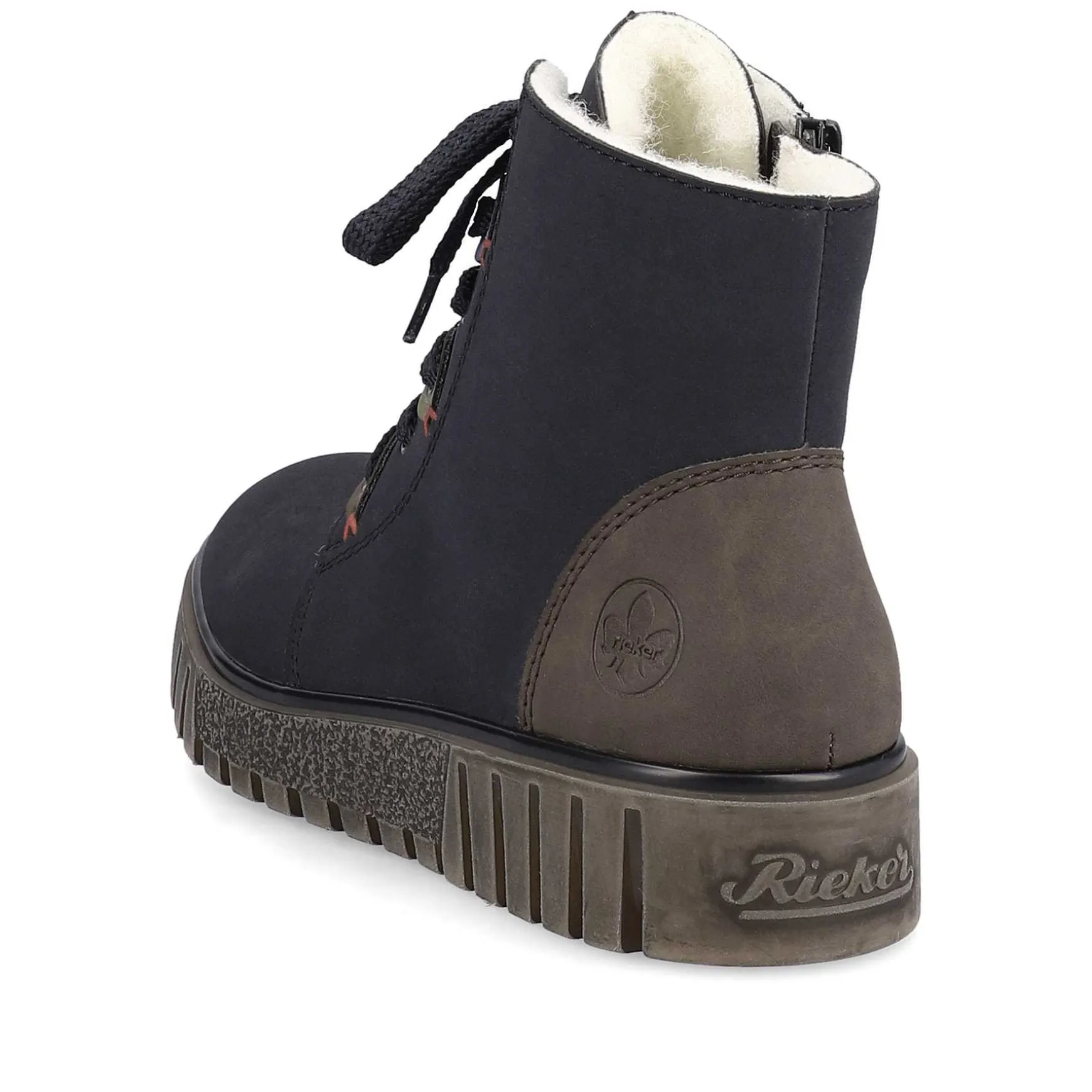 Easy Walking, Easy Living! These Pacific Blue Rieker Short Boots For Women Not Only Look Super Trendy, They Also Protect Your Feet From The Cold. The Lacing Is Complemented By A Zipper, Guaranteeing Ideal Support And A Perfect Fit. The Robust Profile Sole Impresses Across The Board. The Narrow E 1/2 Fit Provides Additional Support. Particularly Cozy And Very Warm Virgin Wool Makes These Lace-Up Boots The Ideal Companion In Any Weather. The Boots Are Ideal Everyday Companions!