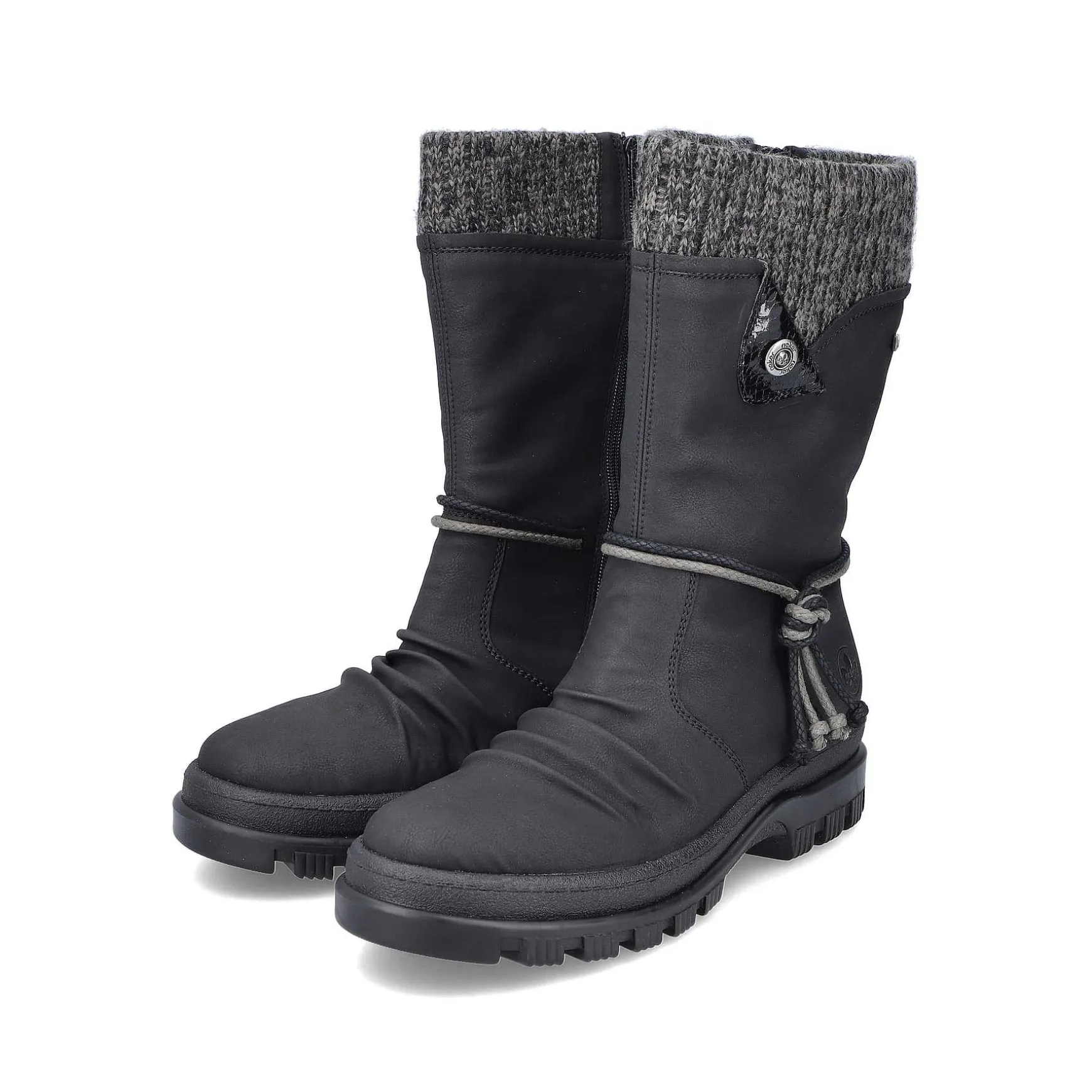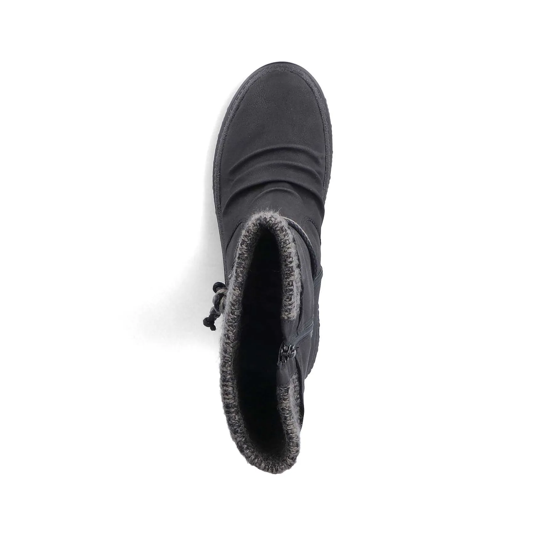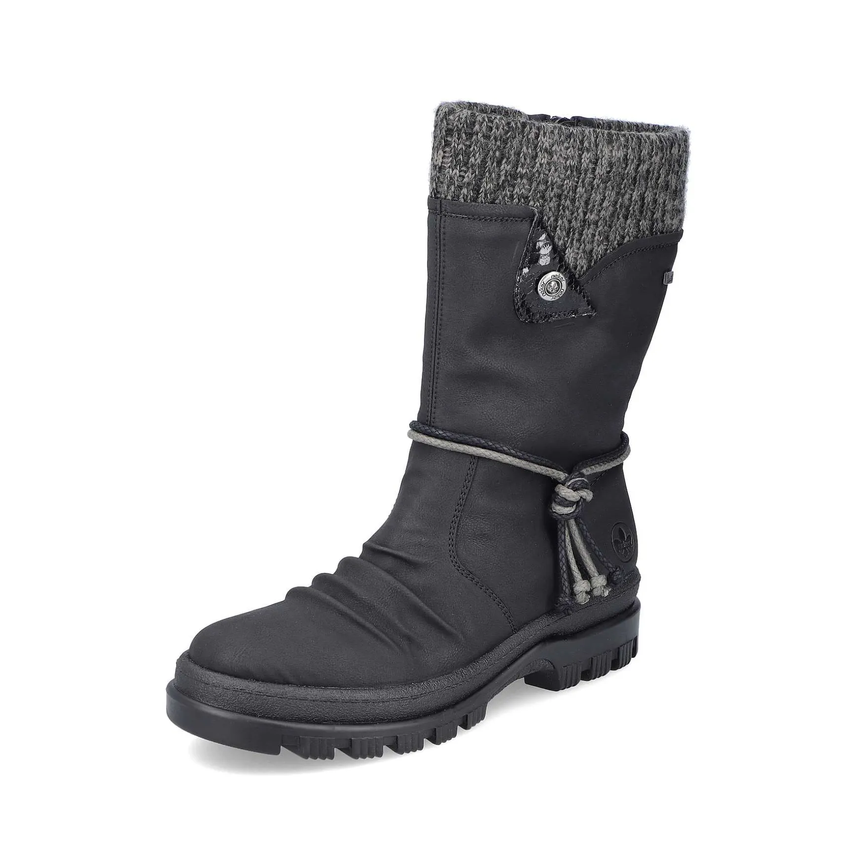 Wow Factor! With These Midnight Black Short Boots, Freezing Is A Foreign Word. The Side Zipper Makes It Easy To Put On And Take Off. The Decorative Black Band On The Side Harmoniously Rounds Off The Look Of The Shoe. The Shoe Has A Robust Profile Sole That Impresses With Good Grip For A Safe Step. The Removable Insole Ensures Maximum Comfort. Thanks To The Water-Repellent Riekertex Membrane And The Fold-Out Spikes Of The Flip-Grip Technology, The Shoe Is The Perfect Companion Even In Wet And Icy Conditions. The Warm Lining Is Super Soft And Gives The Cold No Chance. Feeling Good For Your Feet – With Rieker!