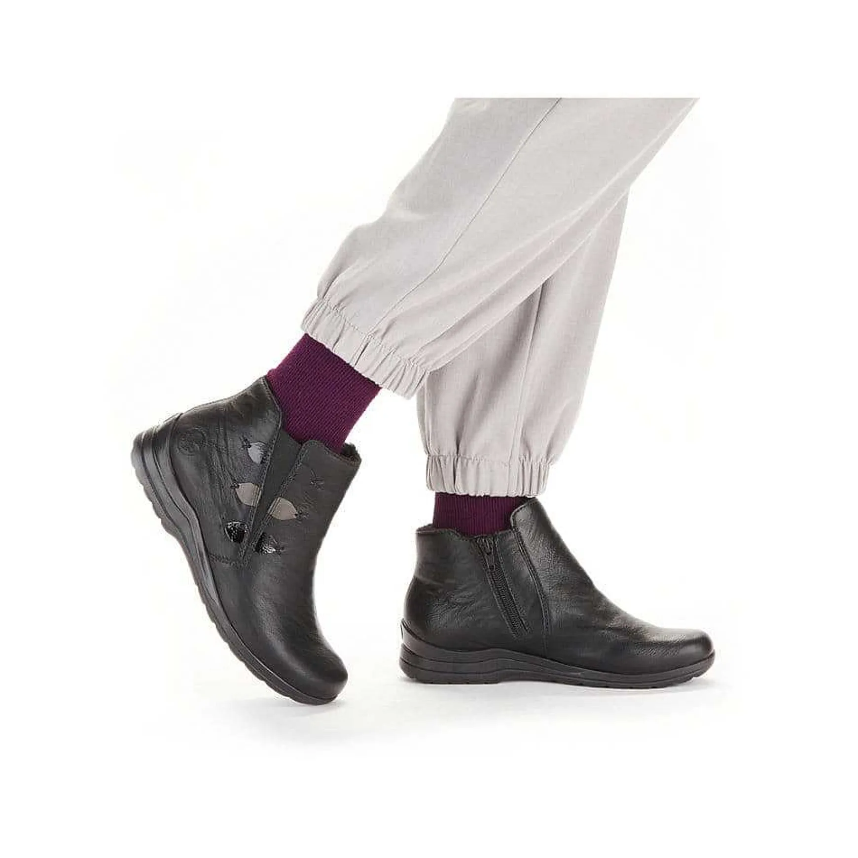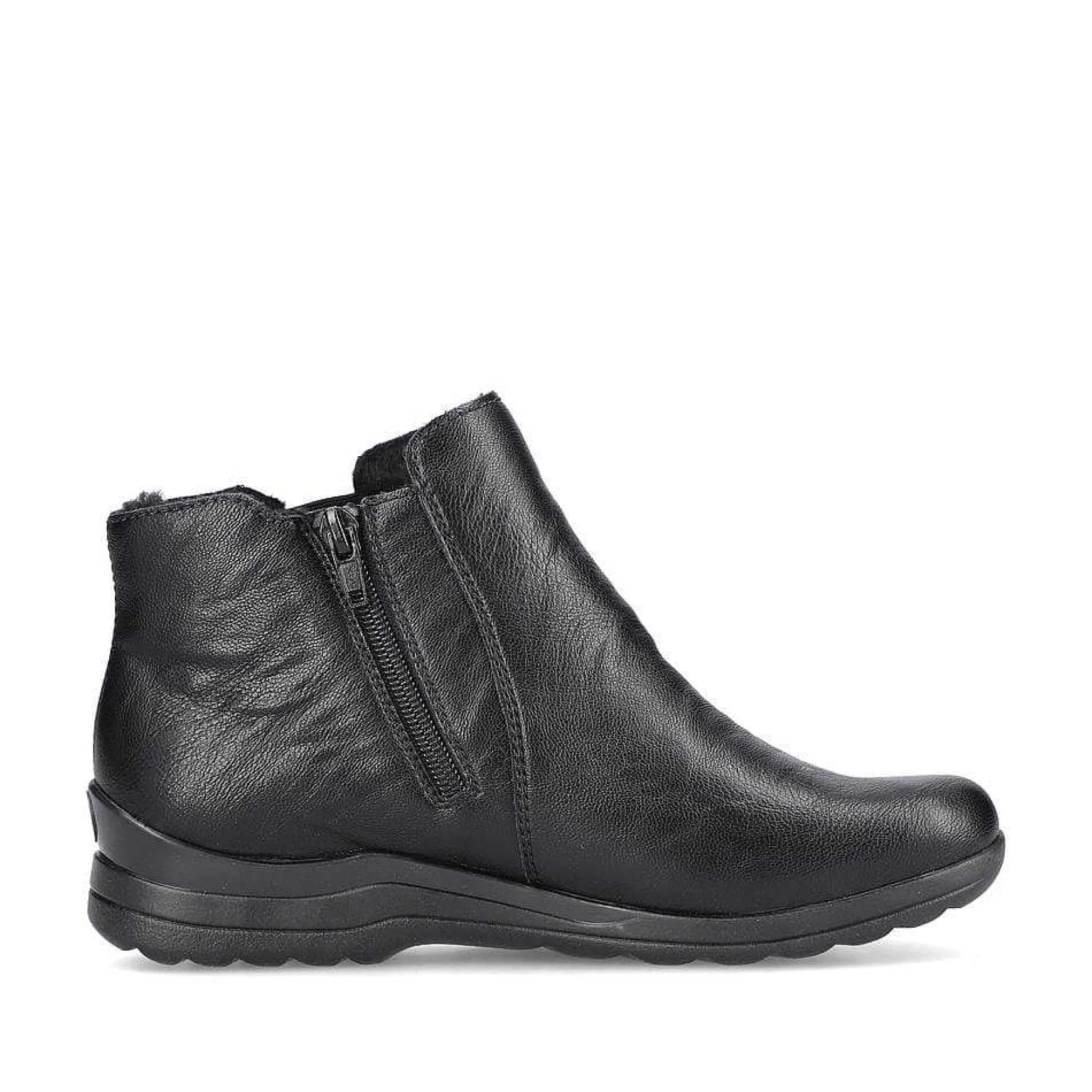 Keep It Classy! These Shiny Black Rieker Slippers For Women With An Ankle-High Shaft Get A Style Upgrade With The Black Sole. The Zipper Together With The Elastic Insert Make It Easy To Put On And Take Off. The Robust And Light Profile Sole With A Small Heel Provides Support On Different Paths. In Addition, The Extra Width H Gives Your Feet More Freedom Of Movement In The Forefoot Area. Soft Warm Lining Makes These Slippers The Ideal Companion In Any Weather. Just Slip On And Feel Good.
