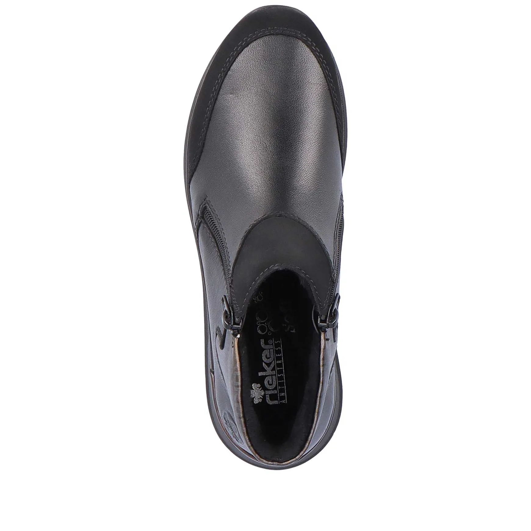 Comfort Meets Style. These Deep Black Slippers Made Of Smooth Leather Are A Comfortable Companion. The Side Zip Allows You To Put It On And Take It Off Quickly. The Shock-Absorbing And Lightweight Sole Pampers Your Feet With Every Step. The Padded And Removable Insole Provides Comfort And Functionality For Every Day. Thanks To The Extra Width, The Foot Not Only Has Enough Space In The Forefoot Area, The Shoe Is Also Available In Oversizes. Fashionable Well-Being In The Style Of Rieker!