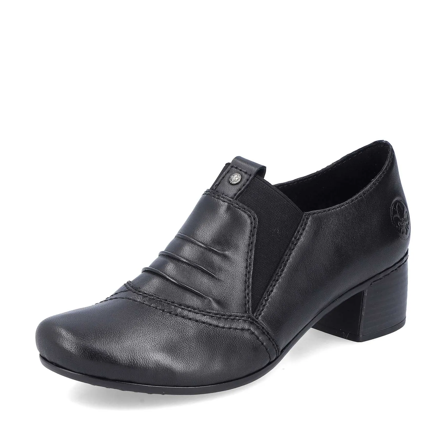 We Love Black! These Deep Black Slippers Made Of Smooth Leather From Rieker Have Been Elaborately Crafted. The Elastic Insert Also Ensures That The Shoe Stays In Place At All Times. The Light And Shock-Absorbing Sole With Block Heel Pampers Your Feet With Every Step. Thanks To The Soft And Particularly Breathable Leather Insole, The Best Comfort And Sophisticated Functionality Are Guaranteed. Attention, Favorite Shoe Potential!