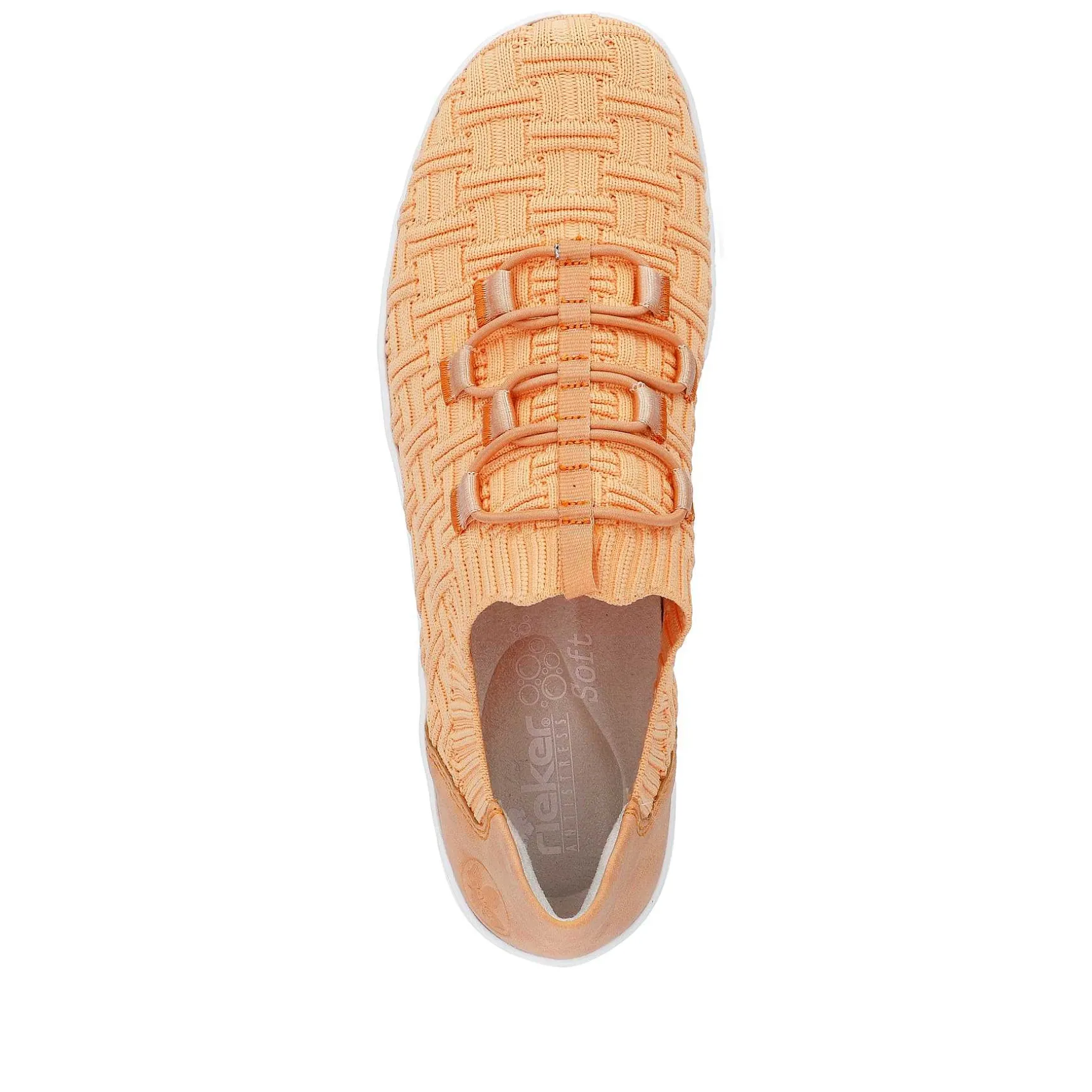 These Sport & Style Rieker Slippers For Women In Orange Are Made Of High-Quality Textile And Have A Simple, Elastic Entry. The Outsole Is Super Light, Extremely Flexible And Cushions Every Step, While The Insole Is Padded And Removable. The Slim Fit Guarantees A Perfect Fit.