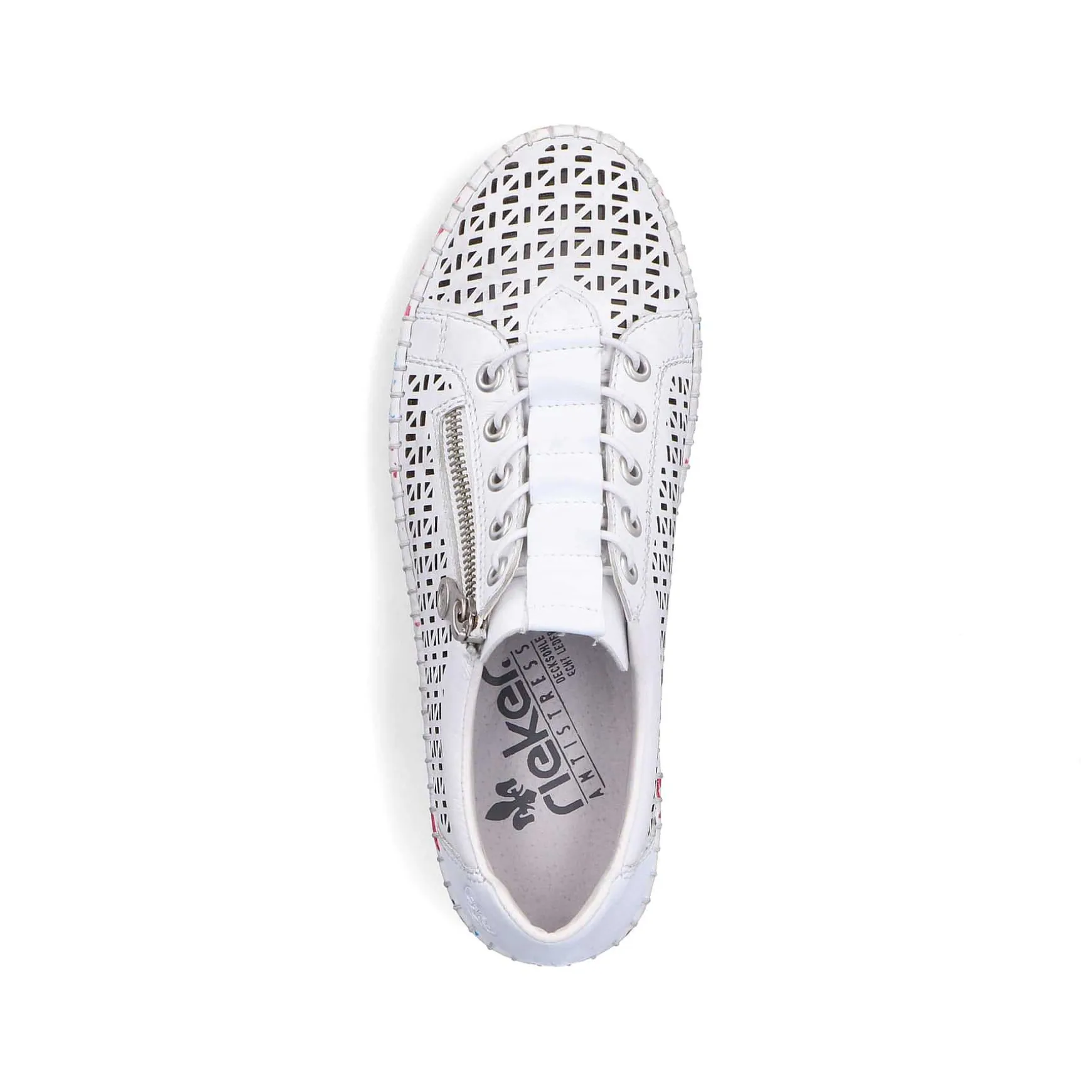 Introducing Your New Favorite Shoe! These Old White Rieker Slippers For Women Made Of Smooth Leather Are A Comfortable Companion. The Clever Combination Of Zipper And Lacing Makes It Easy To Put On And Take Off. The Multicolored Pattern On The Sole Skilfully Refreshes The Design. The Non-Slip Sole Provides The Best Possible Grip At Every Turn. The Cover Sole Is Also Extra Soft. The Model Is Particularly Light, Flexible And Breathable, Which Makes Running Almost Feel Like Barefoot! Your Best Buddies For The New Season!