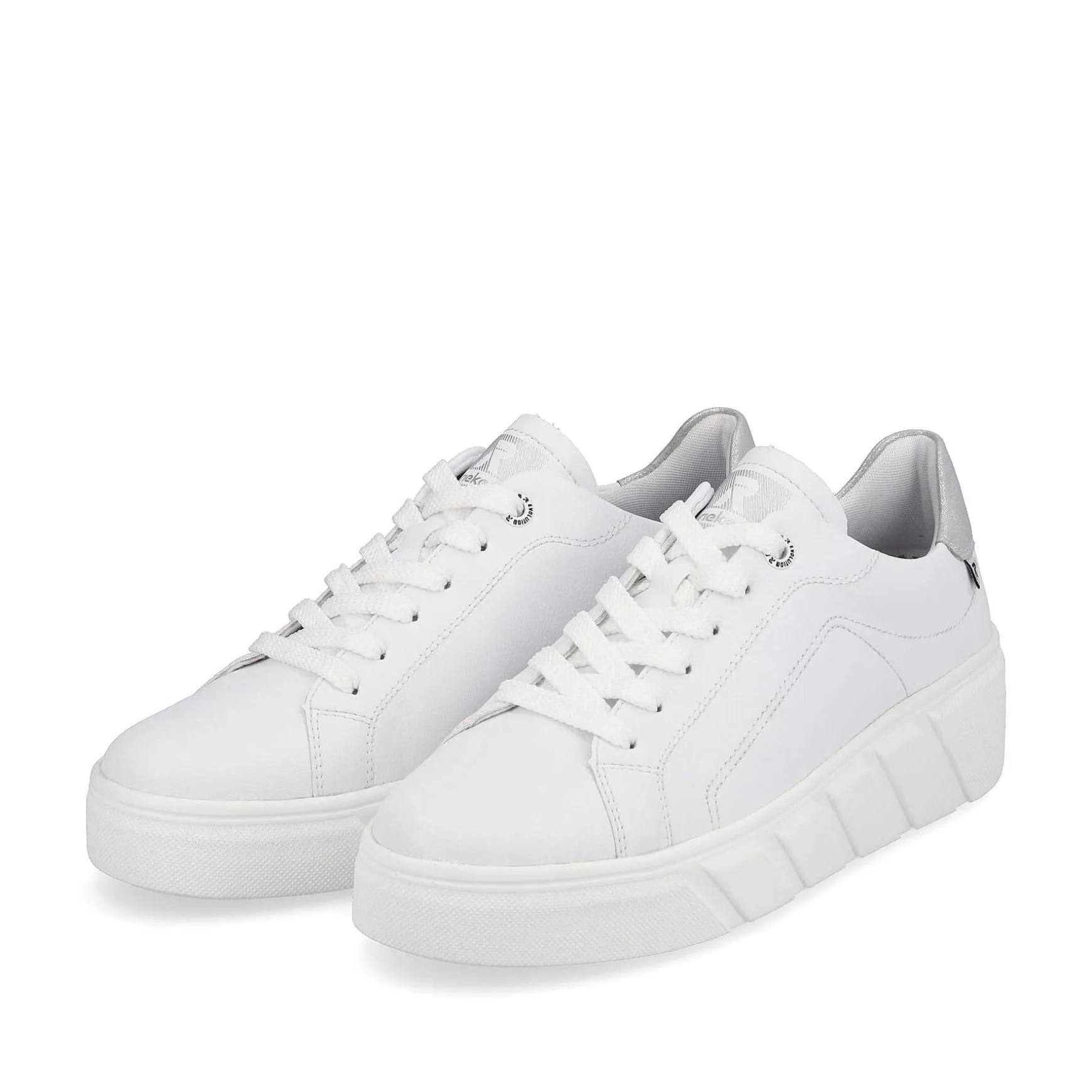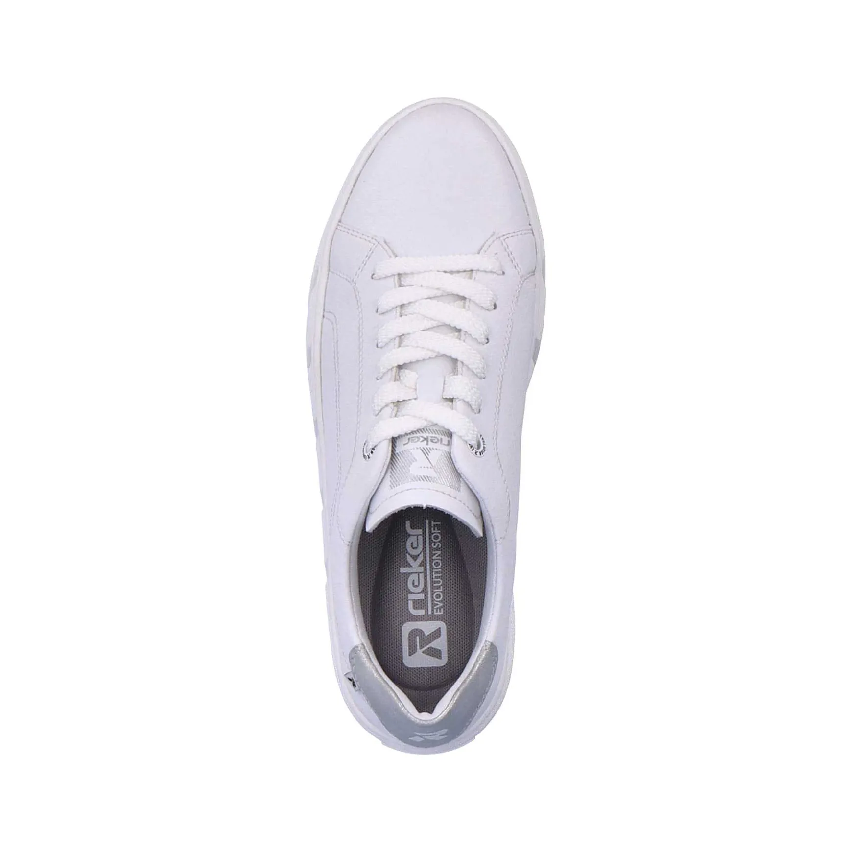 These White Sport & Style Rieker Sneakers Low For Women Are Made From High-Quality Smooth Leather. The Ultralight, Cushioning Light Pu Sole, Together With The Removable, Soft Insole, Guarantees Sporty Street Style Performance.