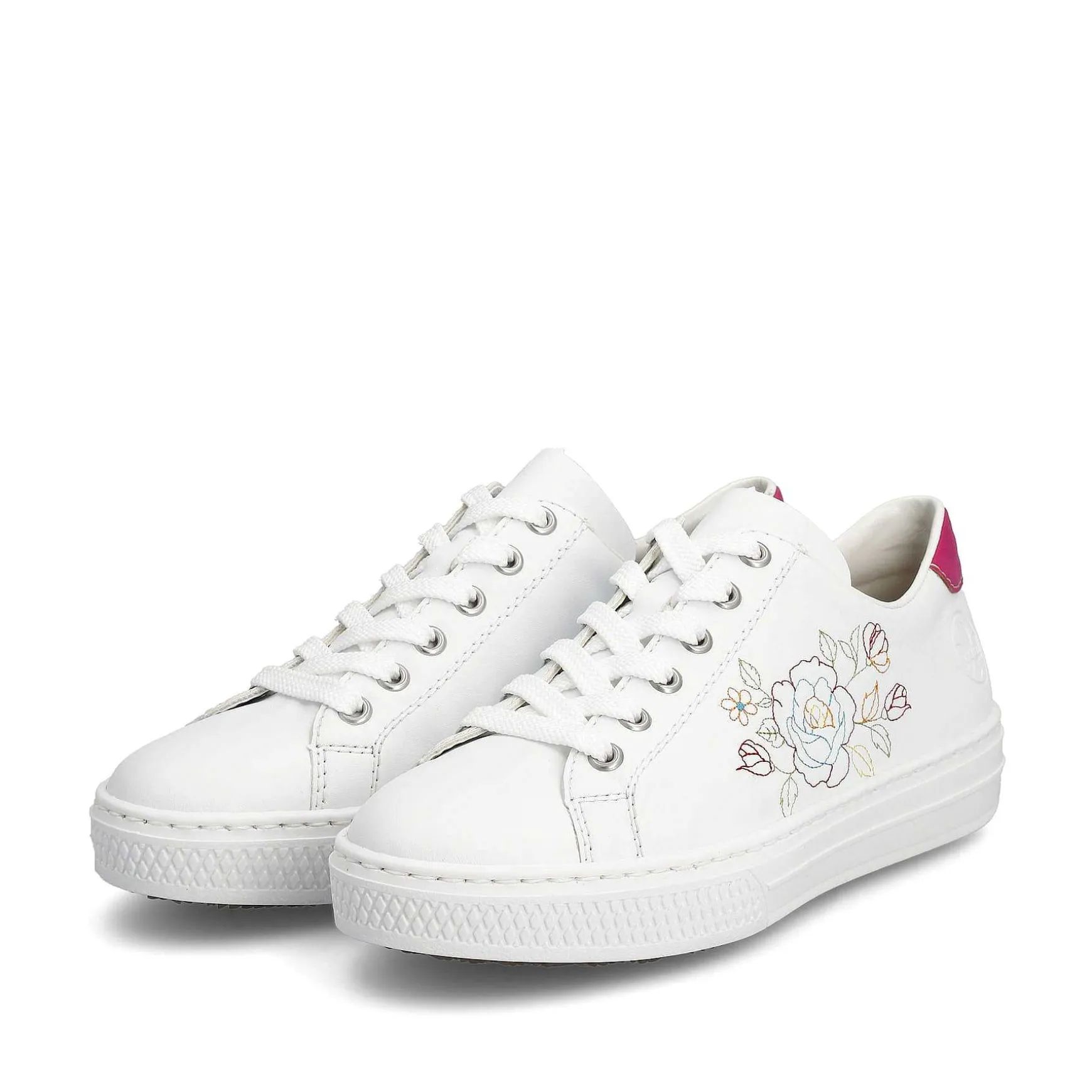 This Is The Pinnacle Of Comfort! These Crystal White Rieker Sneakers Low For Women Are A Comfortable Companion. The Lacing Ensures That The Shoe Always Fits Well. The Floral Pattern On The Side Is A Beautiful Eye-Catcher. The Sole Is Easy To Grip And Ensures Good Grip At All Times. On Top Of That, The Extra Soft Memosoft Insole Ensures An Extra Dose Of Comfort. Feeling Good For Your Feet – With Rieker!