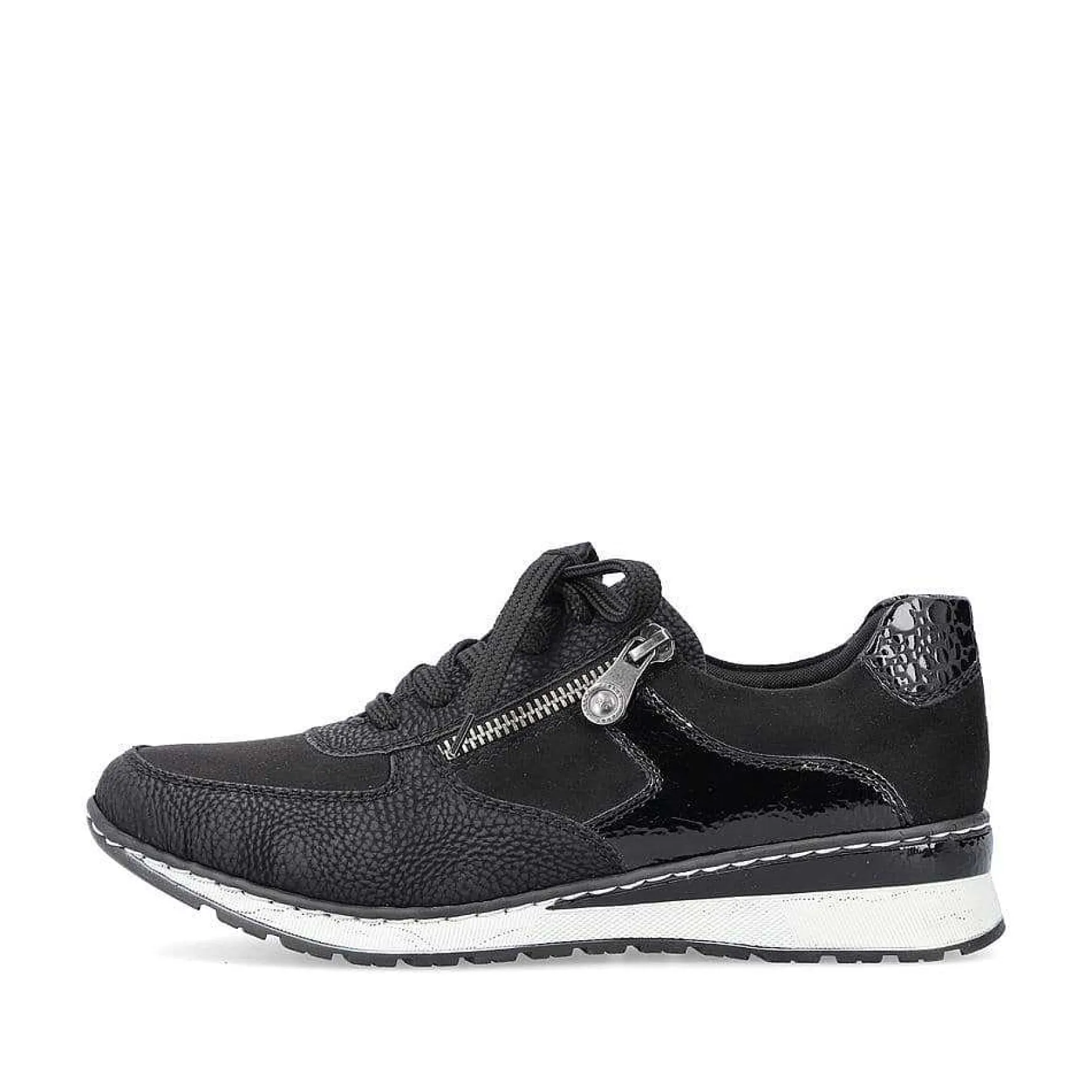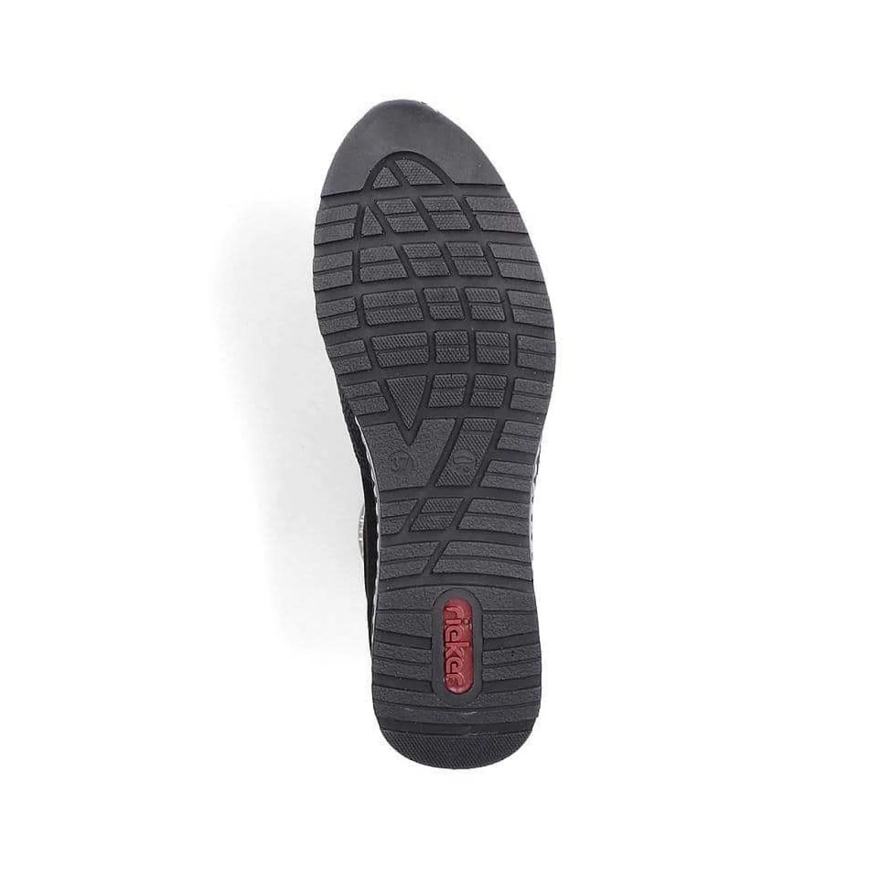 This Is The Pinnacle Of Comfort! These Deep Black Rieker Sneakers Low For Women Are The Perfect Companion For Every Occasion. The Clever Combination Of Lacing And Zipper Guarantees A Perfect Fit And The Best Possible Hold. The Shock-Absorbing And Lightweight Sole With Wedge Heel Ensures A Comfortable Fit. Thanks To The Padded And Removable Insole, The Best Comfort And Sophisticated Functionality Are Guaranteed. Feeling Good For Your Feet – With Rieker!