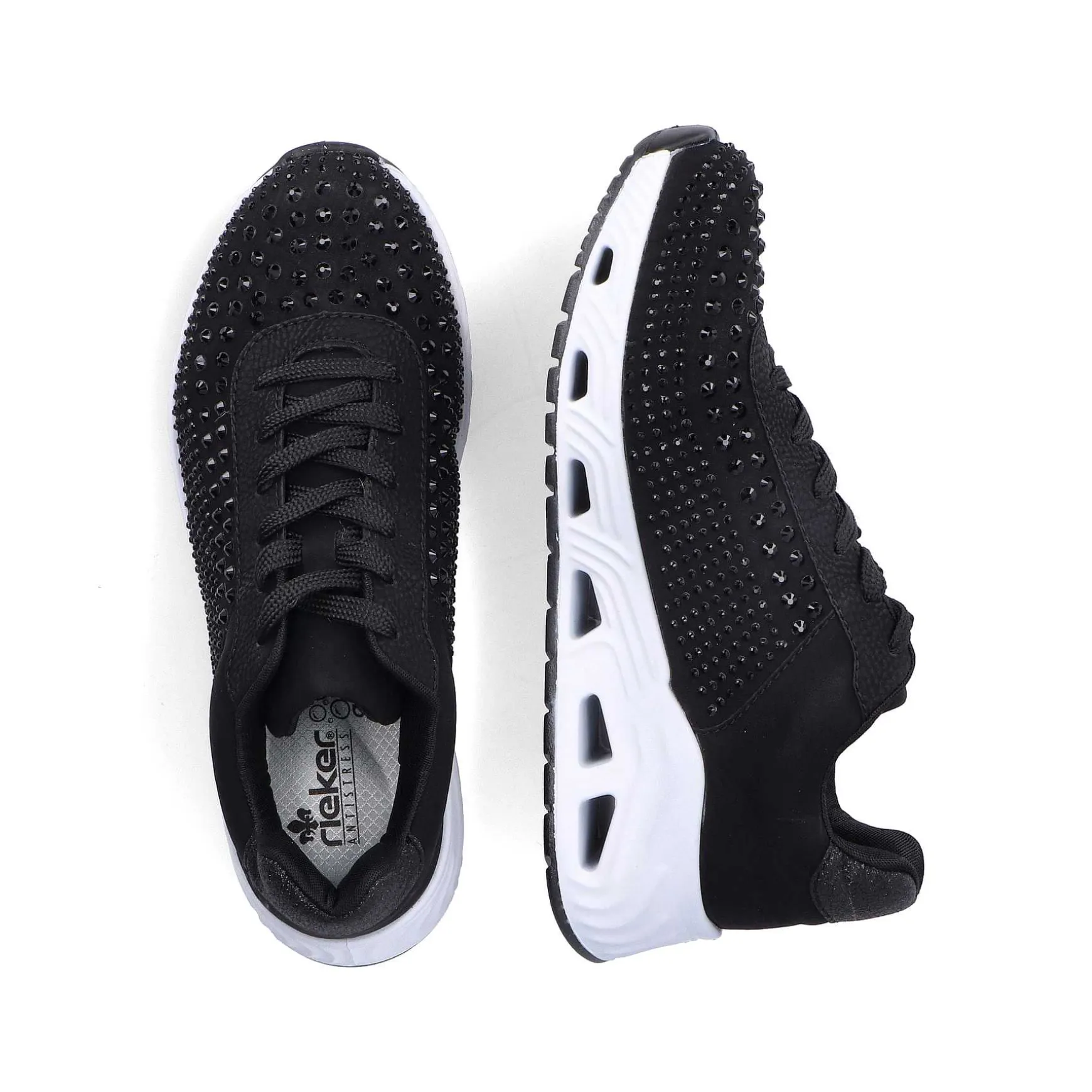 These Casual Sport & Style Rieker Sneakers For Women In Black Are Made Of High-Quality Faux Leather. The Comfort Width Guarantees A Perfect Fit. The Ultralight, Flexible Eva Outsole Ensures Speed And Agility. The Removable Insole Is Padded And Perfectly Cushions Every Step.