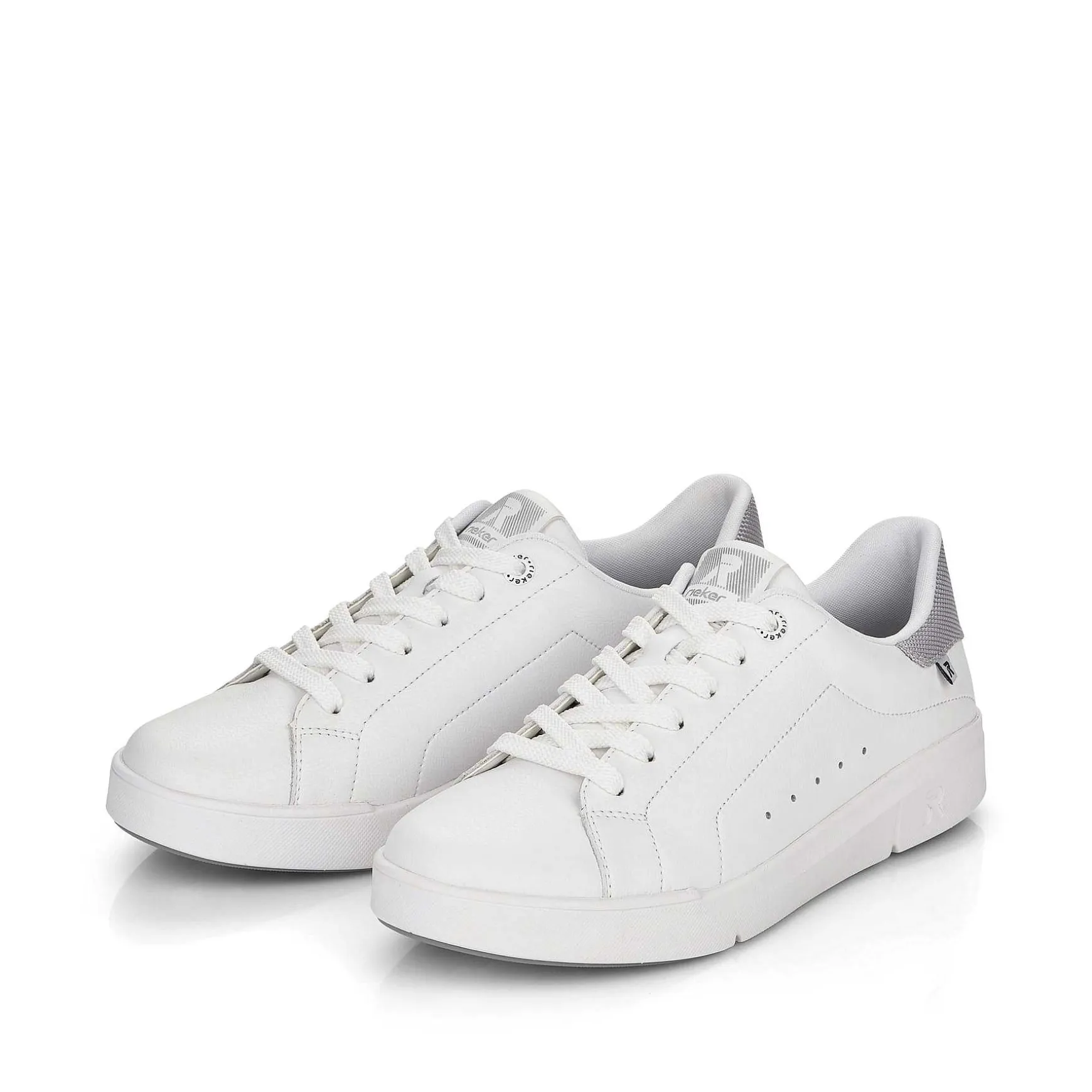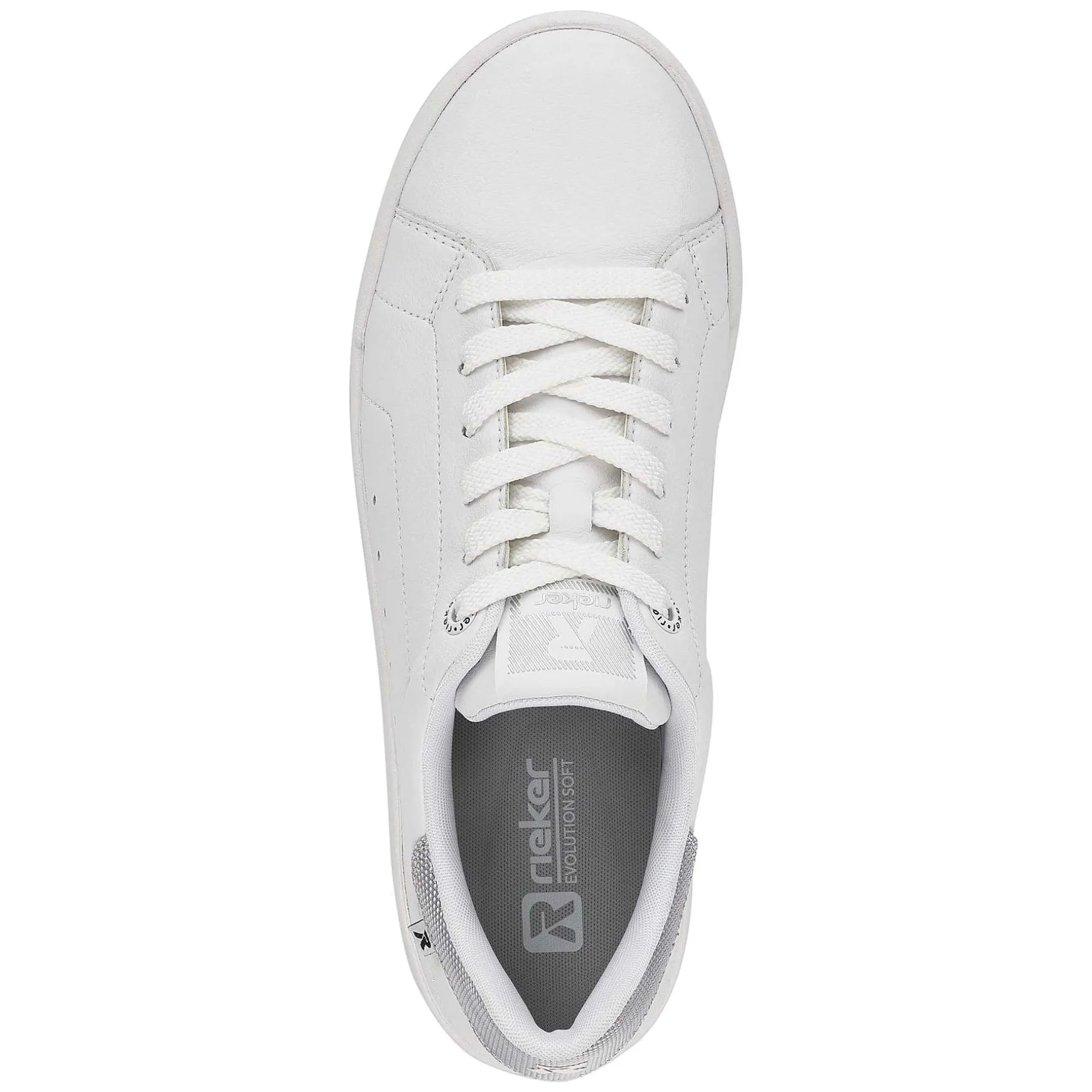 With This Classy White Sport & Style Rieker Sneaker Low For Women Made Of High-Quality Smooth Leather, Sporty Performance Is The Order Of The Day! The Eva/Rubber Outsole Is Super Light And Flexible And The Padded, Removable Insole Provides Maximum Cushioning For Every Step.