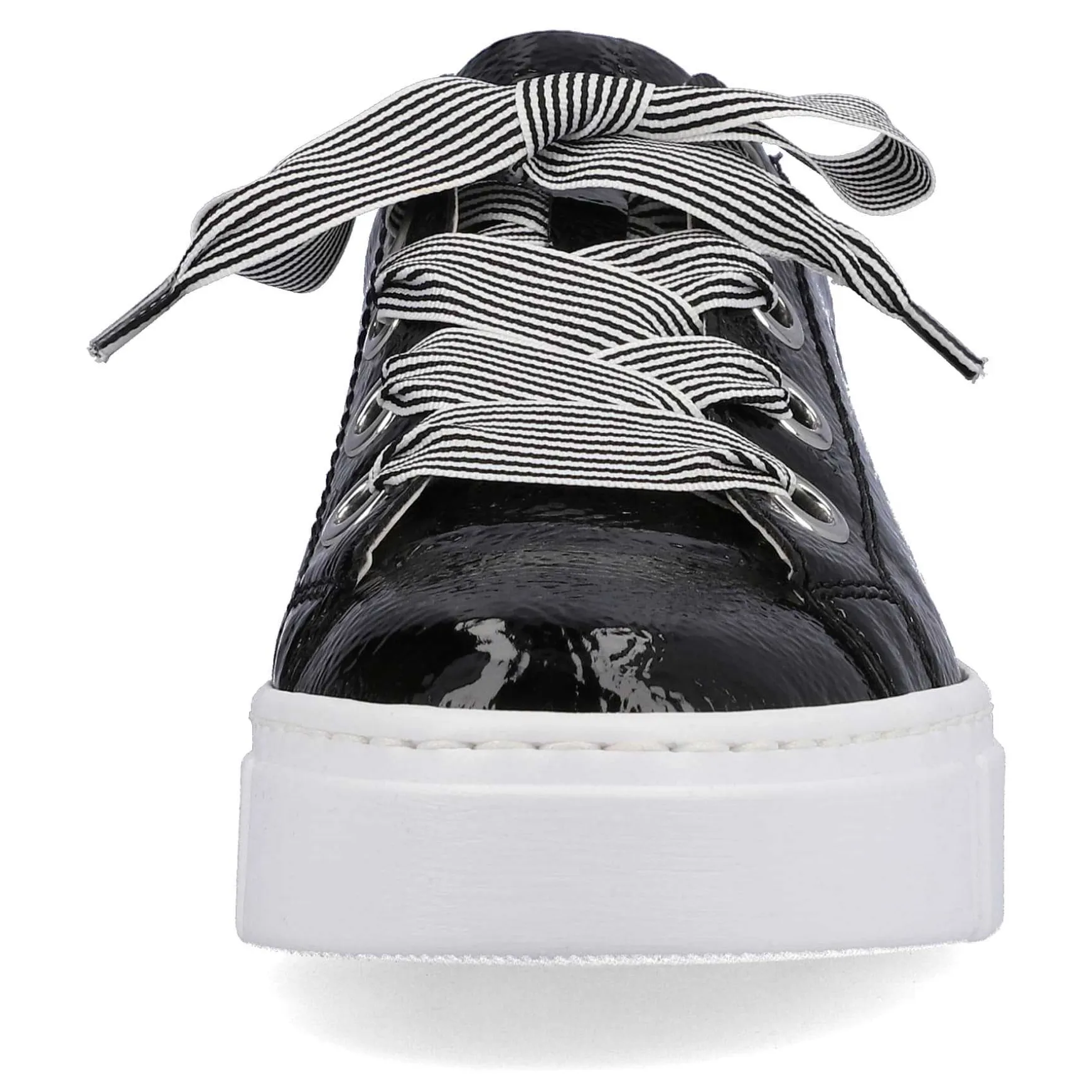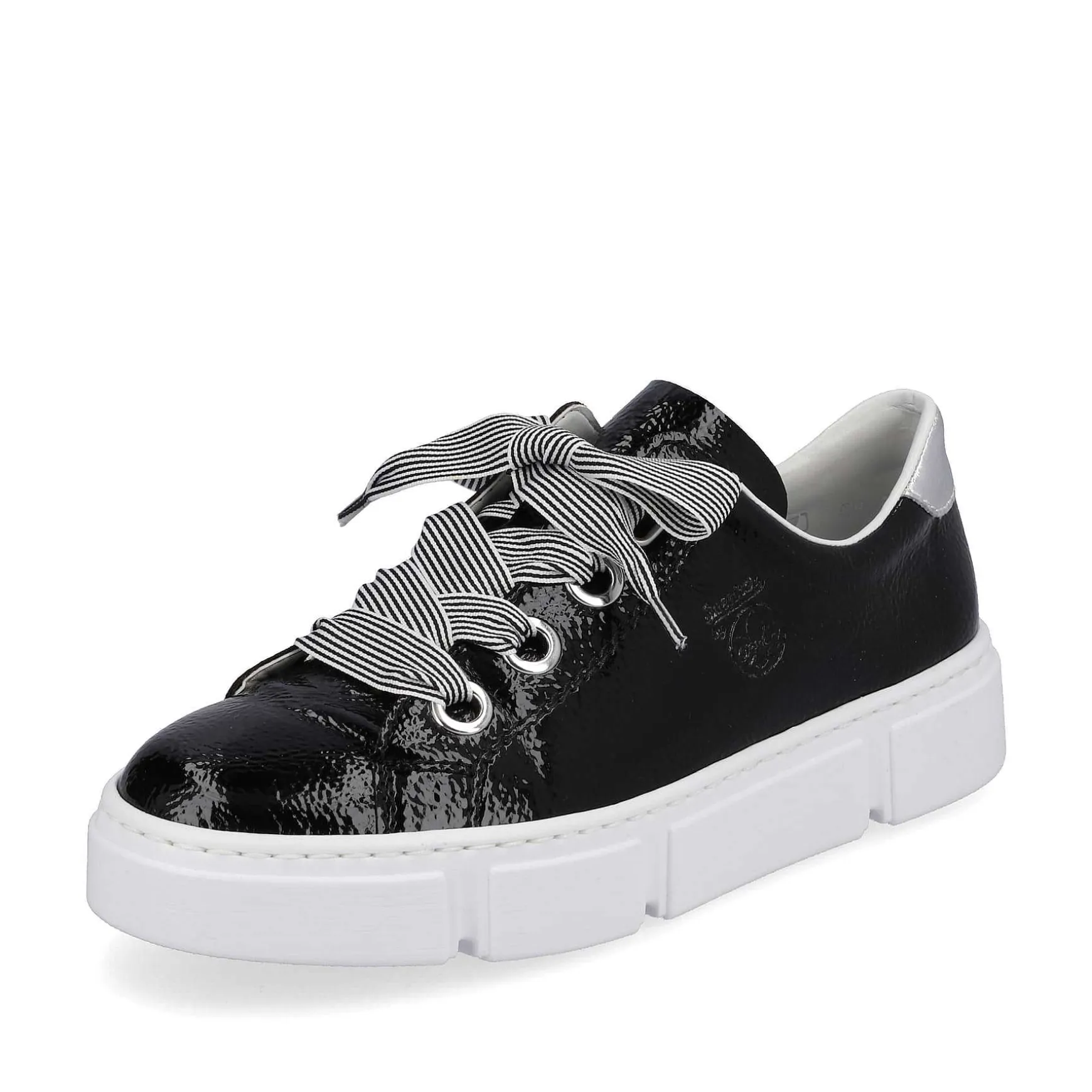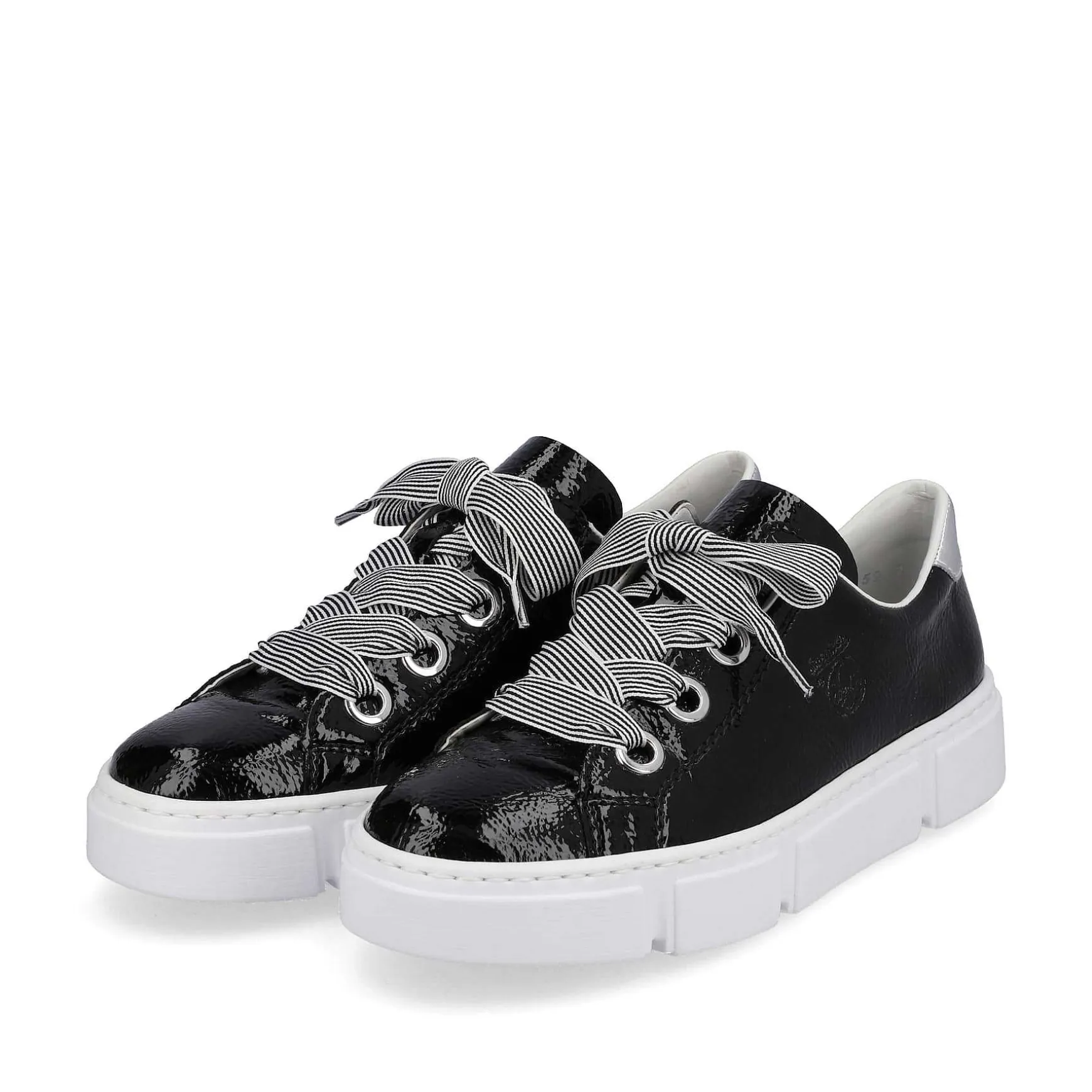 Attention Trend Alert! These Glossy Black Rieker Low Sneakers For Women Bring Everything Together: Comfort, Function And Of Course Design. Thanks To The Wide Lacing, The Shoe Is Also Ideally Adaptable. The Shock-Absorbing And Very Light Sole Ensures A Comfortable Walking Experience Even When Worn For Long Periods Of Time And The Insole Is Extra Soft. All In One – Great!