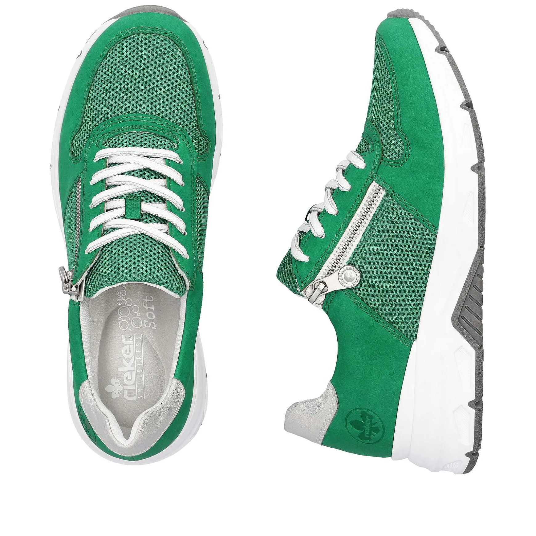 On The Fashion Radar! These Grass Green Rieker Sneakers Low For Women Have Been Elaborately Crafted. The Clever Combination Of Zipper And Lacing Makes It Easy To Put On And Take Off. With The Non-Slip Sole, Sure-Footed Walking Is A Given. The Sneakers Have A Padded And Removable Insole That Is Like A Vacation For Your Feet! The Comfort Width G Offers Enough Space So That The Feet Feel Comfortable Even When Worn For Longer Periods. Attention, Favorite Shoe Potential!