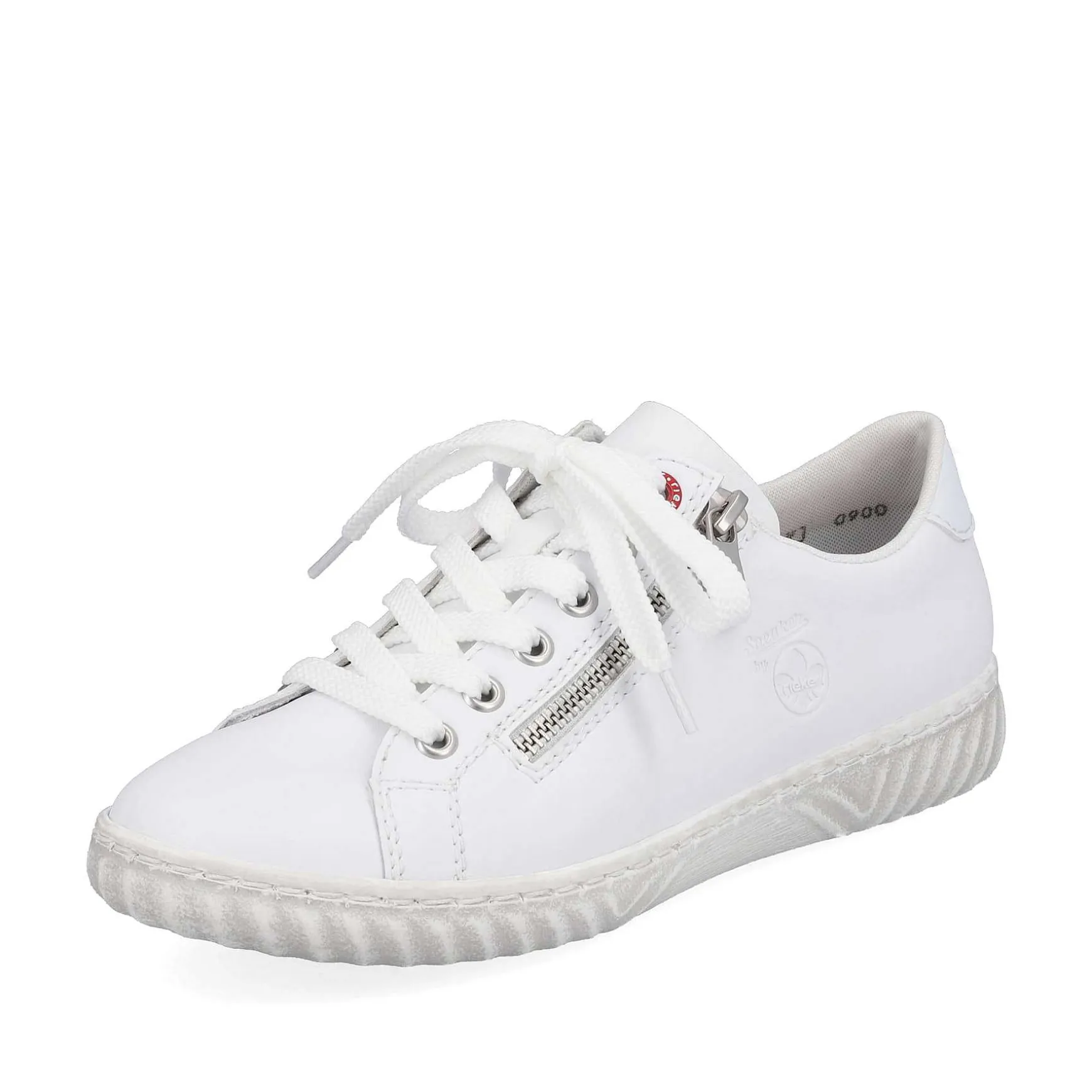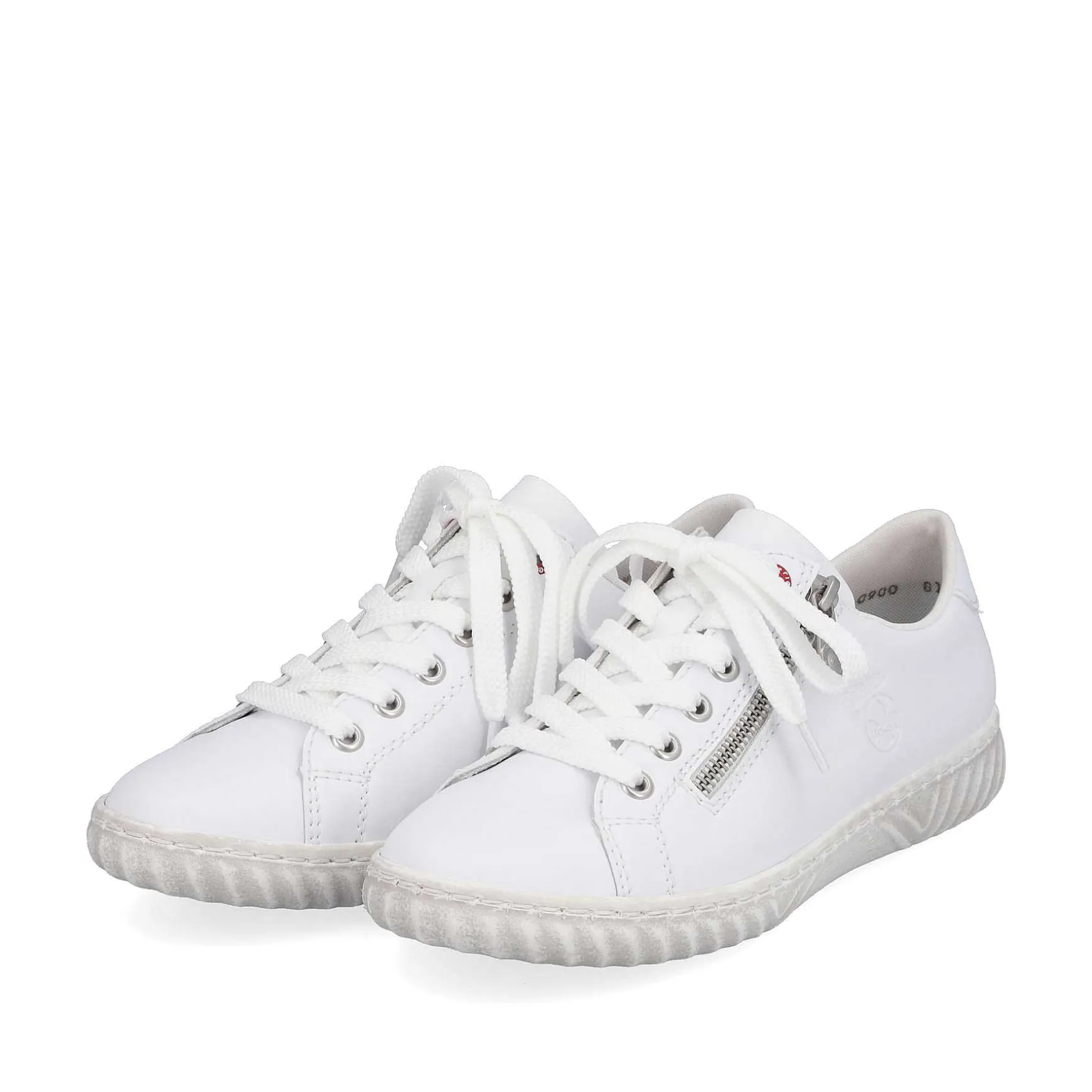 Forever The One: These Pure White Rieker Low Sneakers For Women Made Of Smooth Leather Have Been Elaborately Crafted. In Addition To The Zipper, The Model Also Has Lacing And Ensures A Good Hold. The Grippy Sole Provides Support On Different Paths. On Top Of That, The Extra Soft Insole Ensures An Extra Dose Of Comfort. Fashionable Well-Being In The Style Of Rieker!